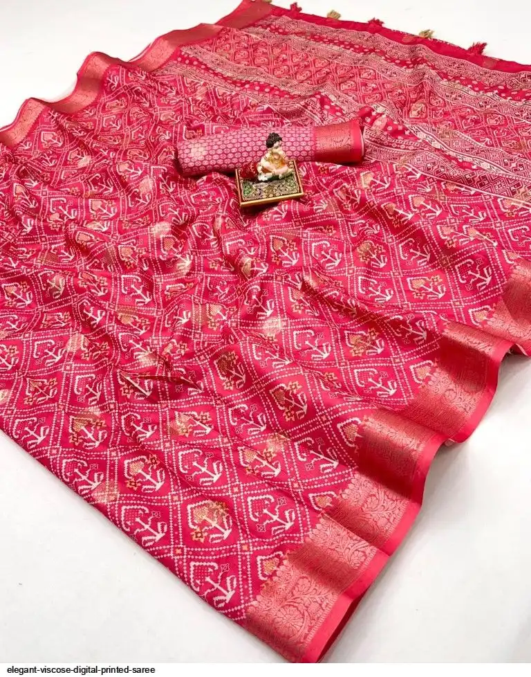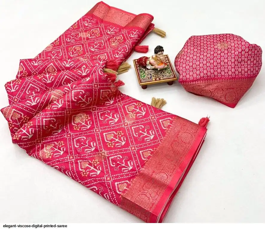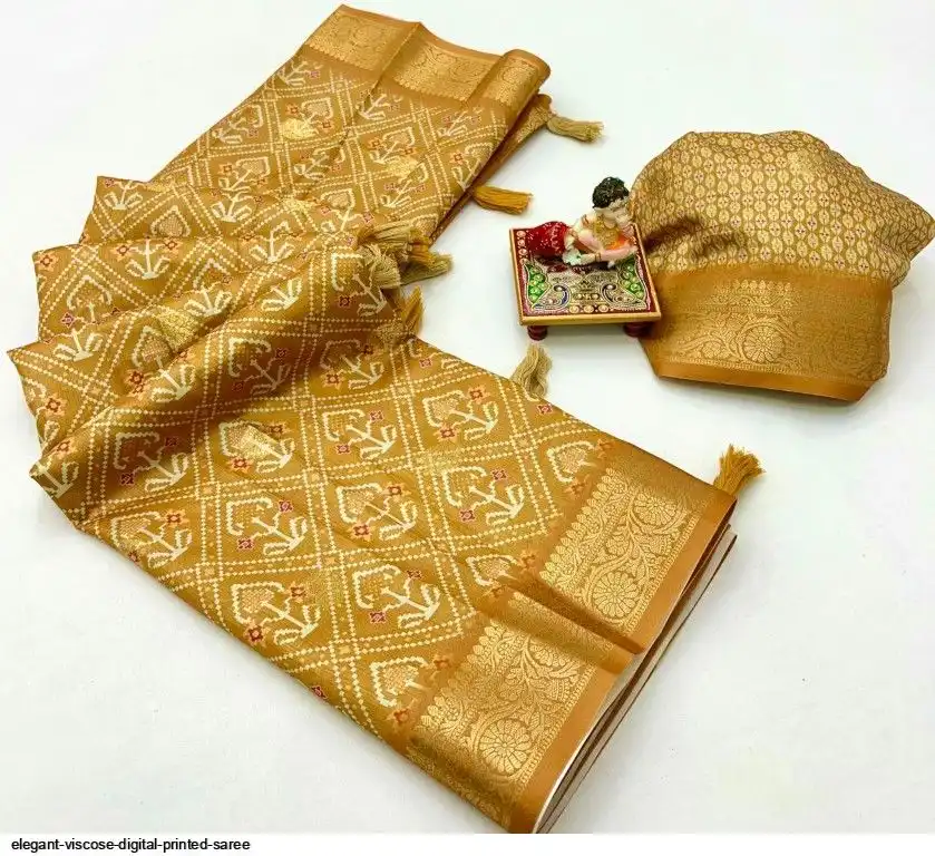 Pure Tussar Dola Digital Printed Sarees With Jacquard Weaving & Printed Blouse Fabric