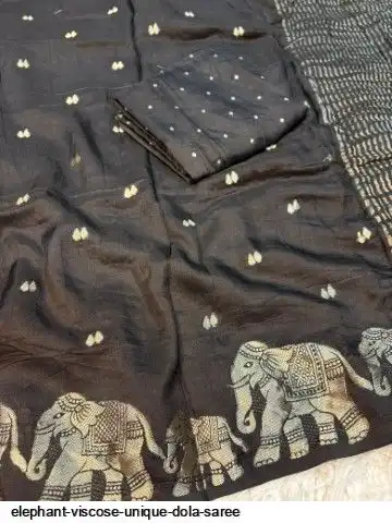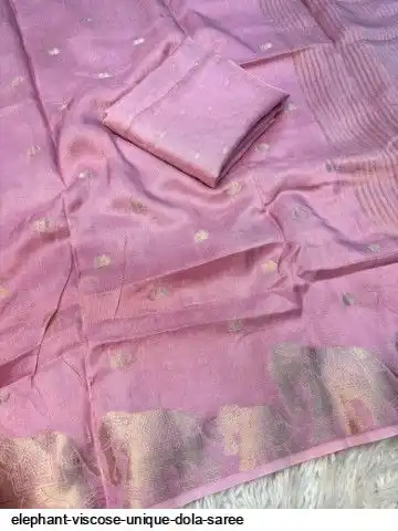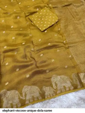 Pure Russian dola fabric with beautiful elephant figure in saree border with running Zari chitt pallu pair with viscose jacquard blouse