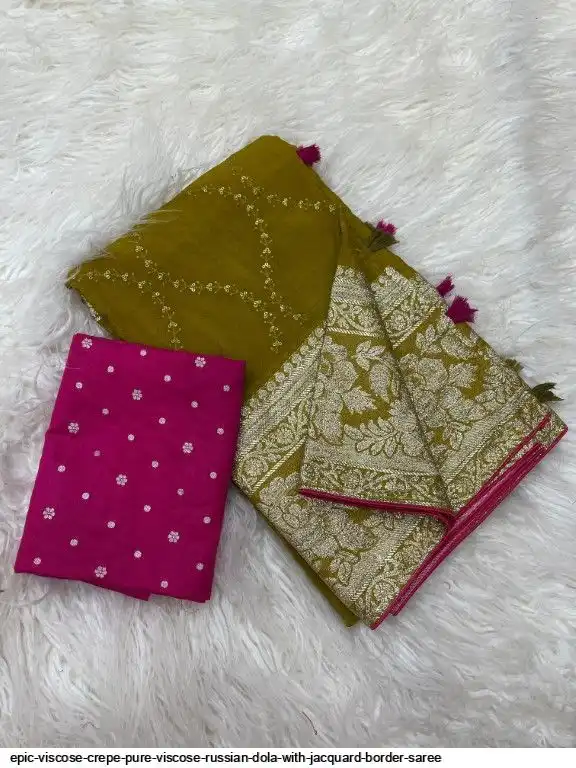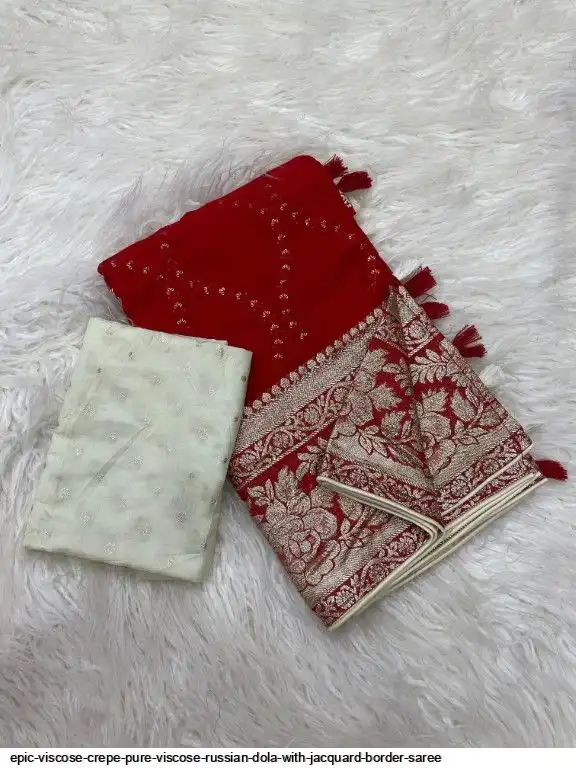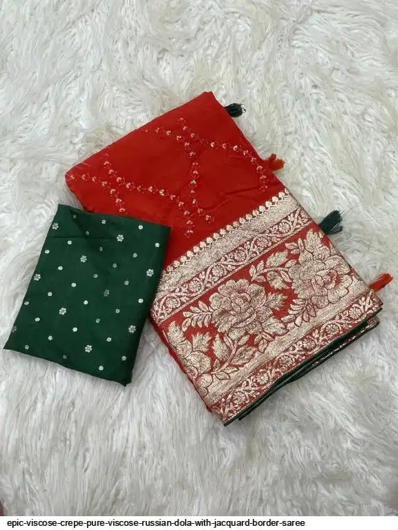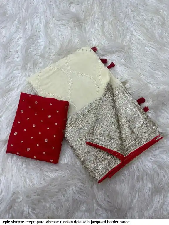 Pure Viscose Russian dola with Jacquard border sequence Viscose thread embroidery work with contrast jacquard Blouse