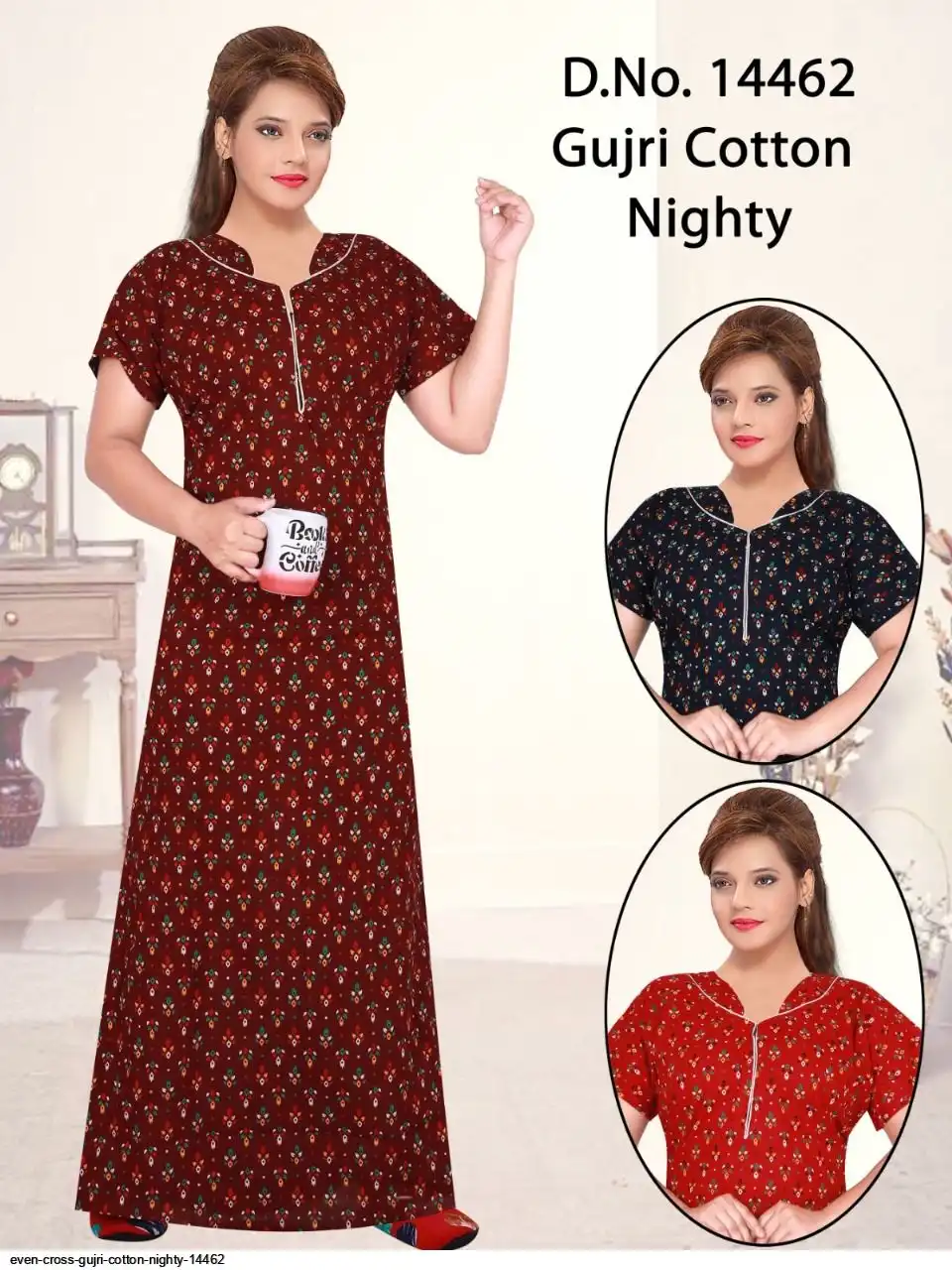 EVEN CROSS GUJRI COTTON NIGHTY 14462