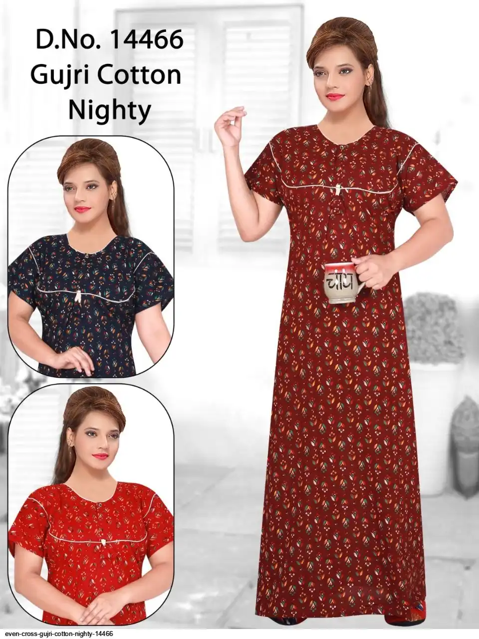 EVEN CROSS GUJRI COTTON NIGHTY 14466
