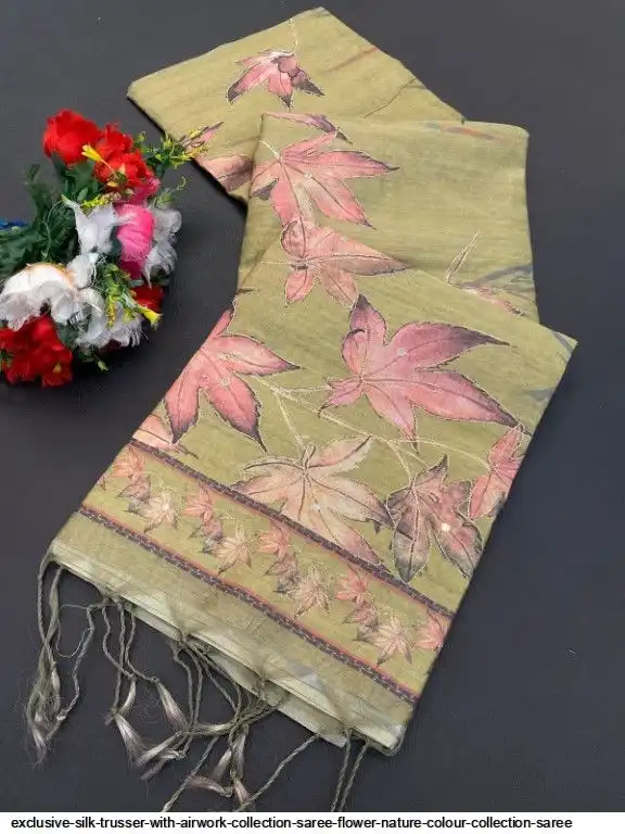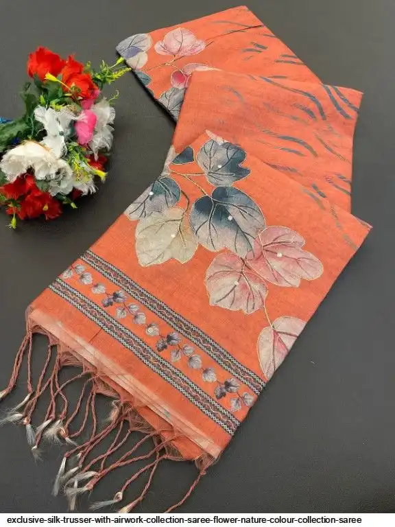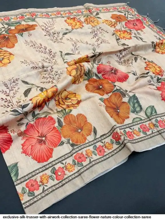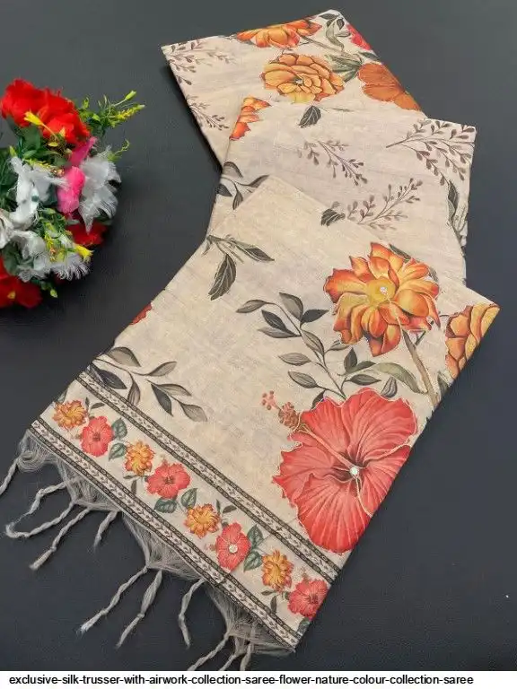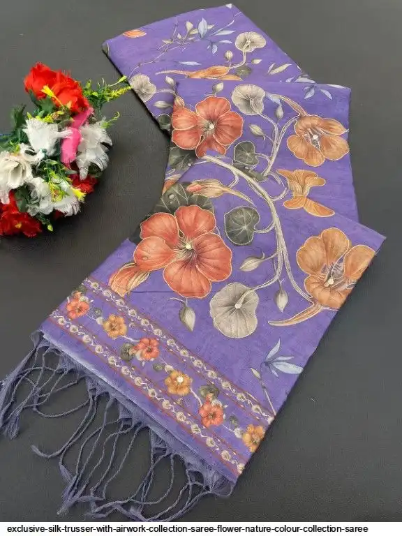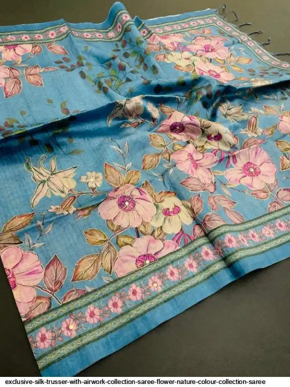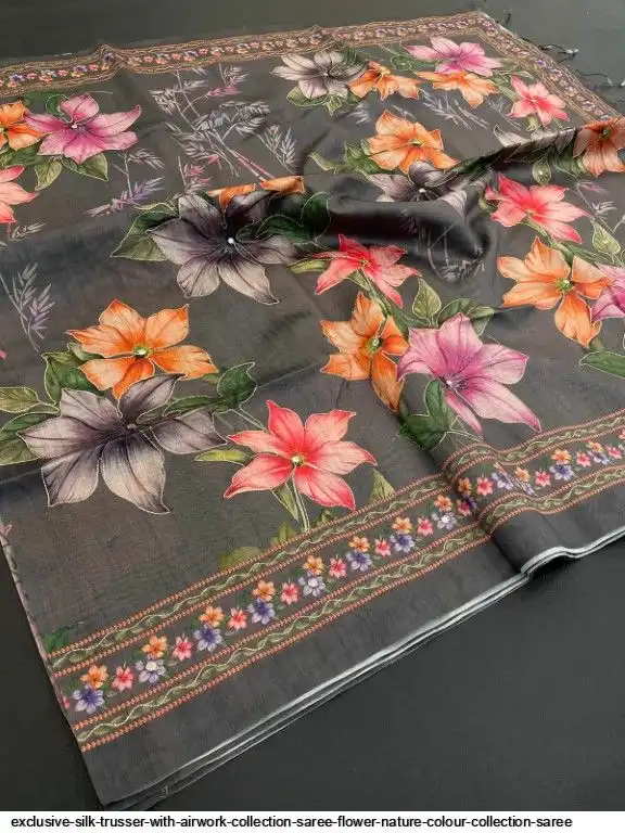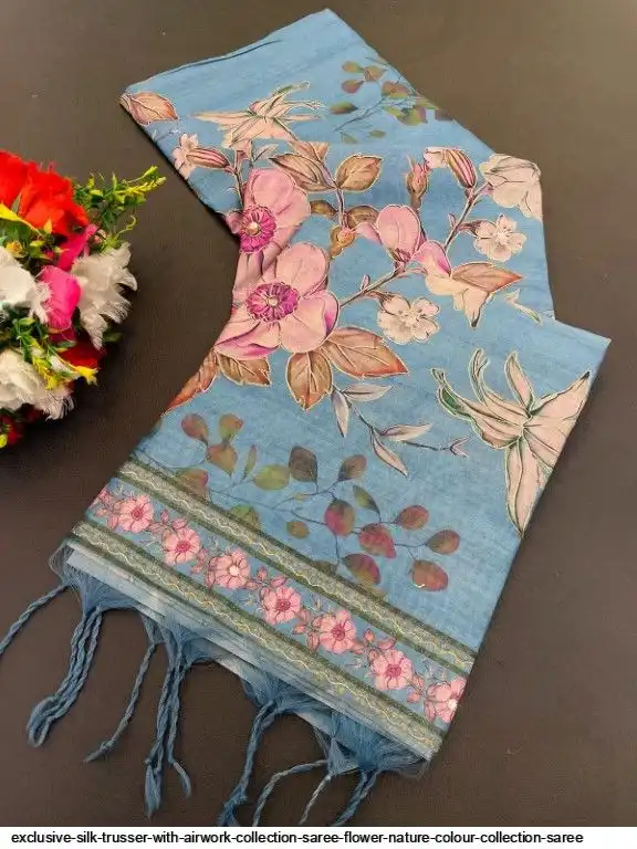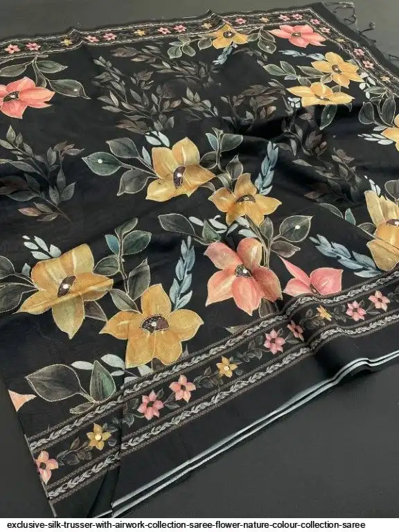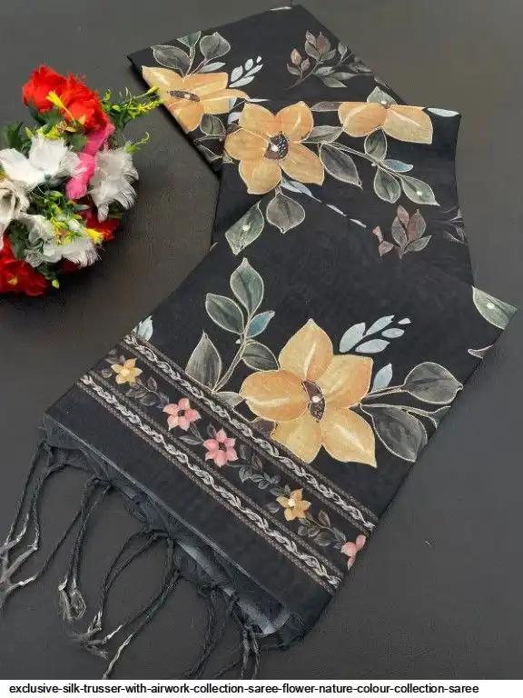 Exclusive Silk trusser with Airwork collection saree Flower nature colour collection saree