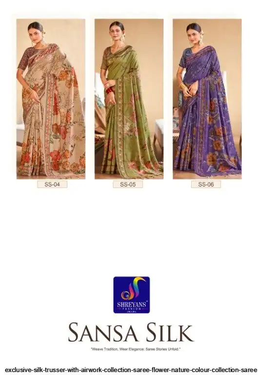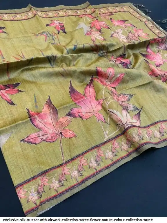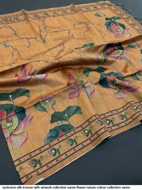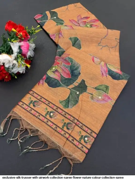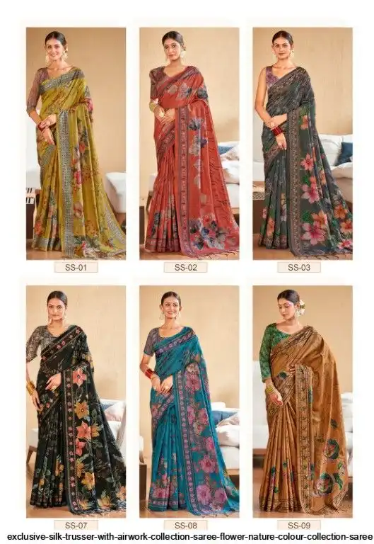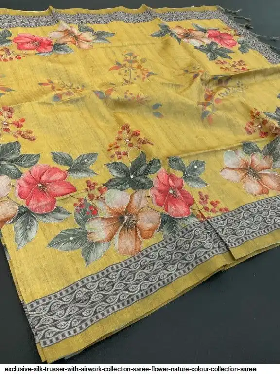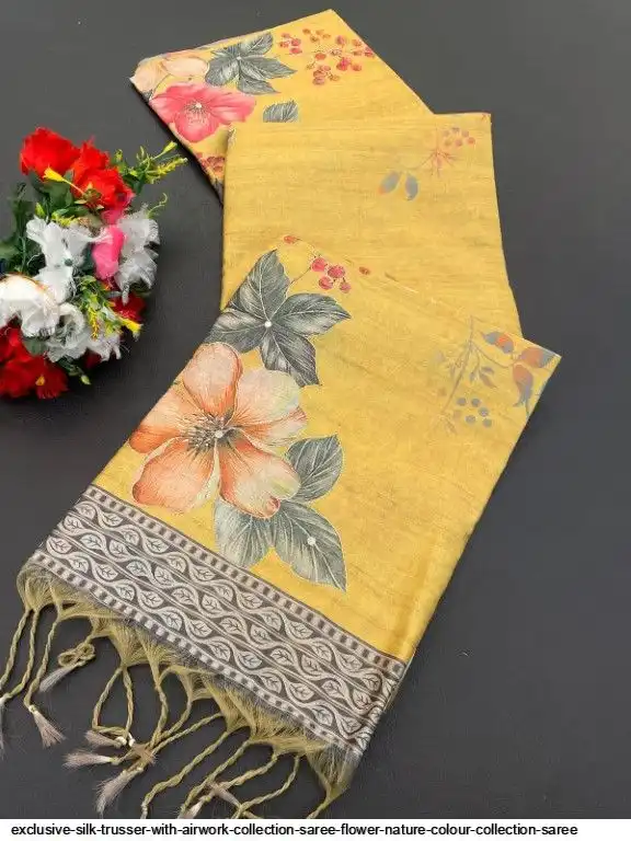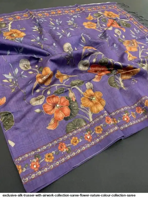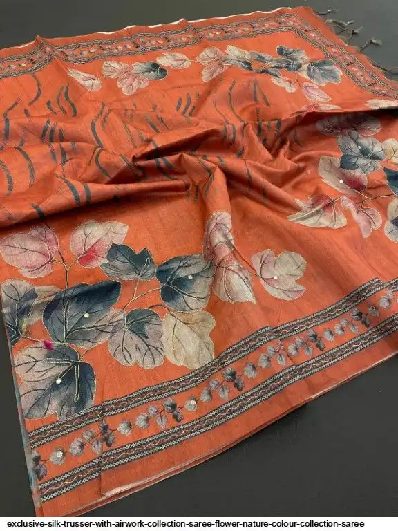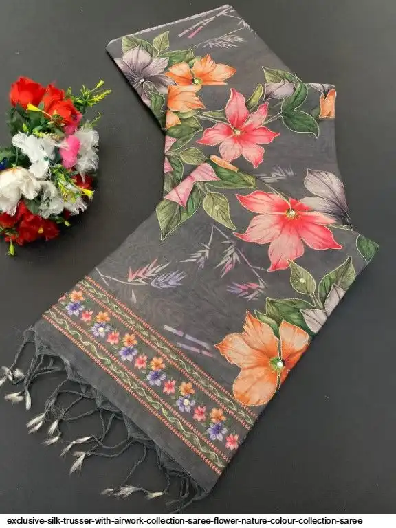 Exclusive Silk trusser with Airwork collection saree Flower nature colour collection saree
