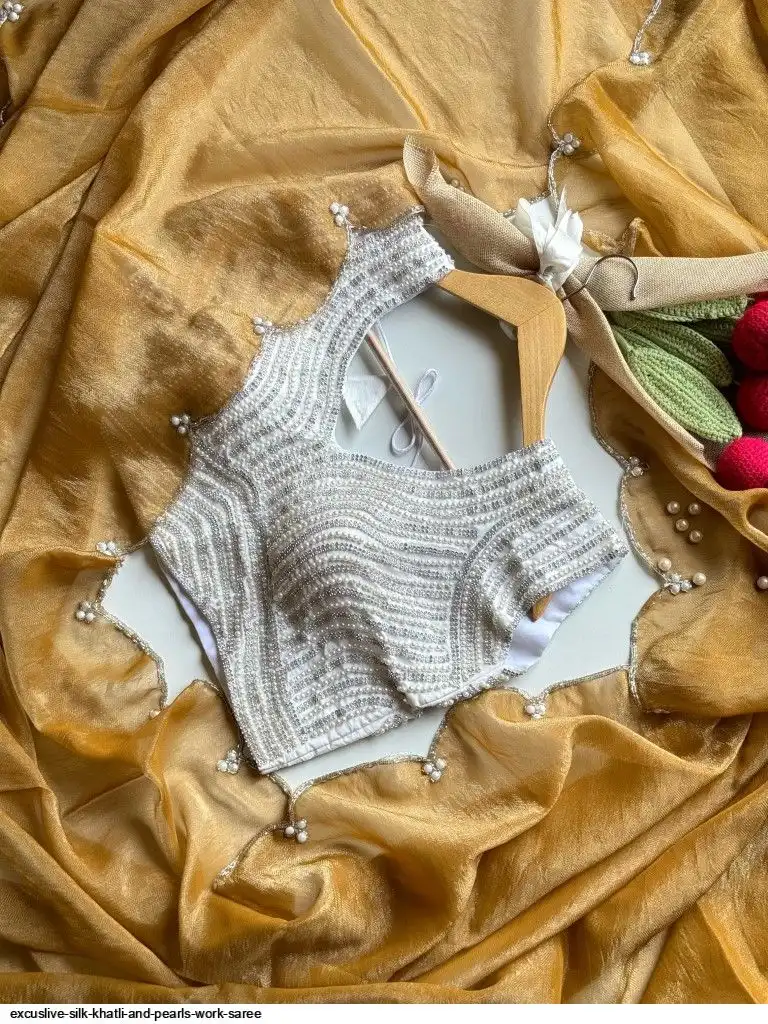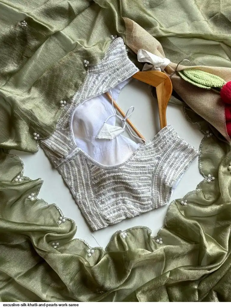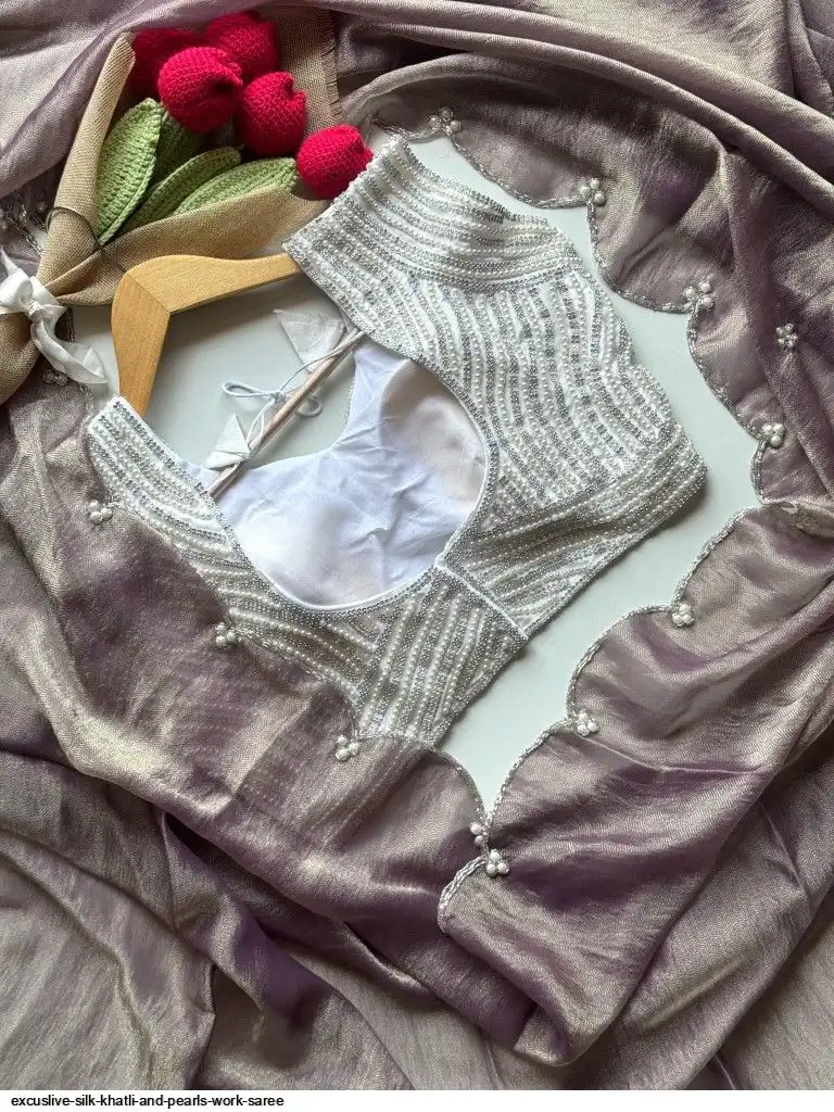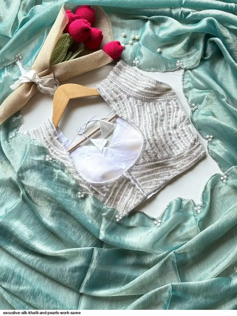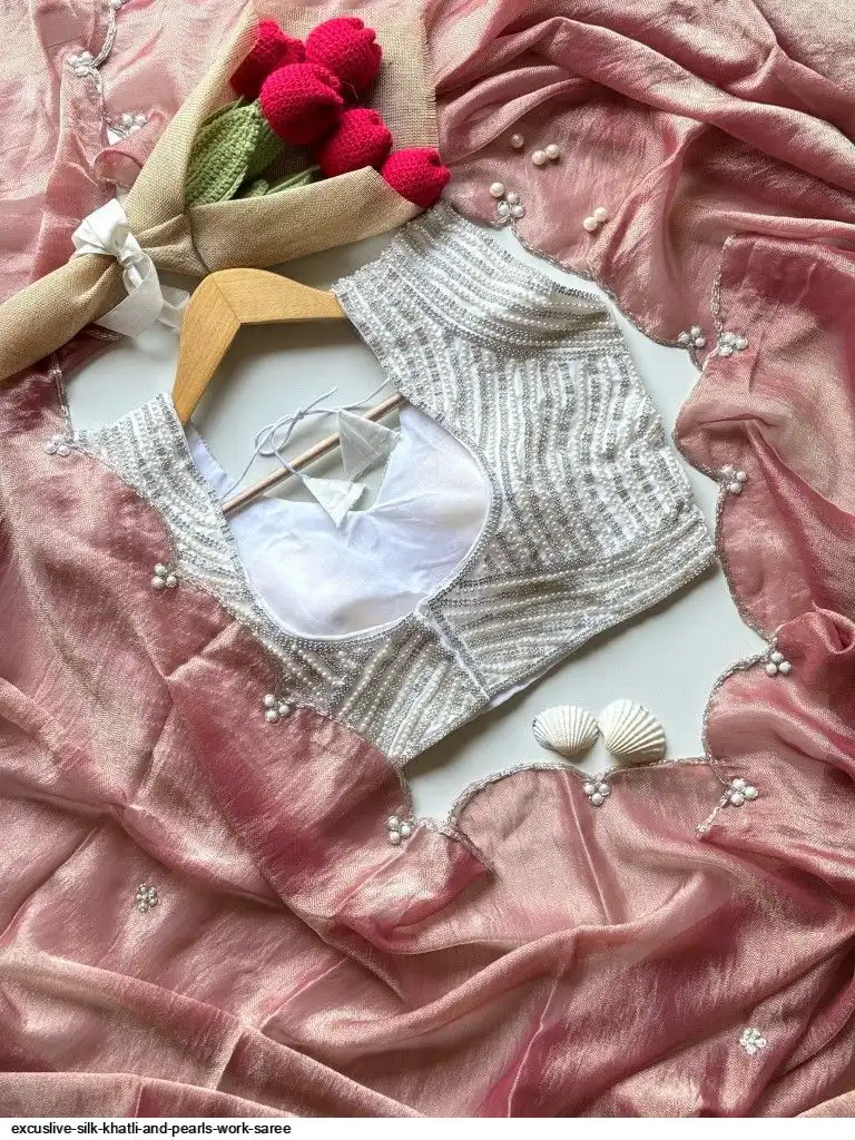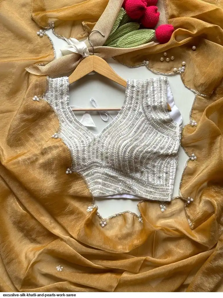*Every saree has journey of its own this ambossed Mario silk saree with fully handwork include pearl & Khatli work all over.