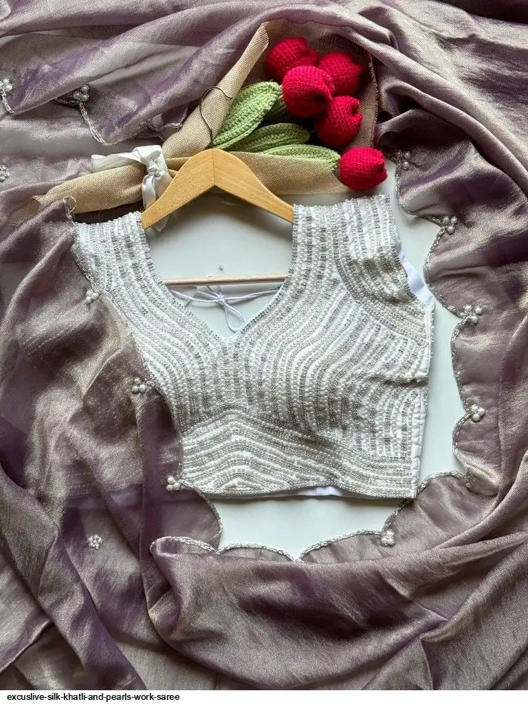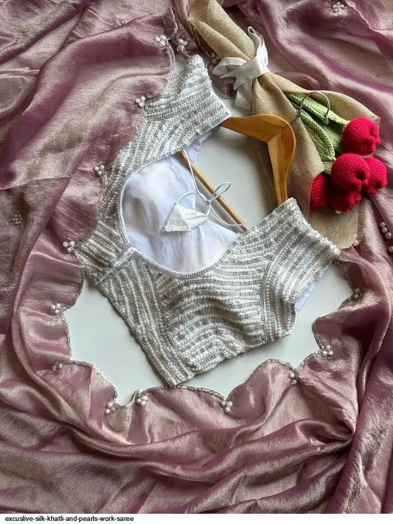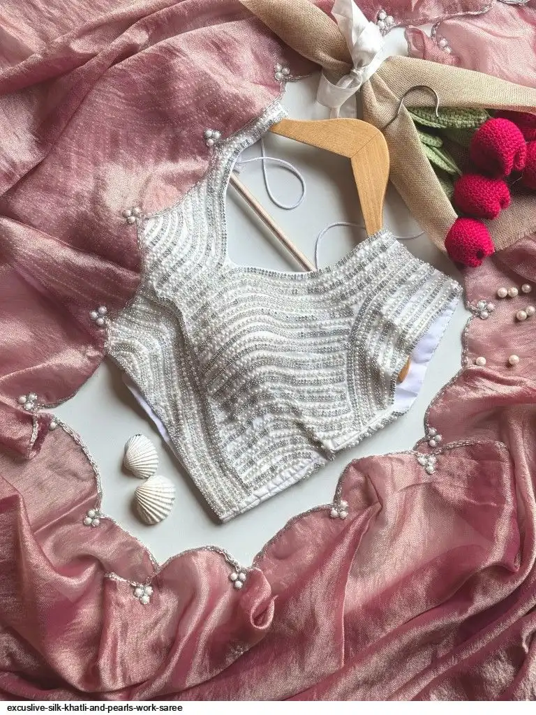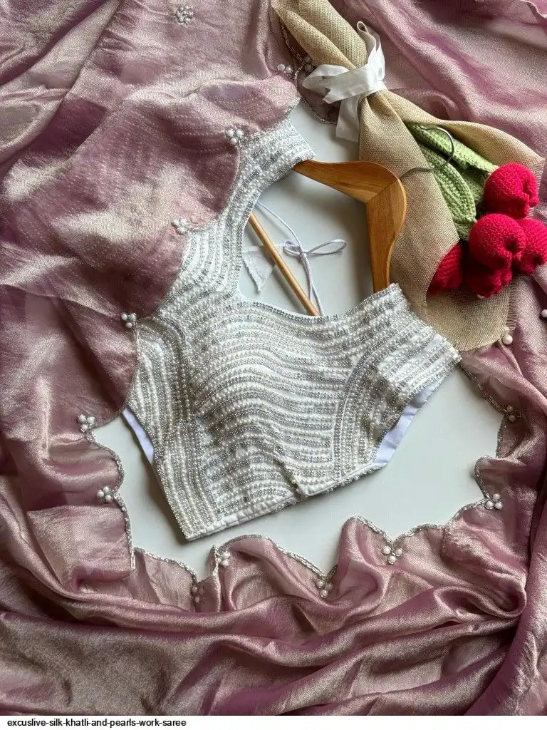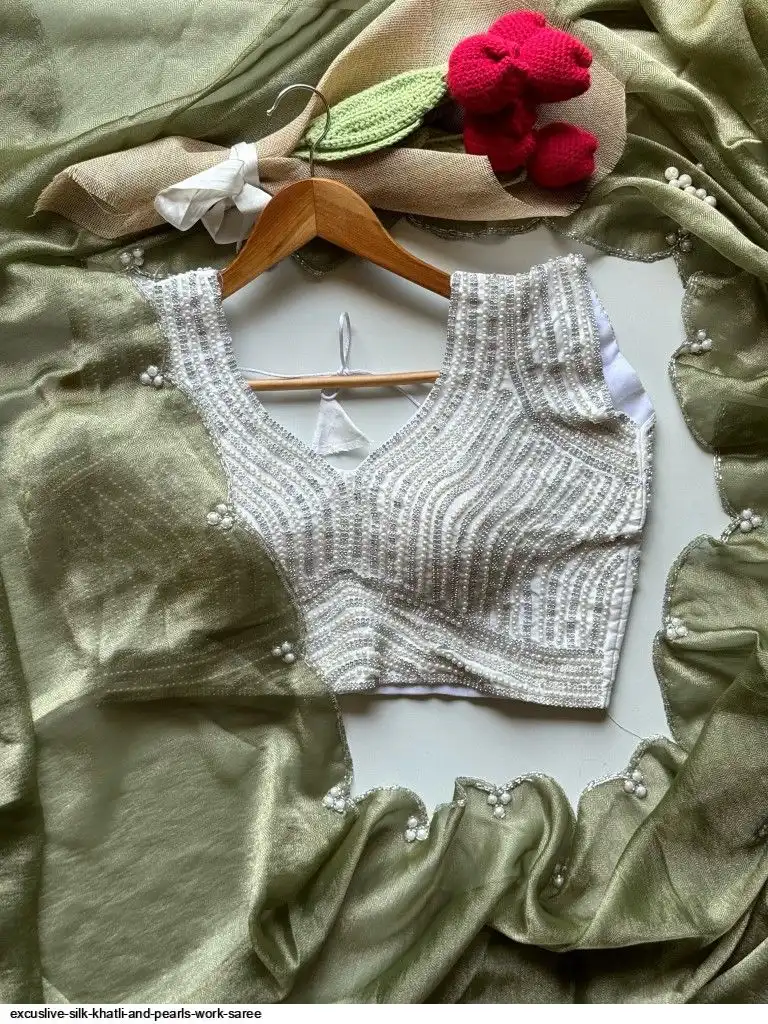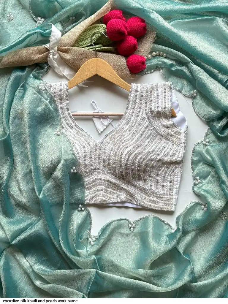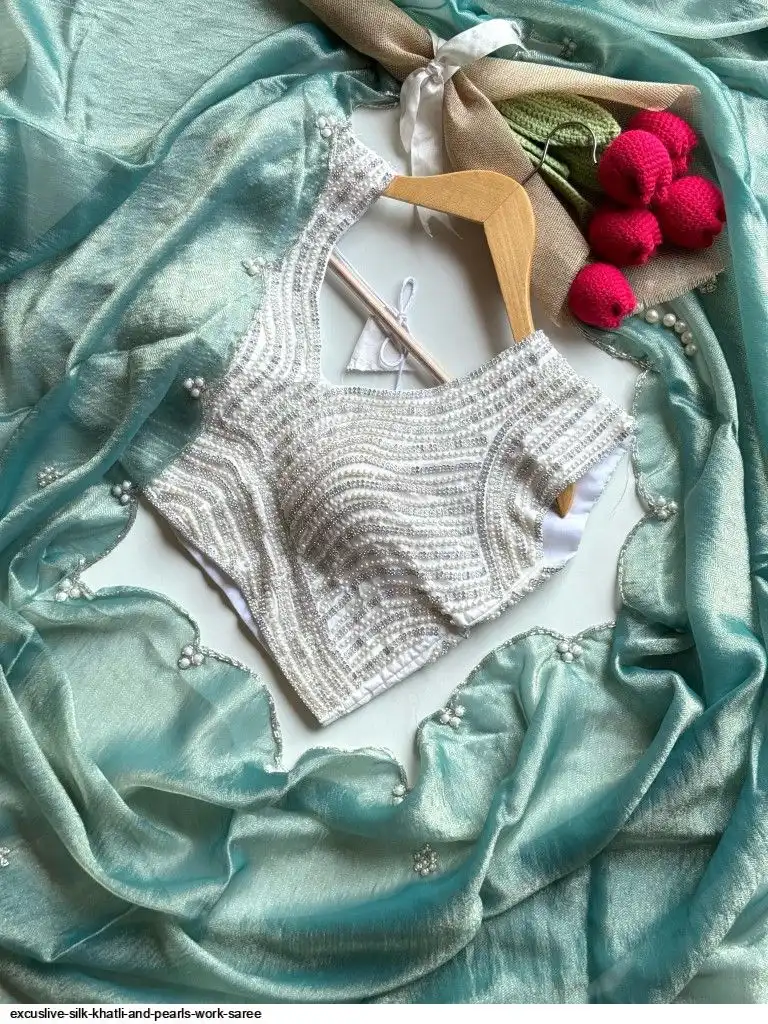 *Every saree has journey of its own this ambossed Mario silk saree with fully handwork include pearl & Khatli work all over.