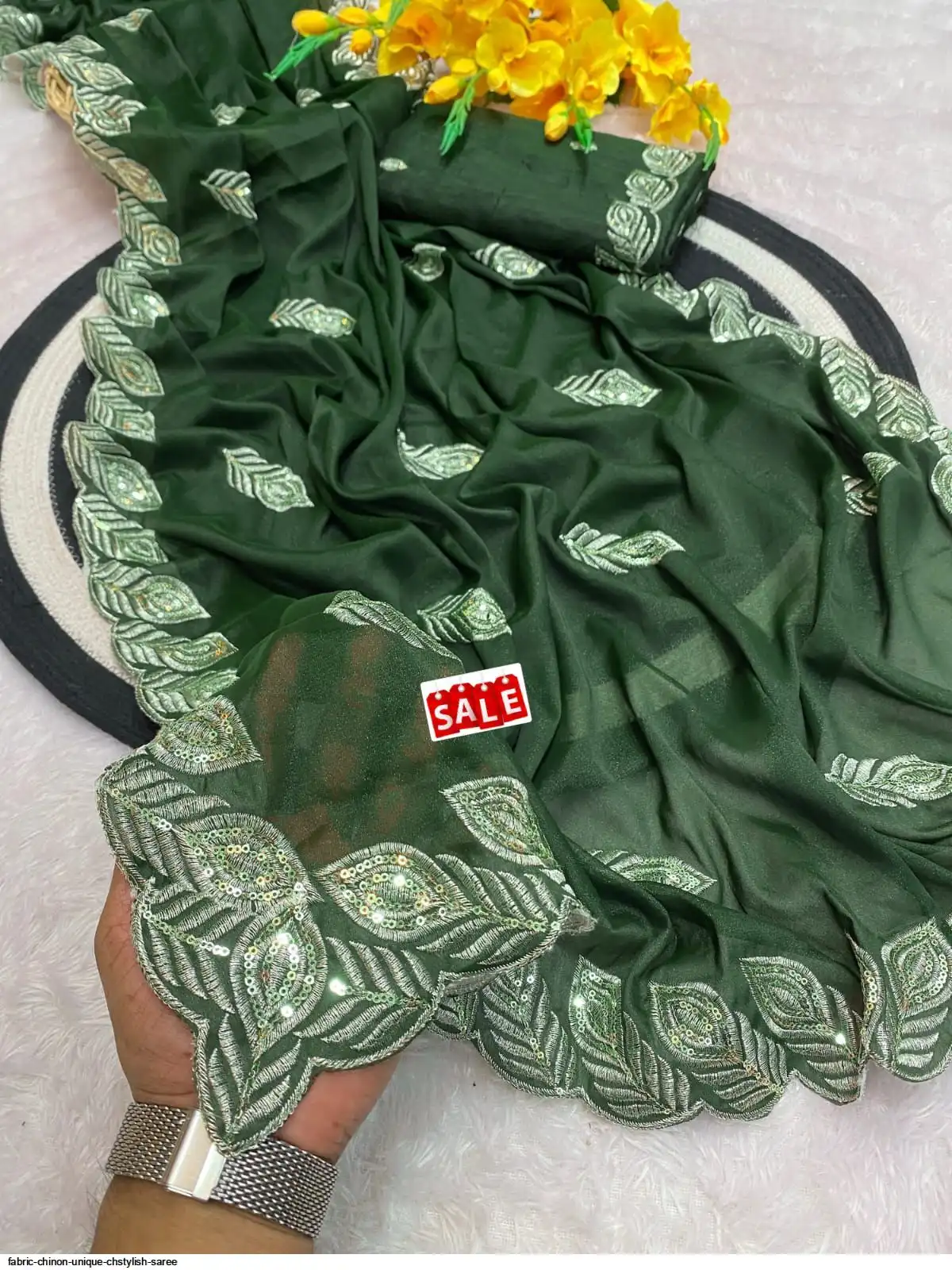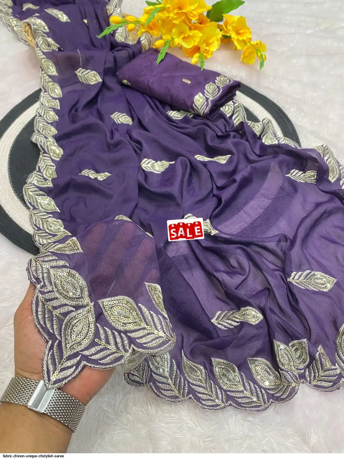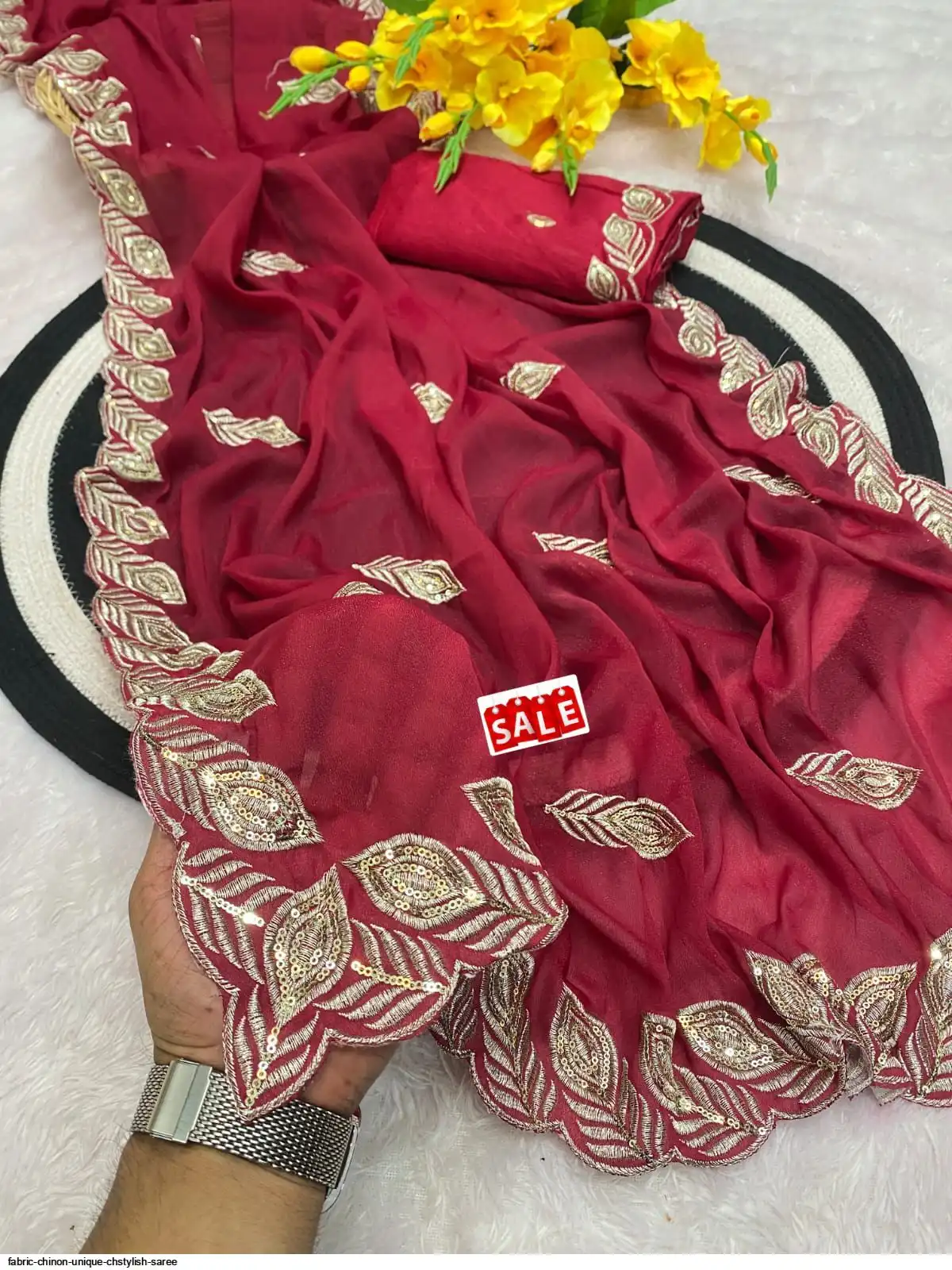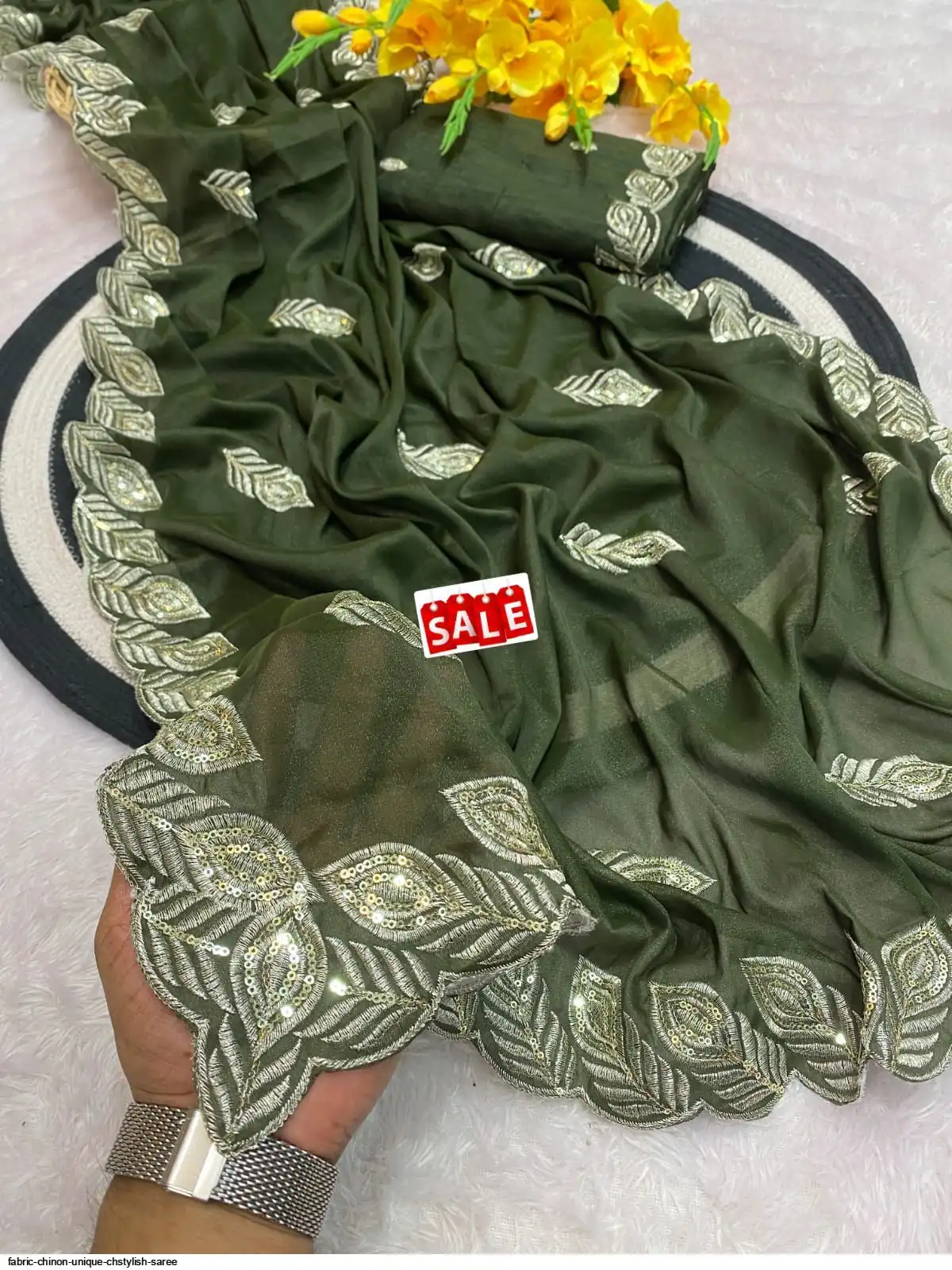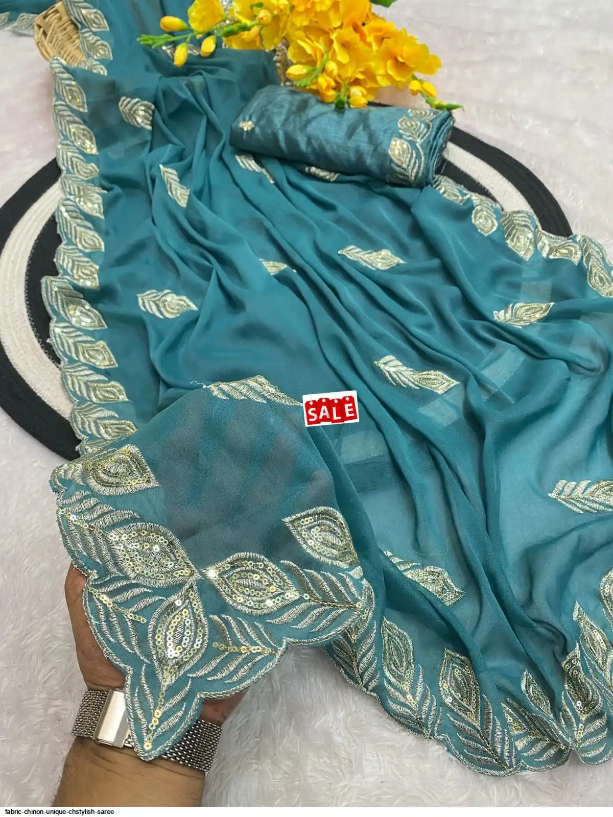 FABRIC CHINON UNIQUE CHSTYLISH SAREE