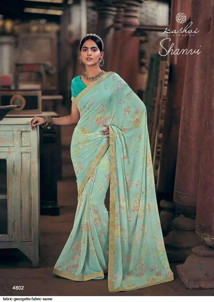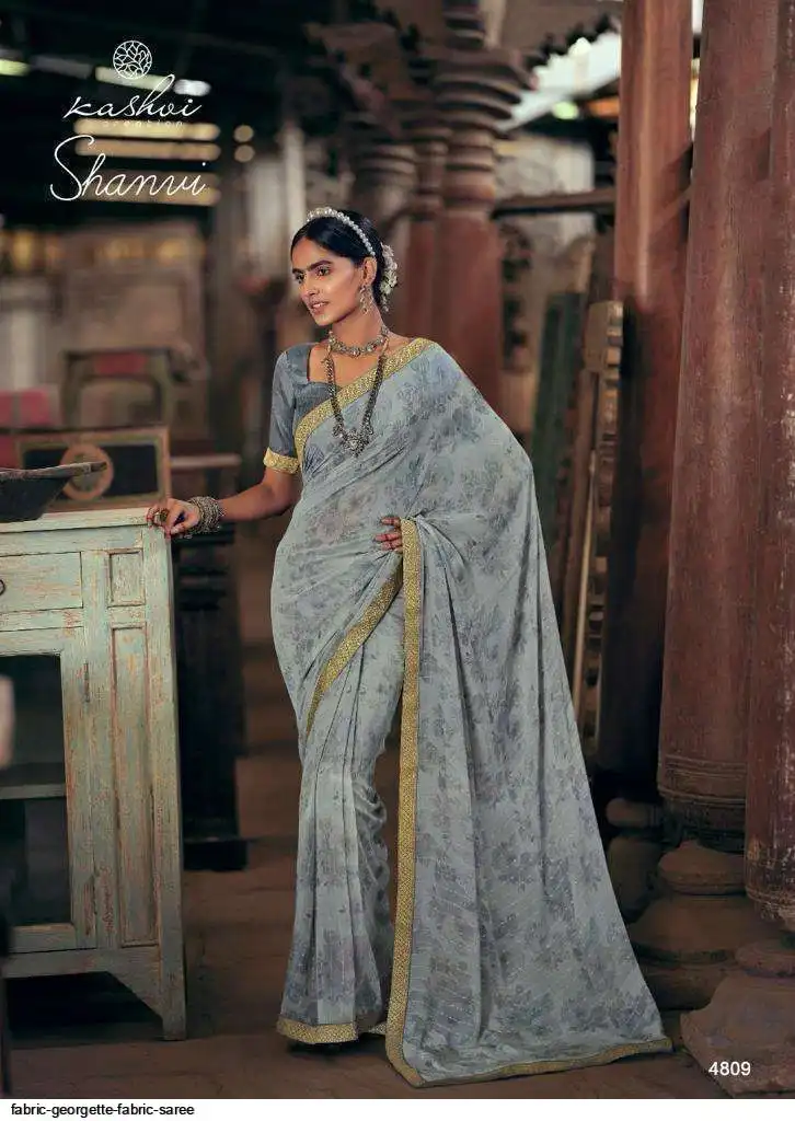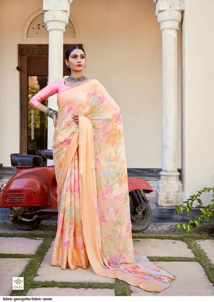 Fabric - Georgette Fabric With Fancy Additional Work And Runing Blouse