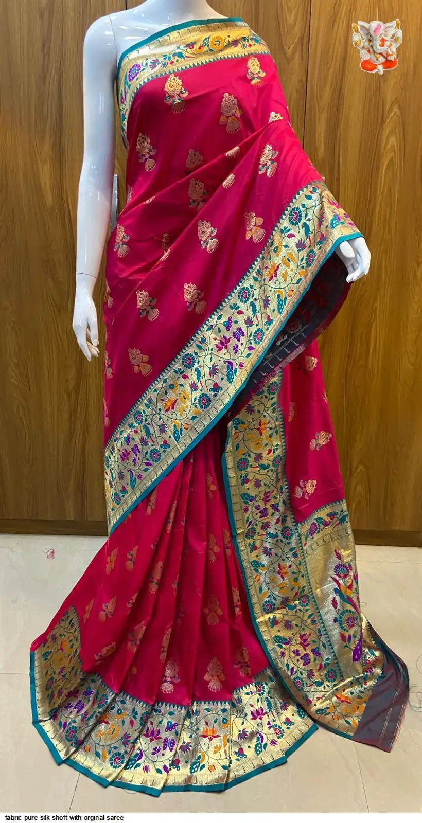 Fabric= pure silk shoft fabric with Orginal jari weaving work for multiple colours