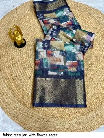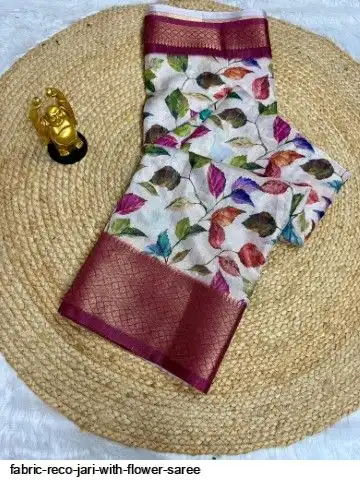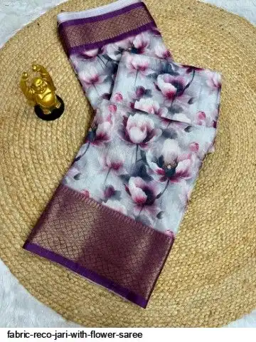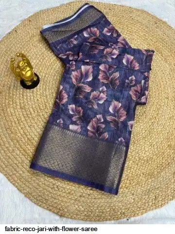New fabric Reco Jari with flower print in allover sare nd same fabric blouse negative flower print .80 cm lenght