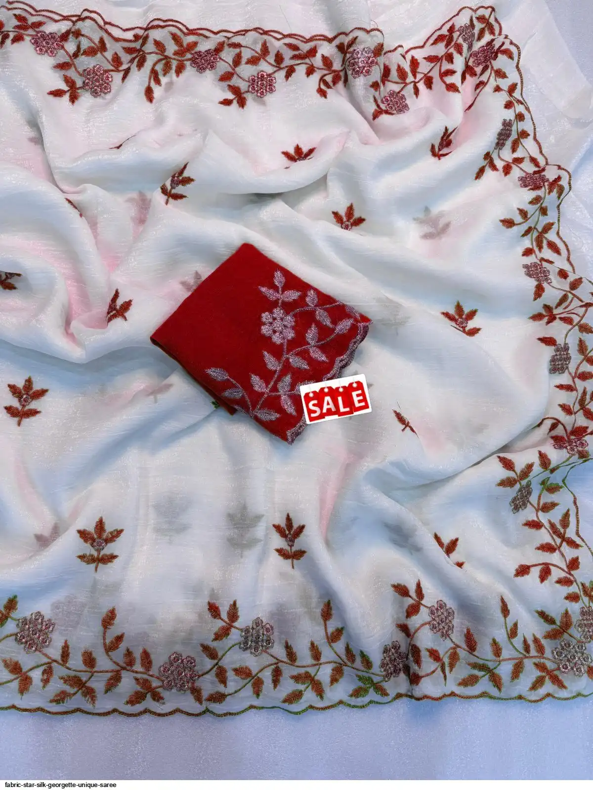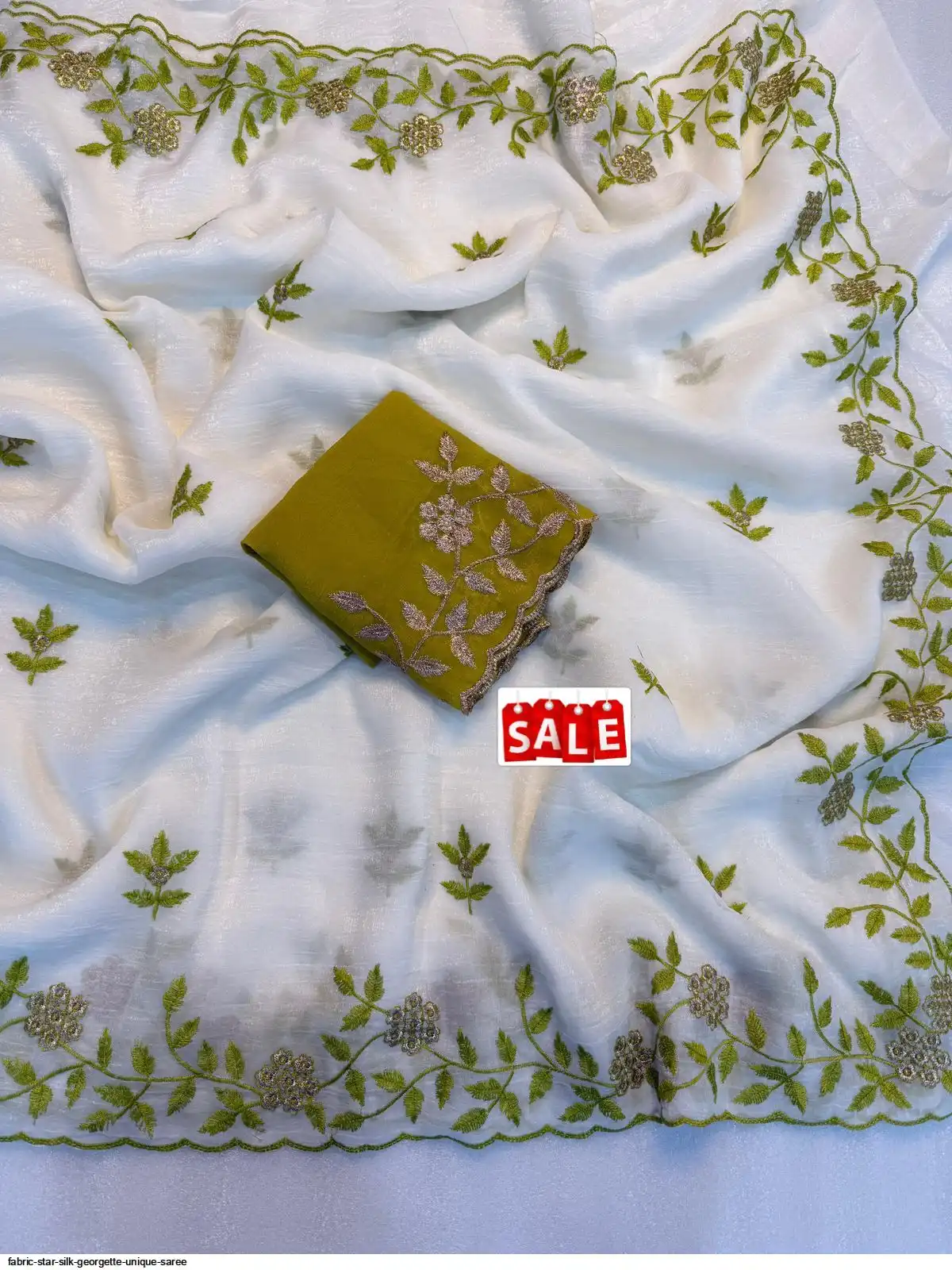 SAREE FABRIC CHINON SILK STAR GEORGETTE AND GEORGETTE BANDHANI PRINT ALL DESIGN HEAVY MULTI AND SEQUANCE C PALLU WORK DONE
