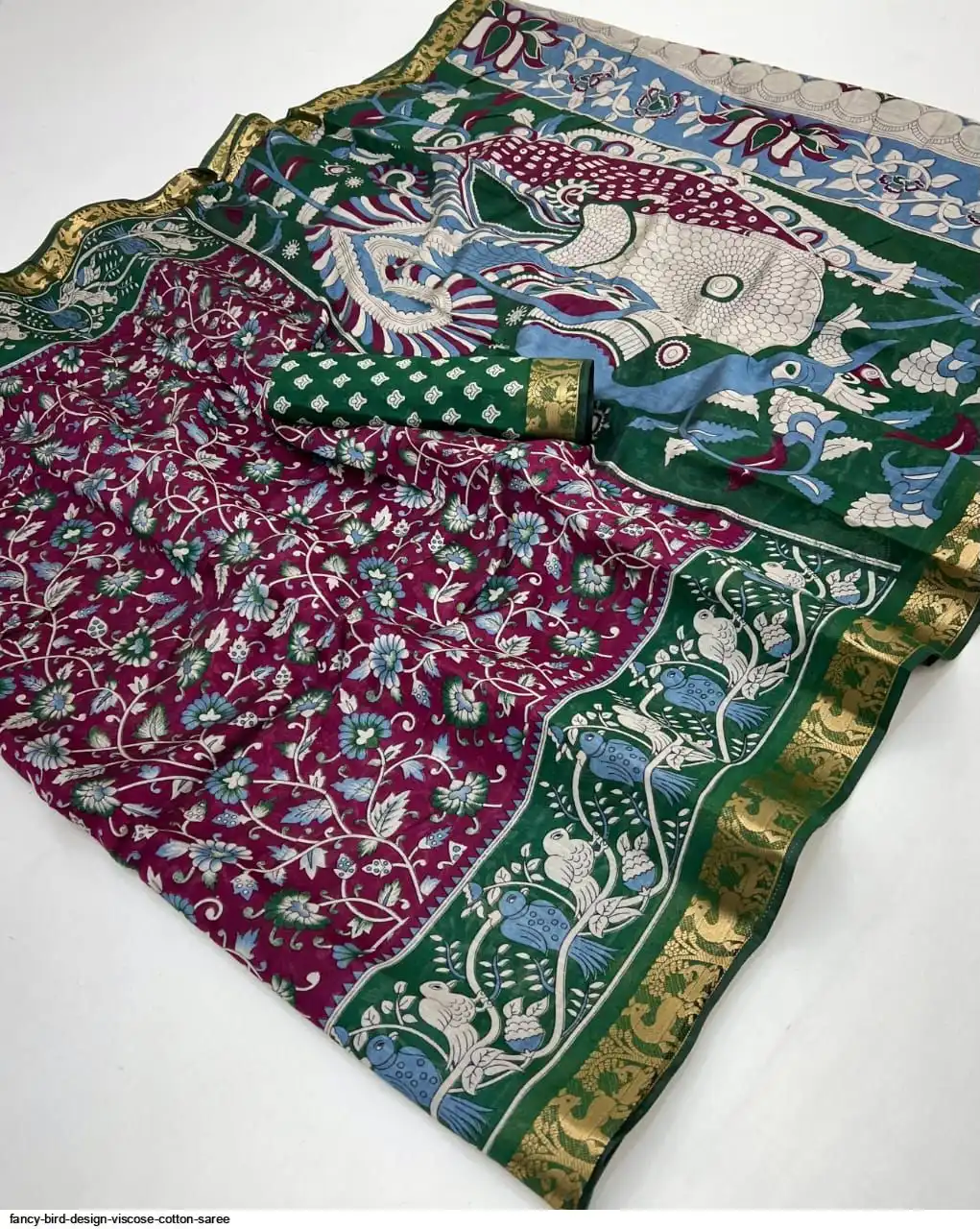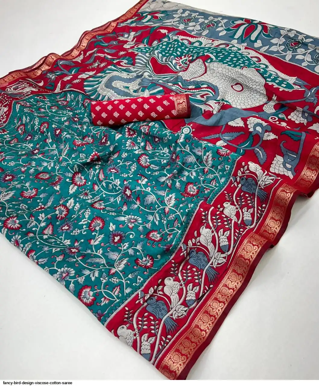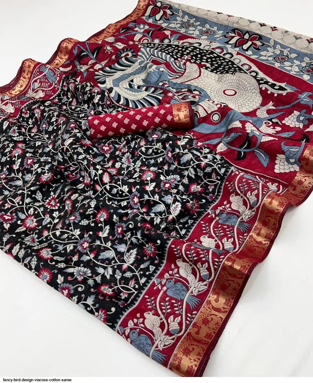 FANCY BIRD DESIGN VISCOSE COTTON SAREE