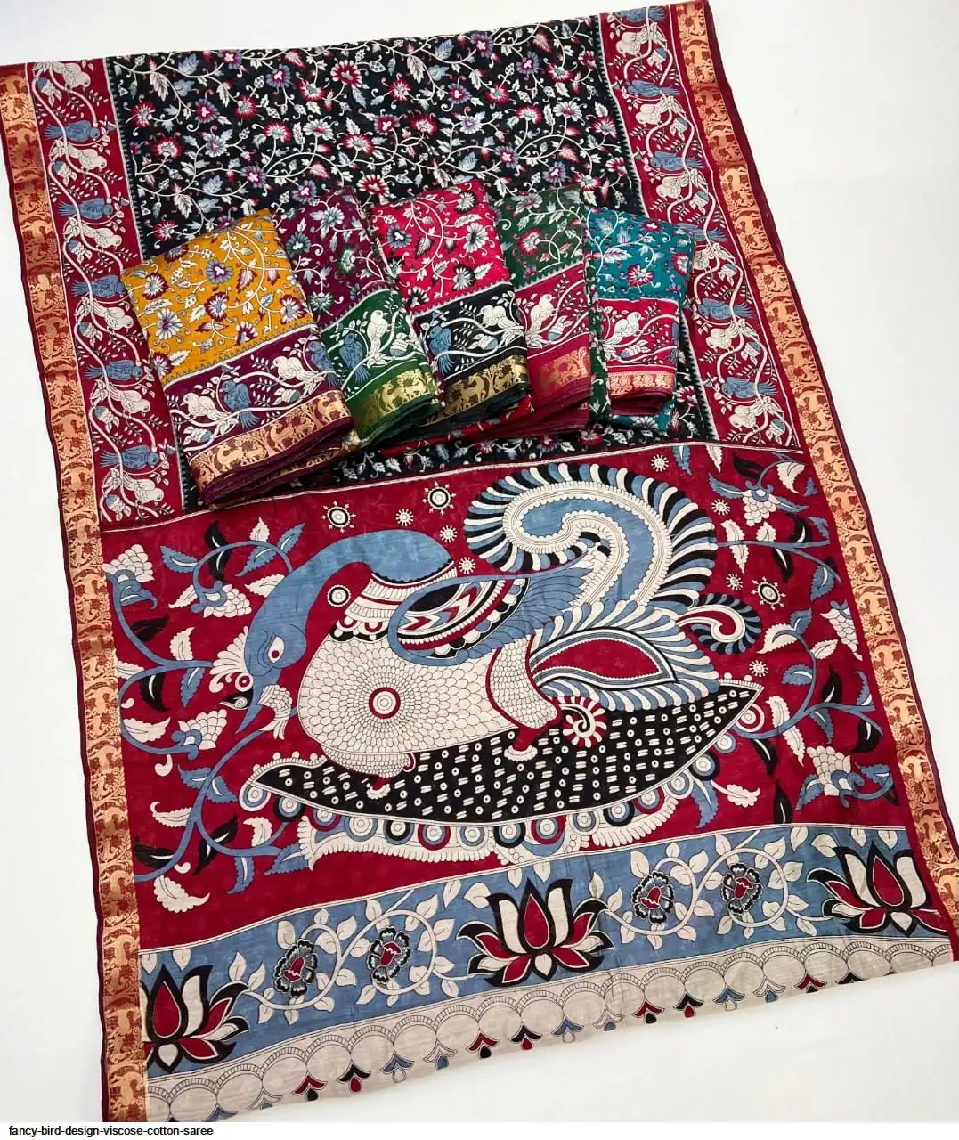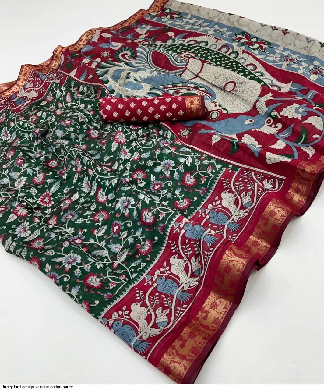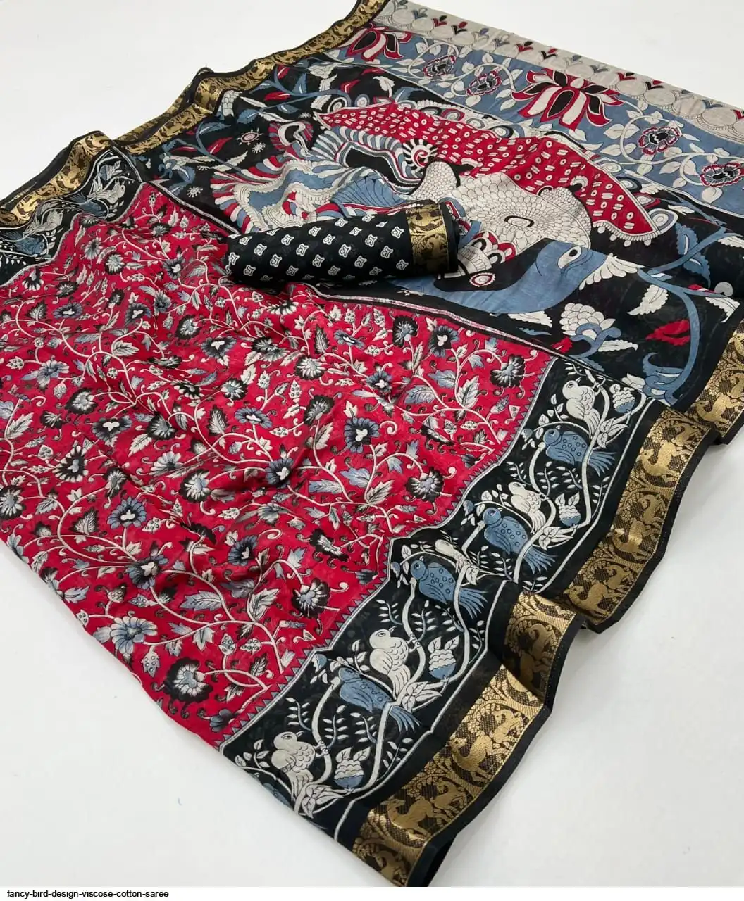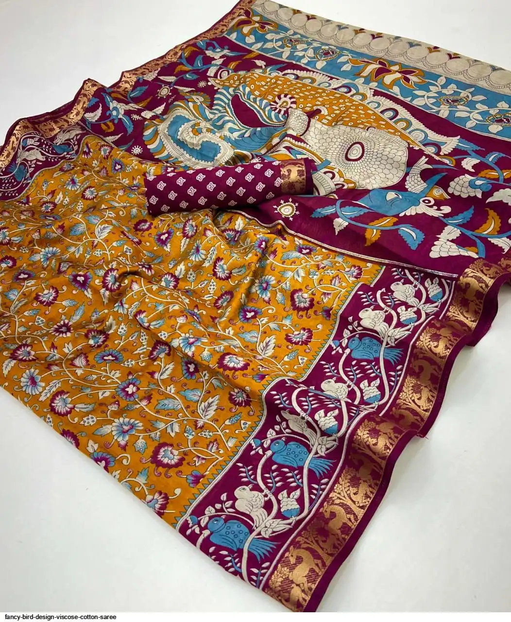 FANCY BIRD DESIGN VISCOSE COTTON SAREE