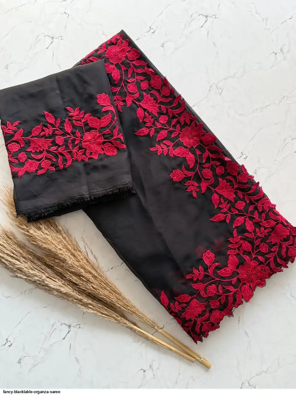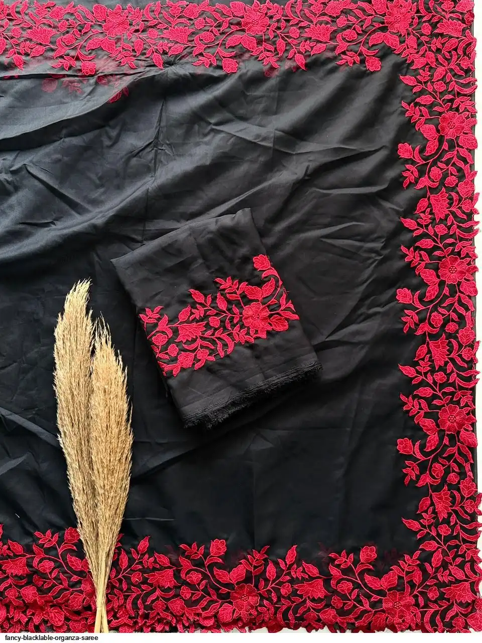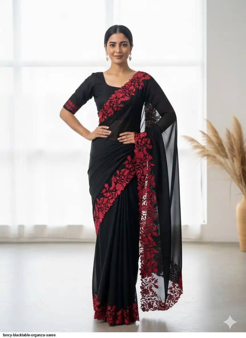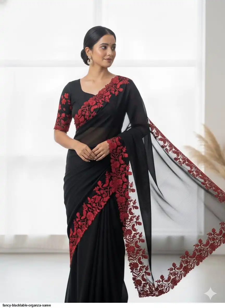 Blouse Running Tabby Organza with Contrast Thread Work (UNSTICHED)