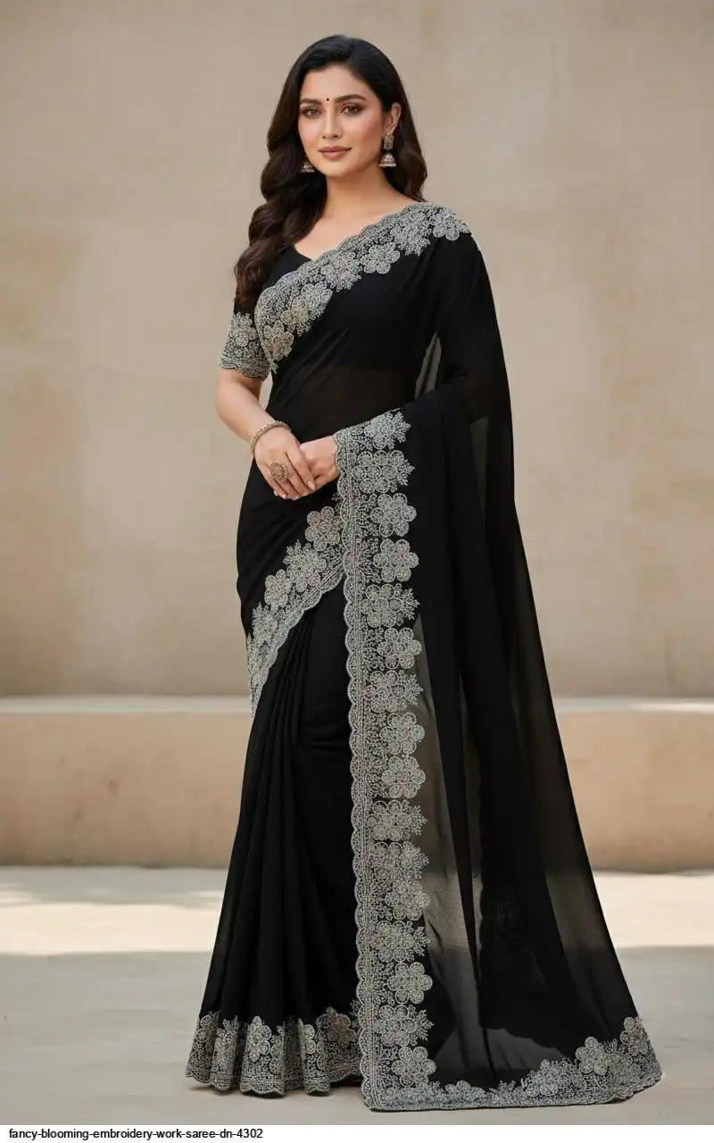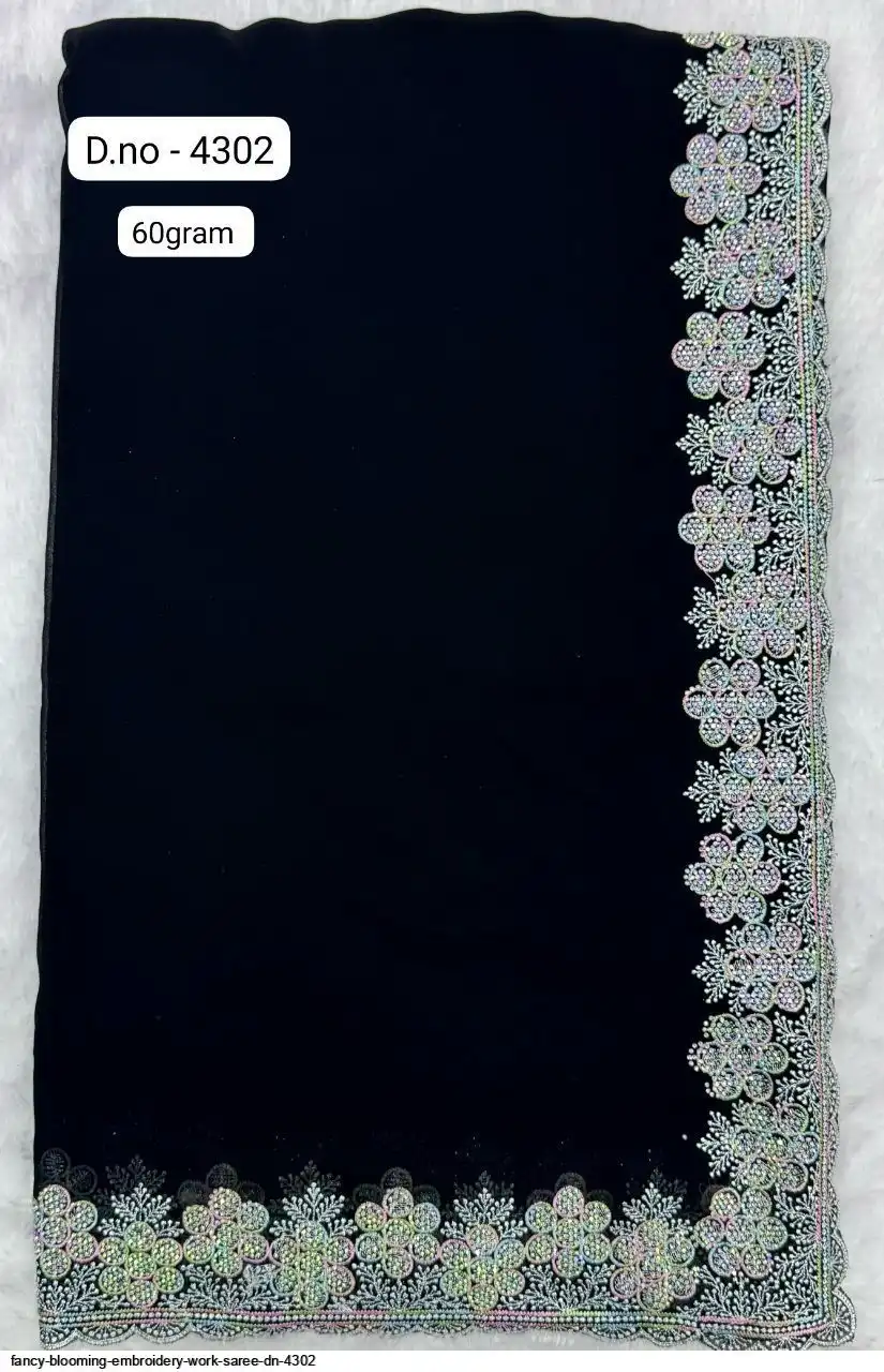 Work : Full Heavy Silver Zari Embroidery Work Border With Rembo Stone Work