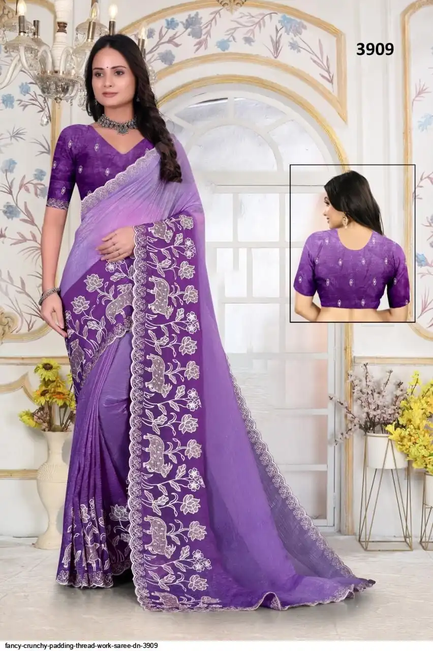 FANCY CRUNCHY PADDING THREAD WORK SAREE DN 3909
