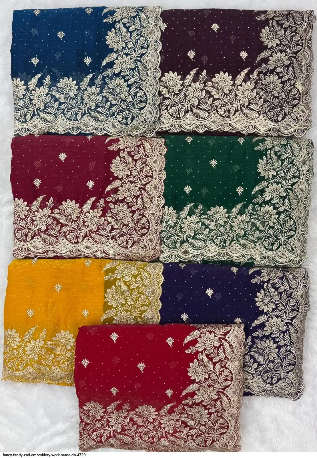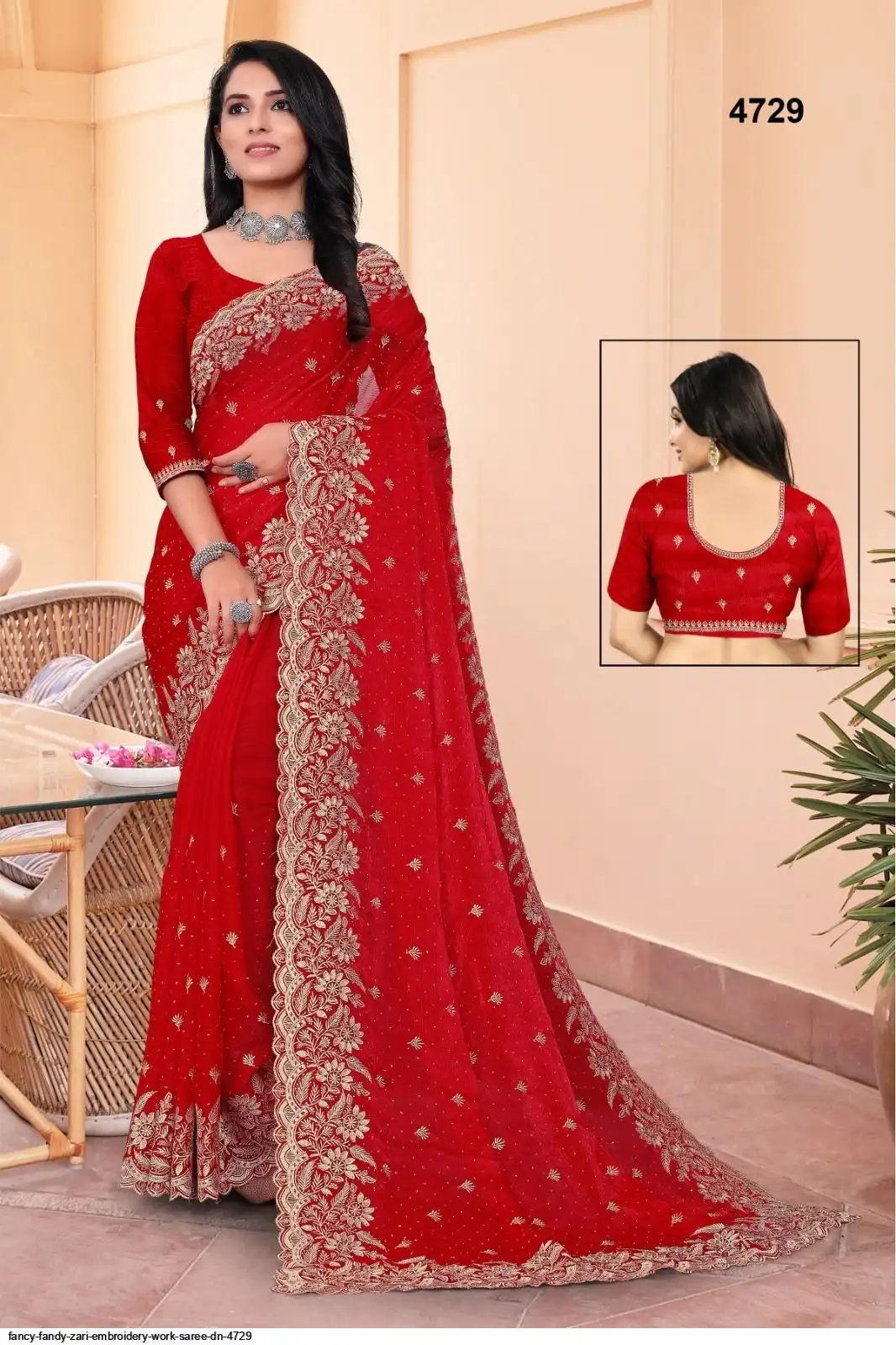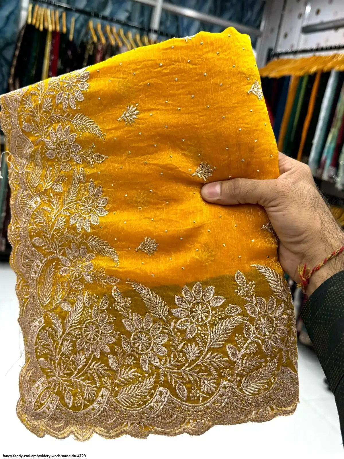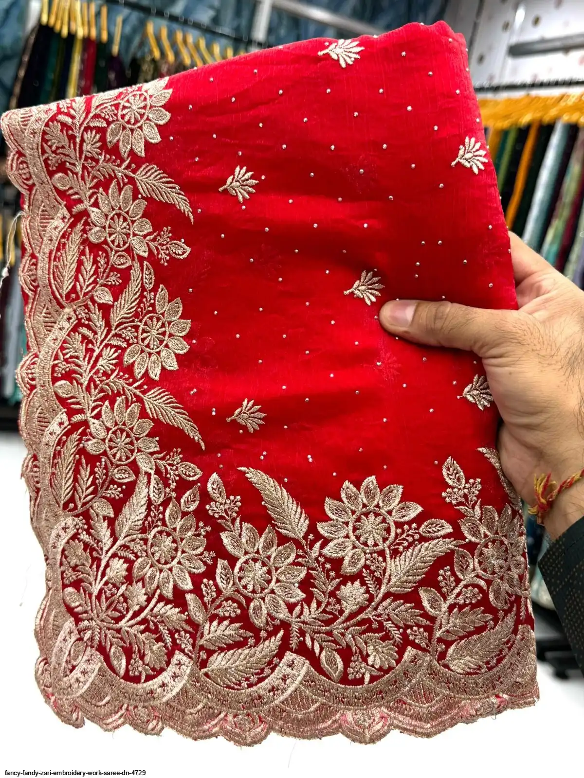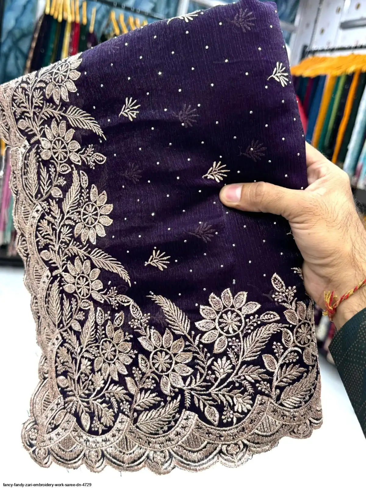 Work : Full Heavy Zari Embroidery Work In All Over Saree With Stone Work.