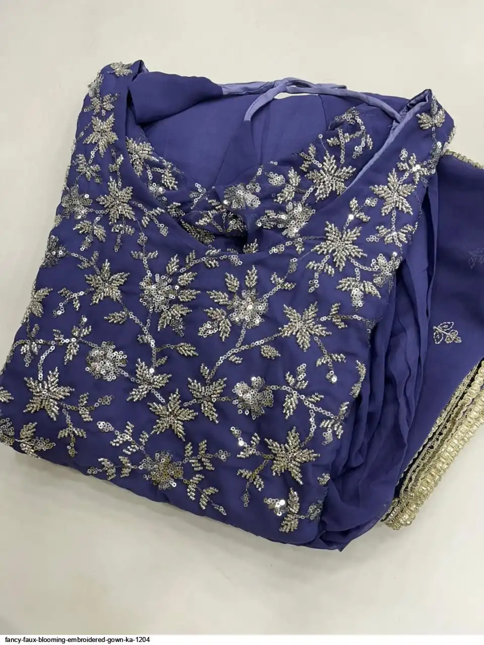 FABRIC & WORK :- Faux Blooming With Sequins Multithreaded Beads Embroidered work.