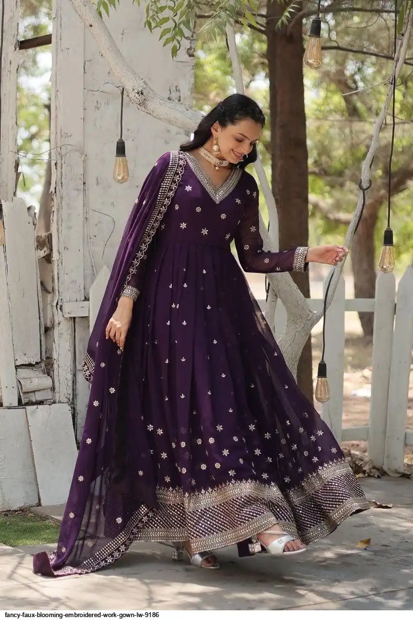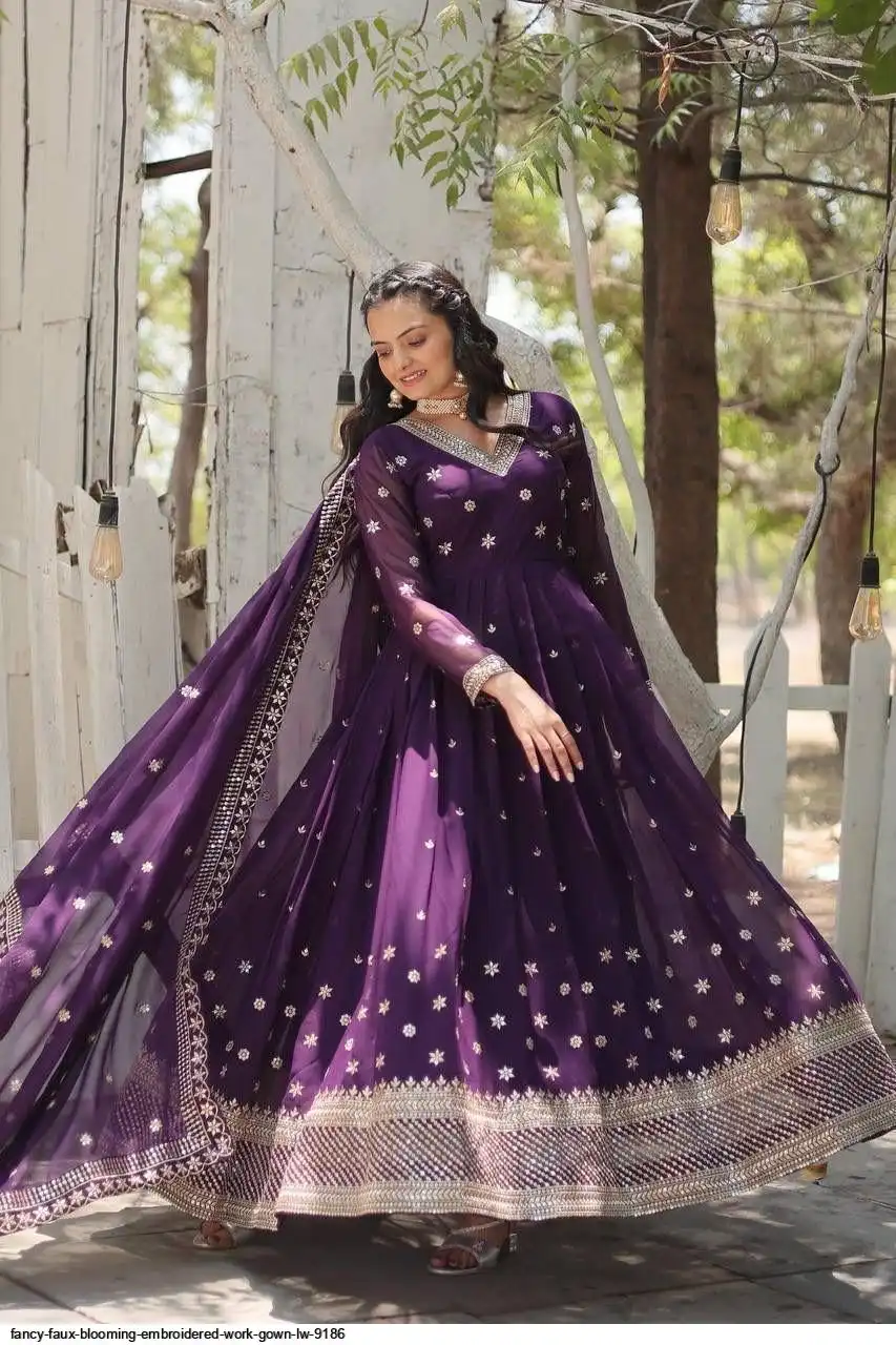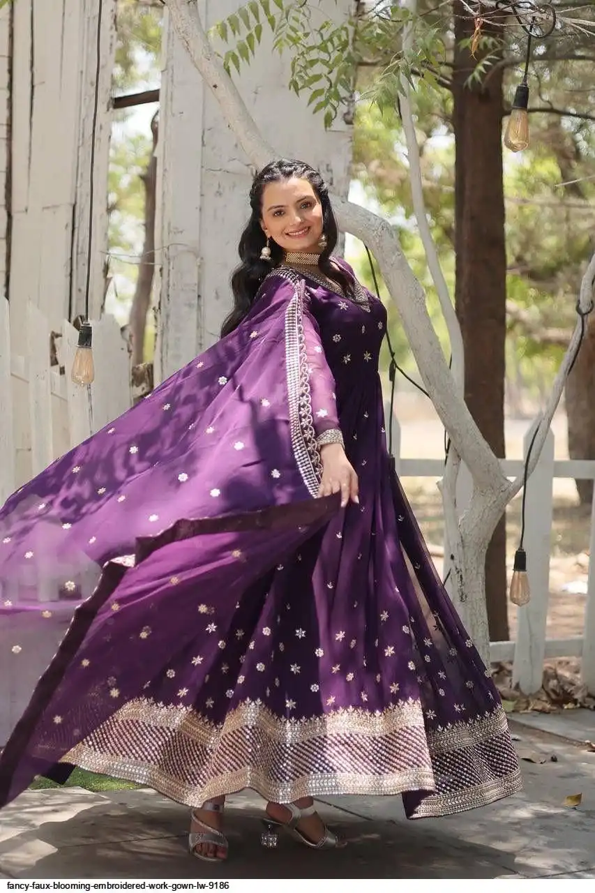 FABRICS & WORK :- Faux Blooming Gown with Rich Sequins Embroidered work