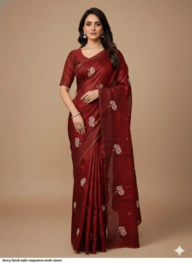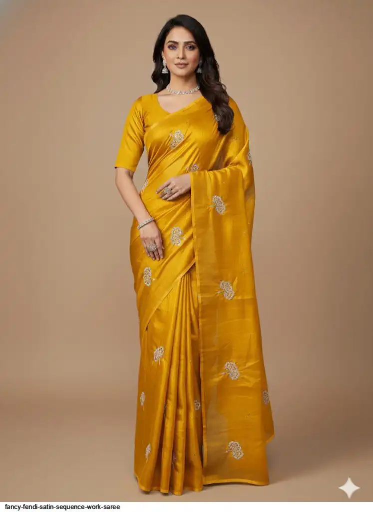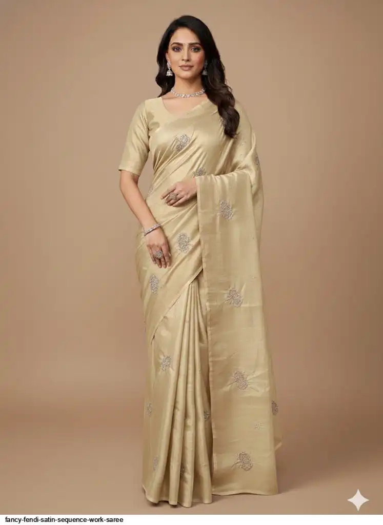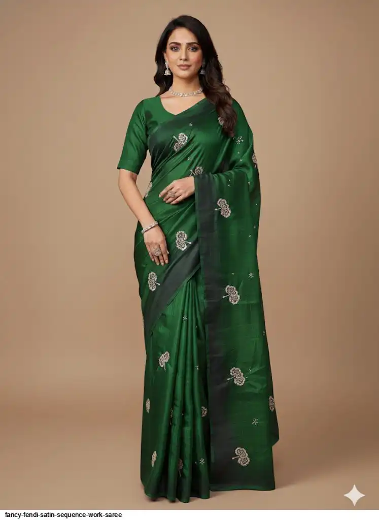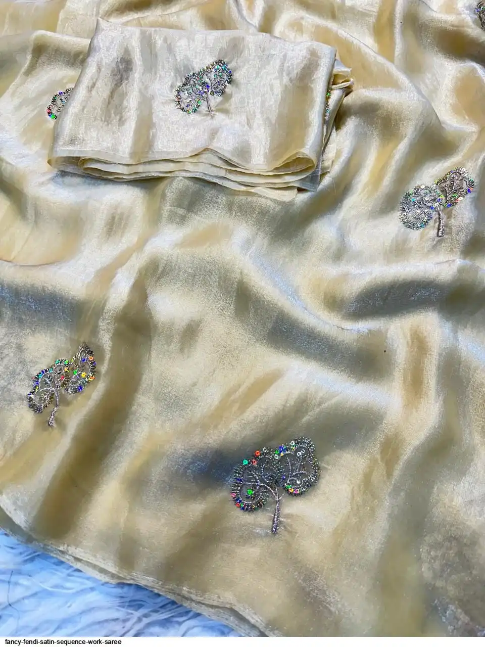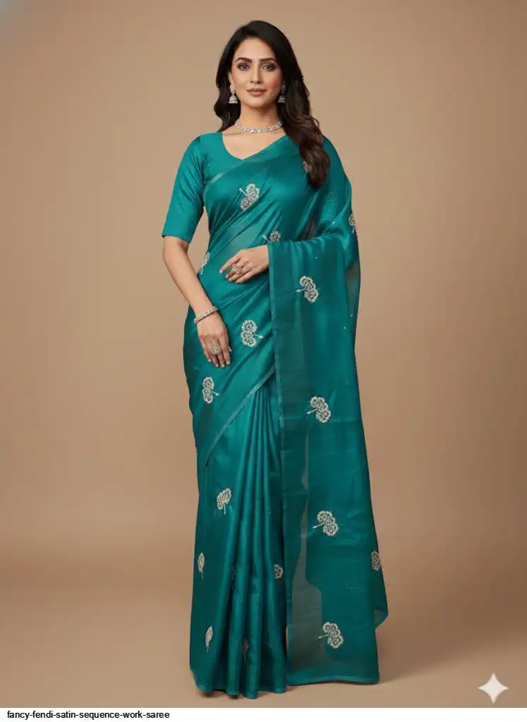 Fendy Sattin Dual Shaded With Beautiful Zari With Sequence Work Flower Butti All In Saree & running Blouse Work !!