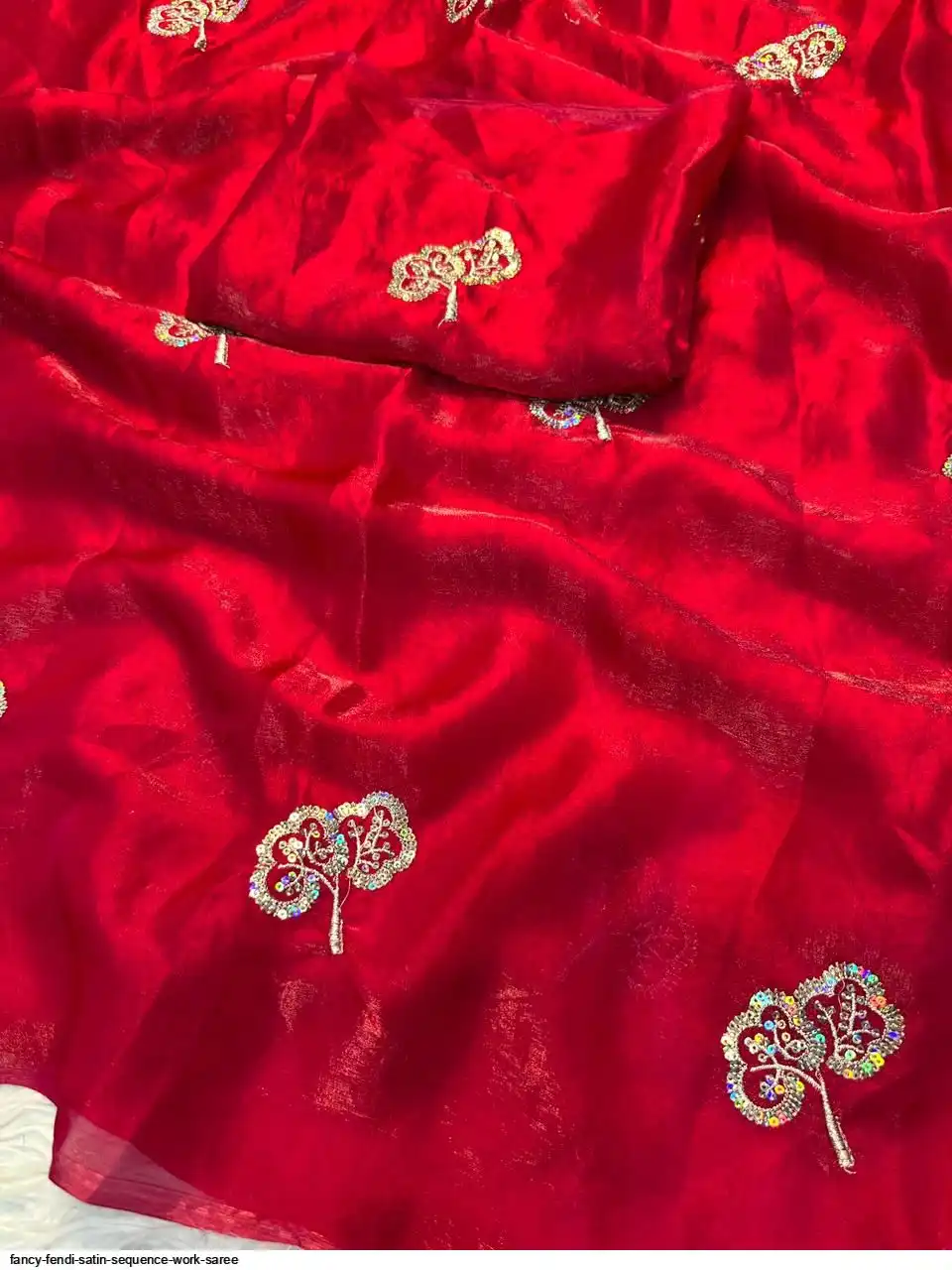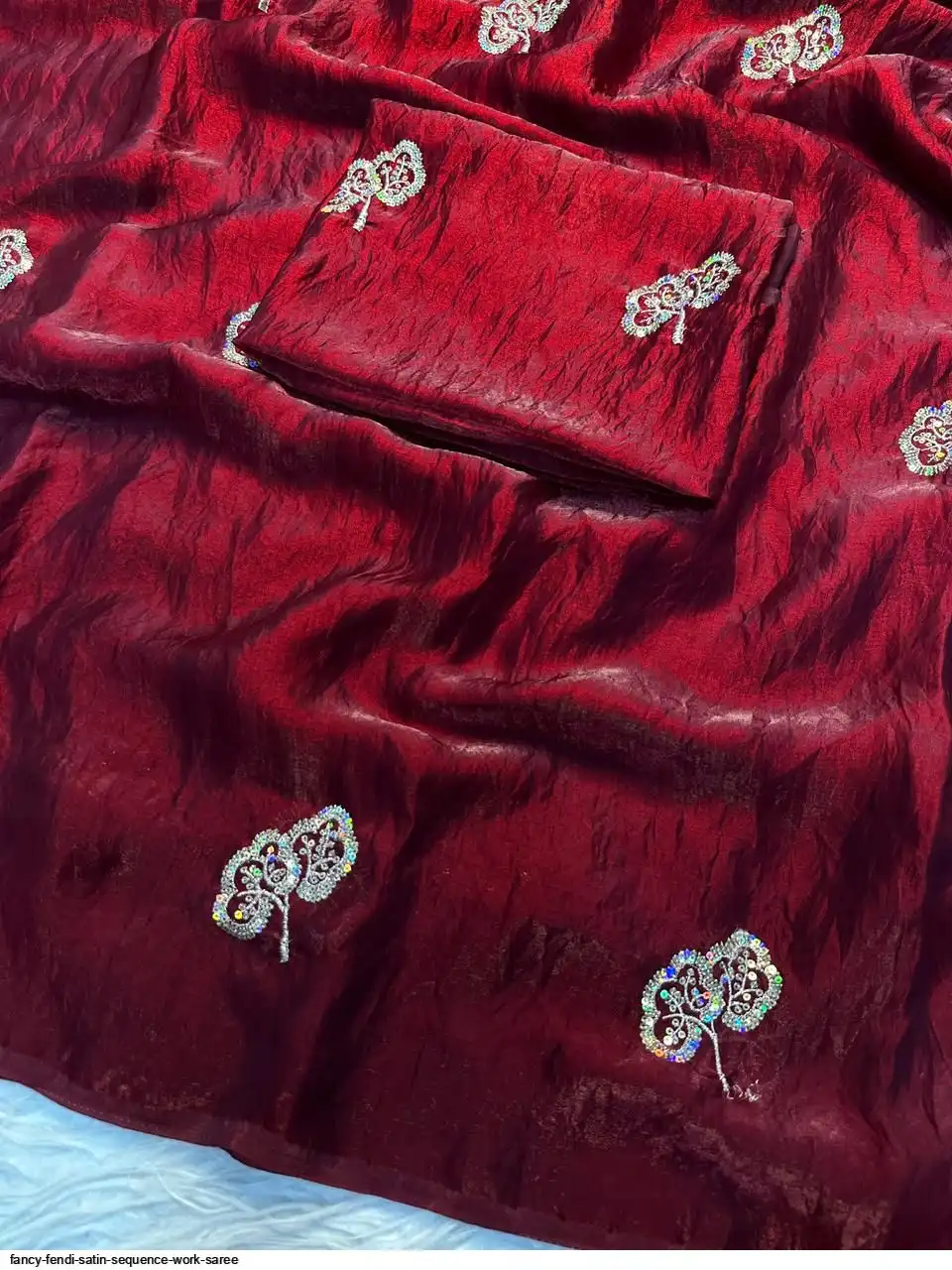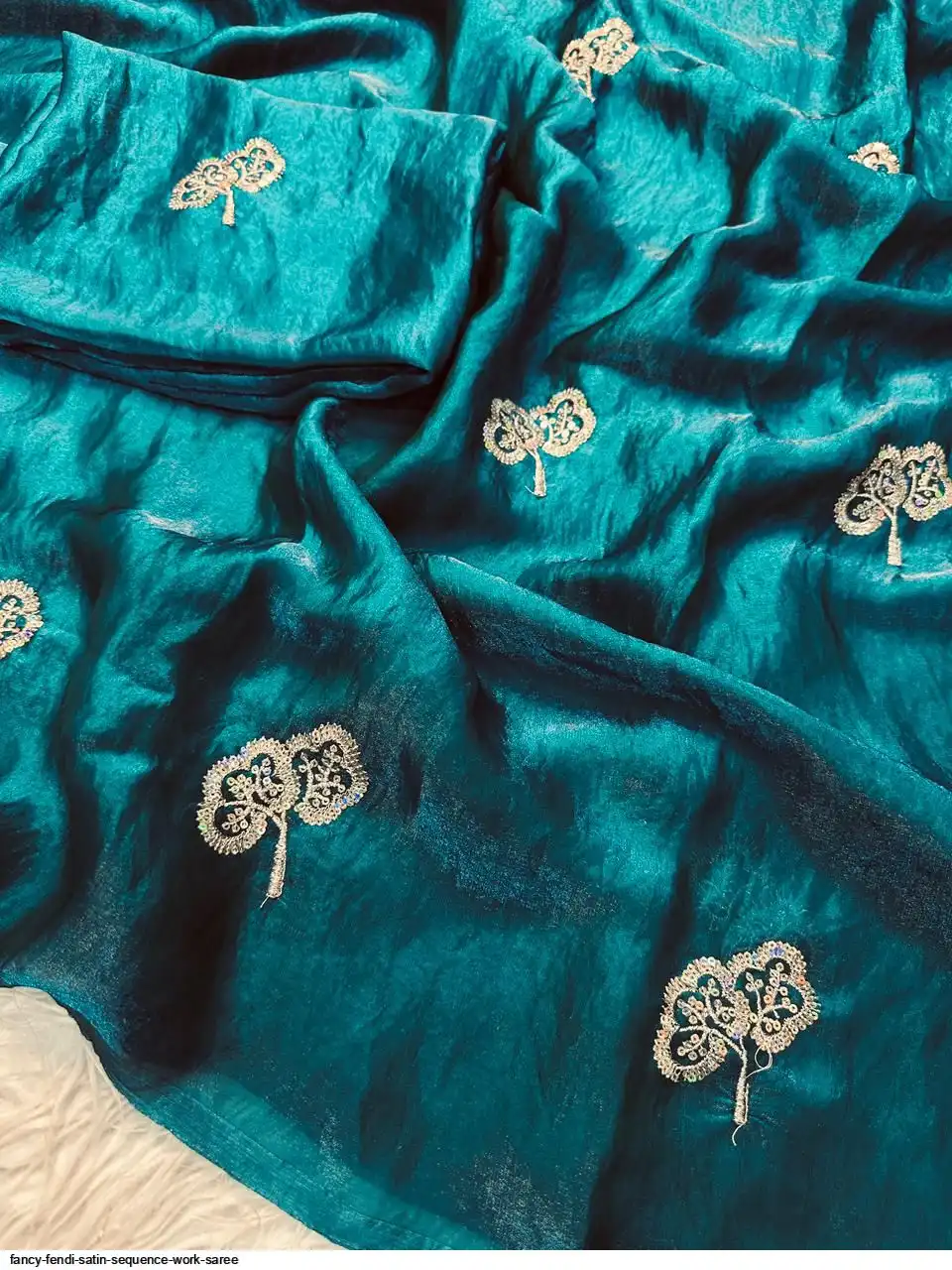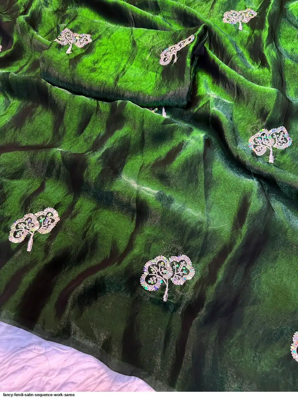 Fendy Sattin Dual Shaded With Beautiful Zari With Sequence Work Flower Butti All In Saree & running Blouse Work !!