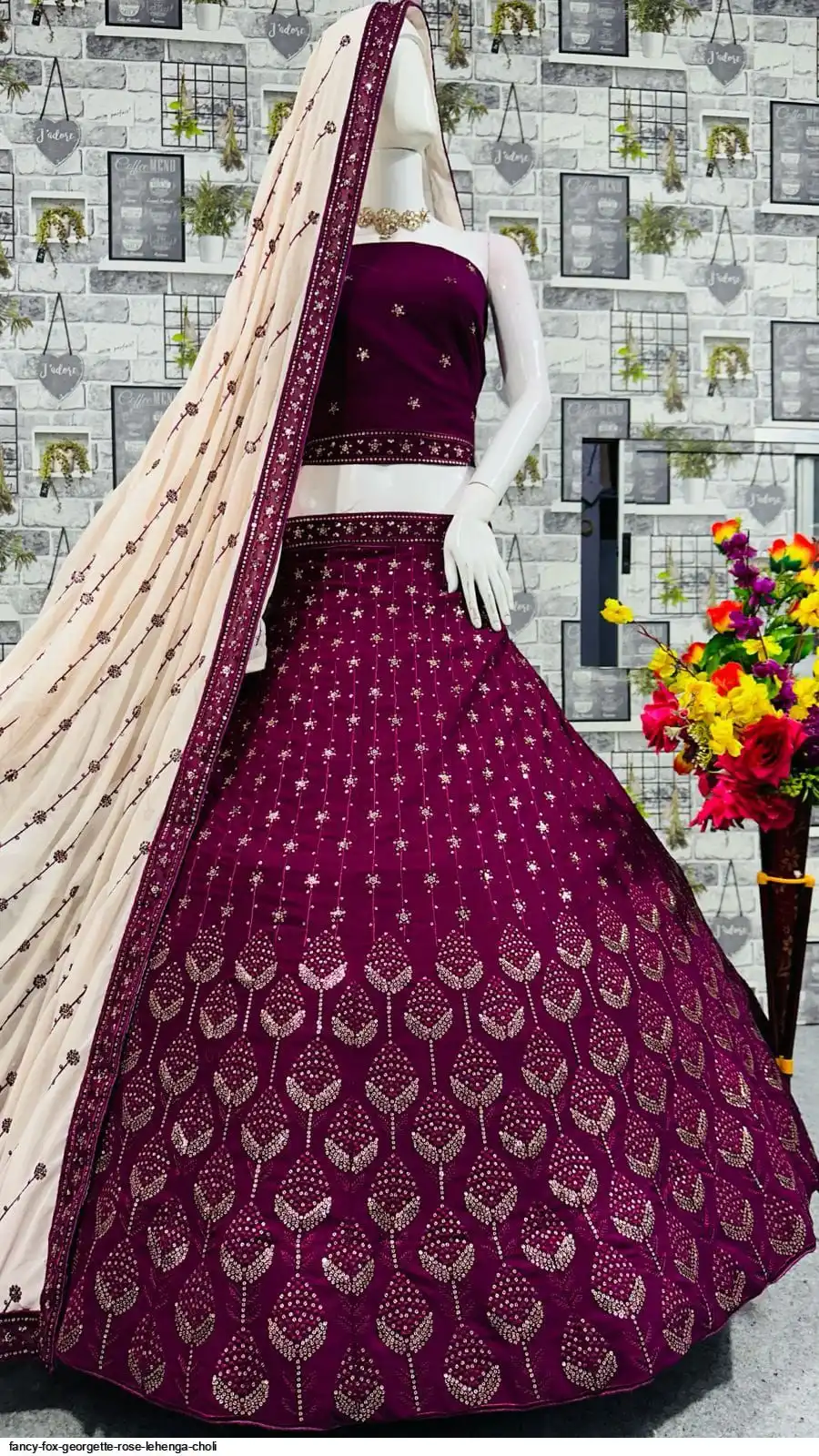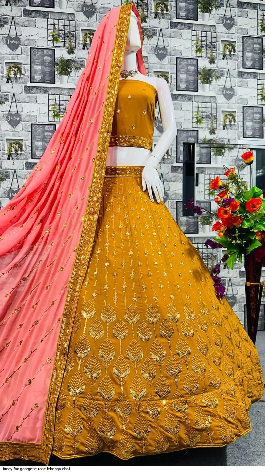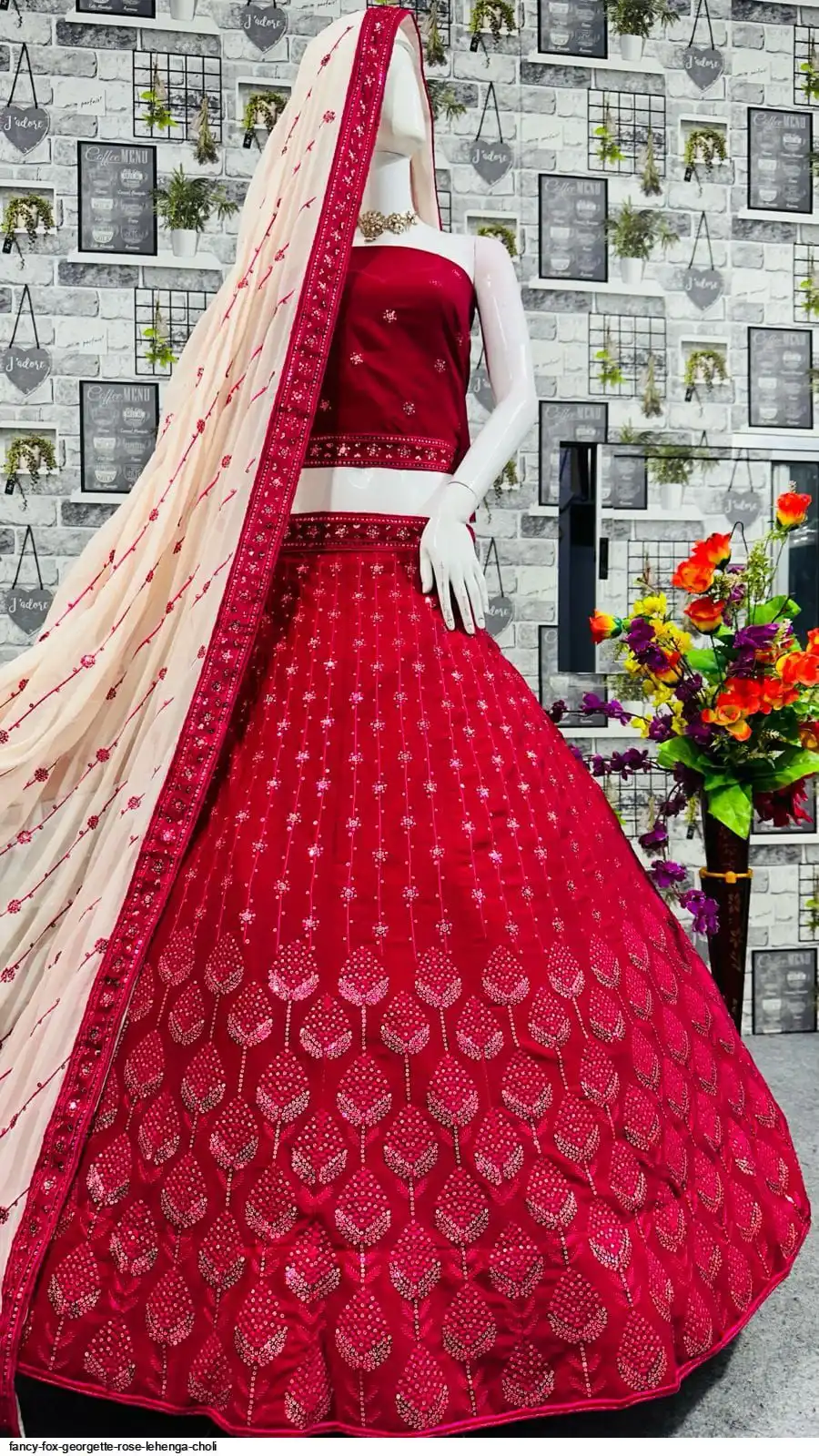 FANCY FOX GEORGETTE ROSE LEHENGA CHOLI