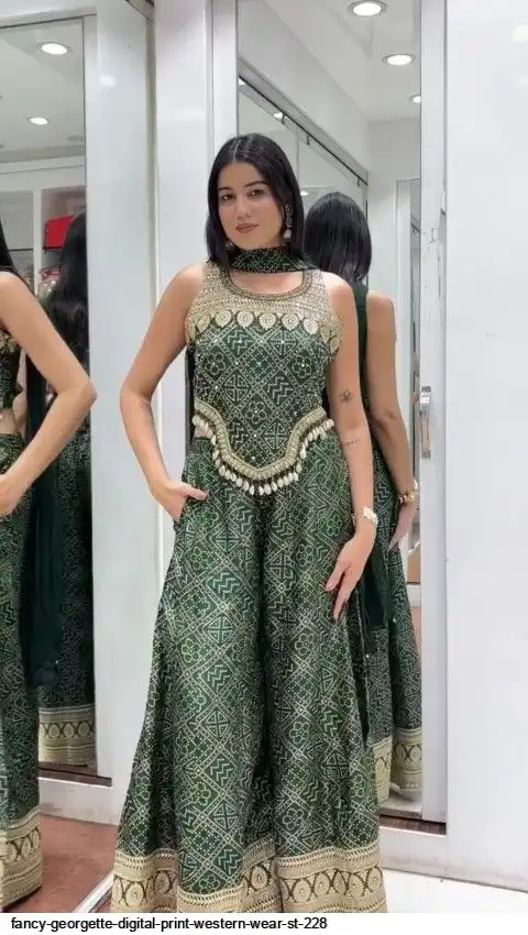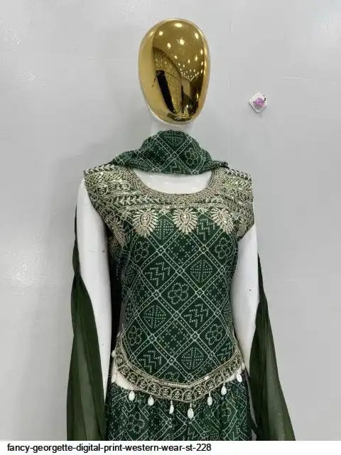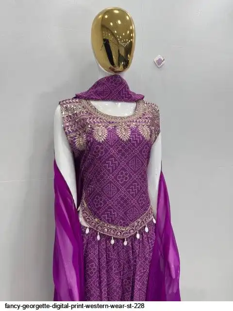 # TOP WORK : FANCY DIGITAL PRINT WITH EMBROIDERED SEQUENCE WORK AND KODI LACE BODAR