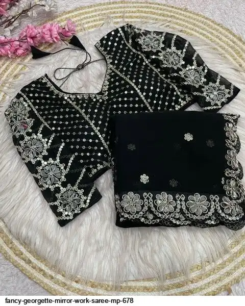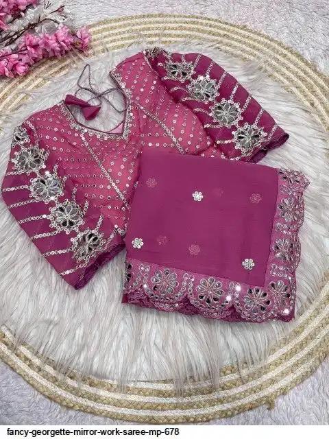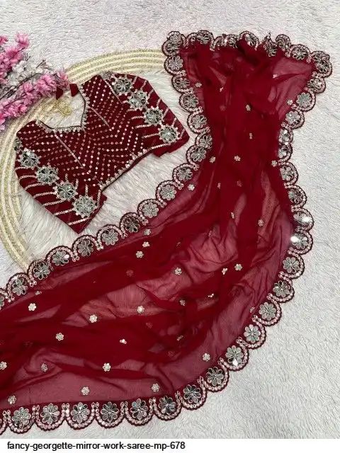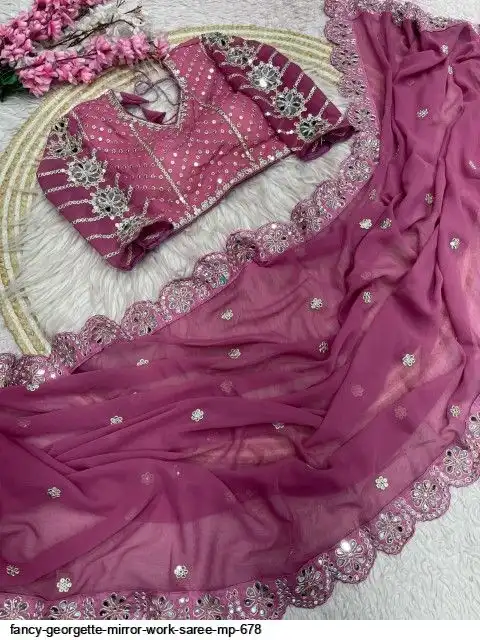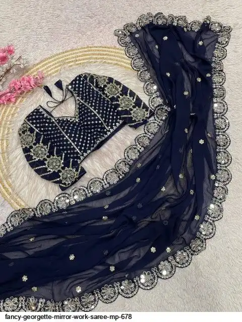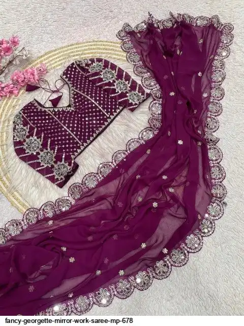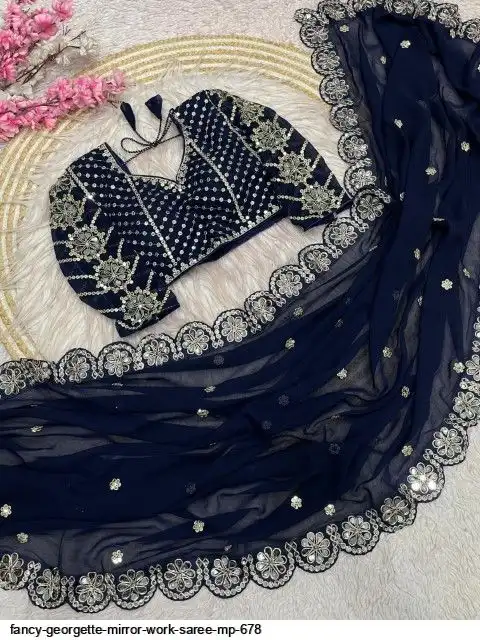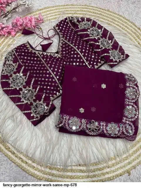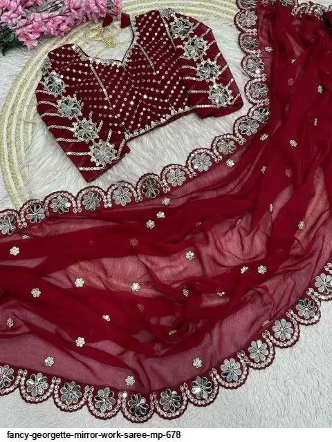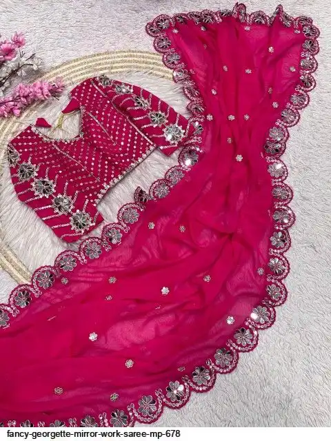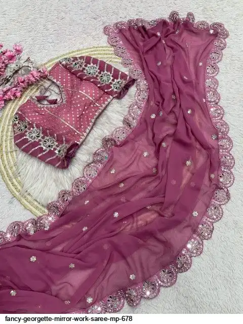 *Work *: -Fox Georgette With Embroidery work with Coding lace Border in saree With original mirror