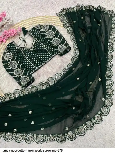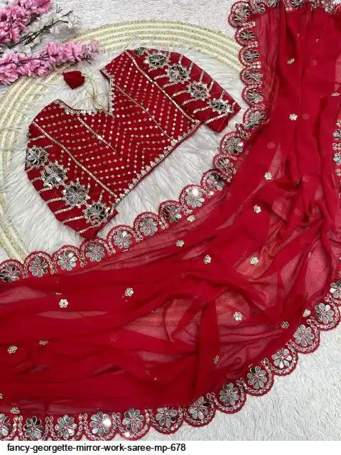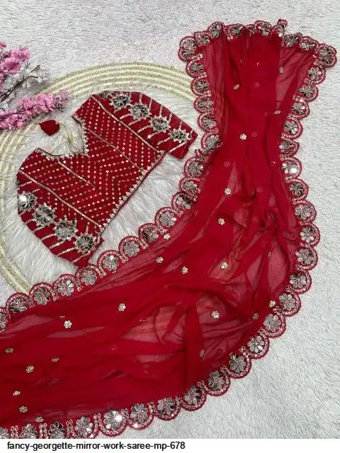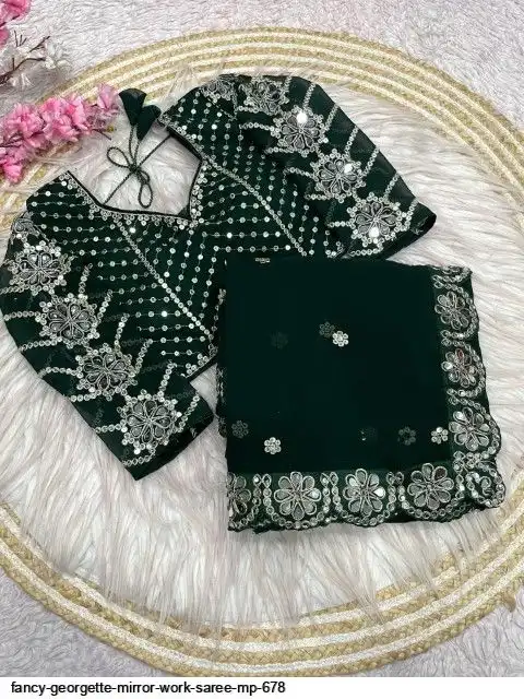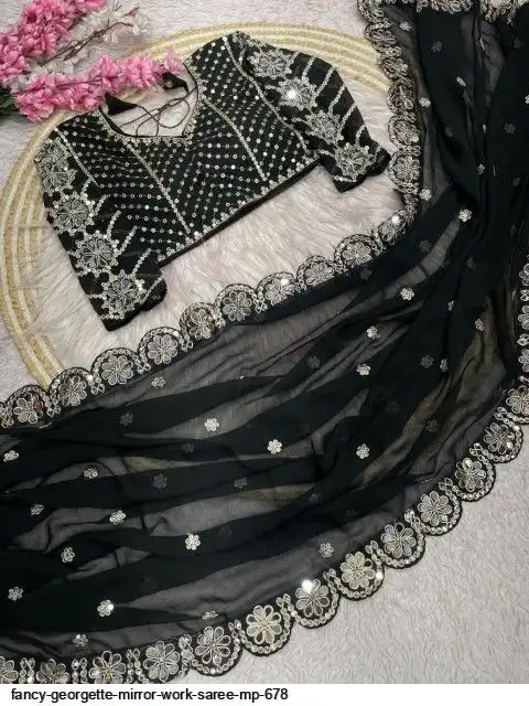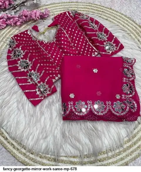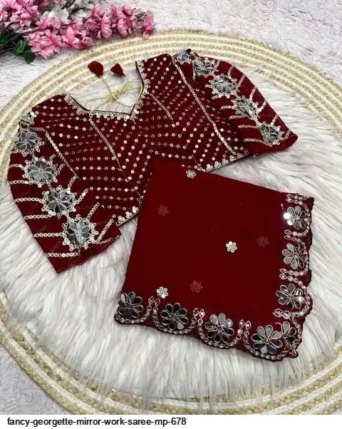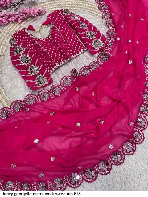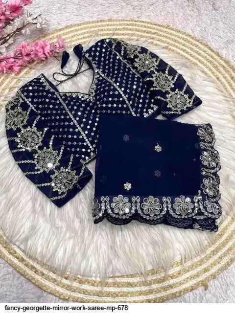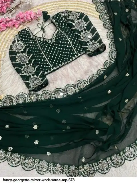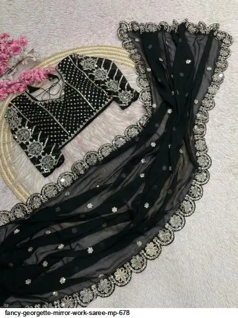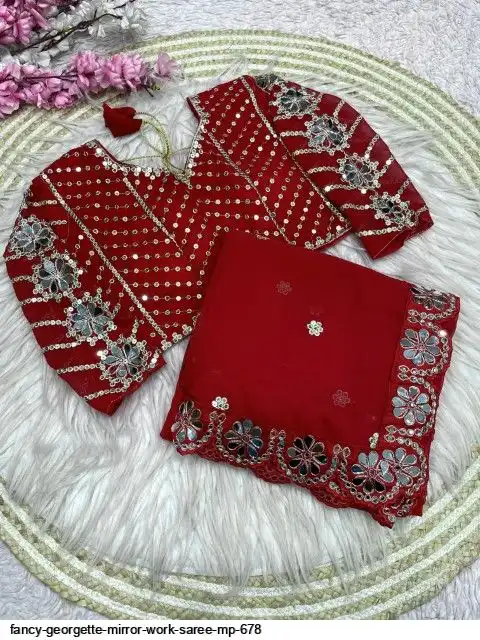 *Work *: -Fox Georgette With Embroidery work with Coding lace Border in saree With original mirror