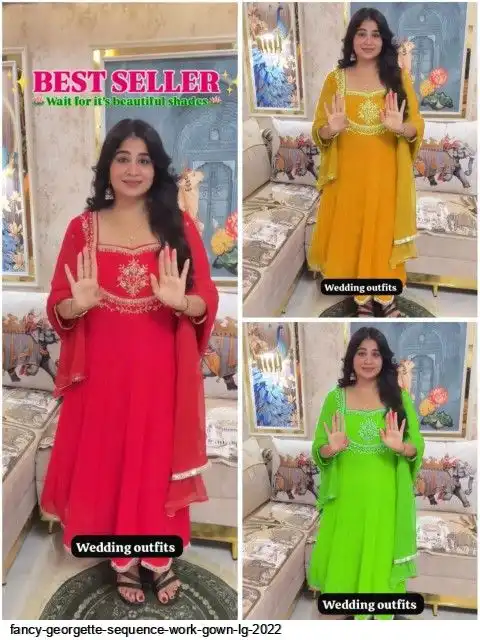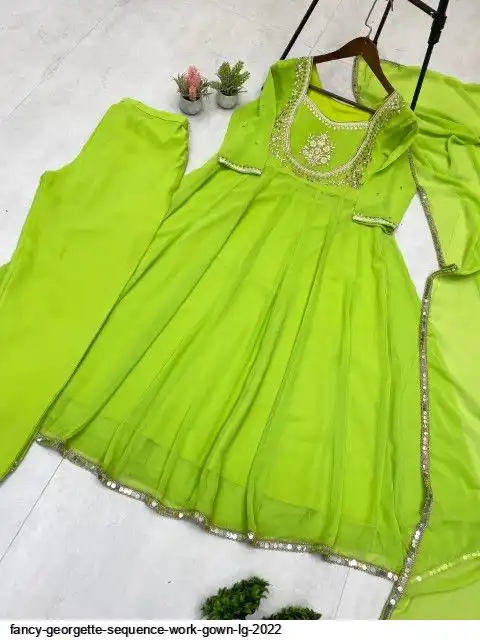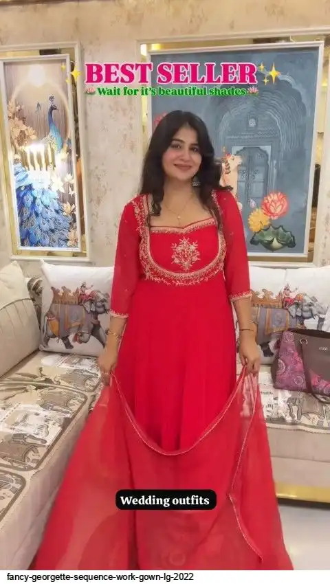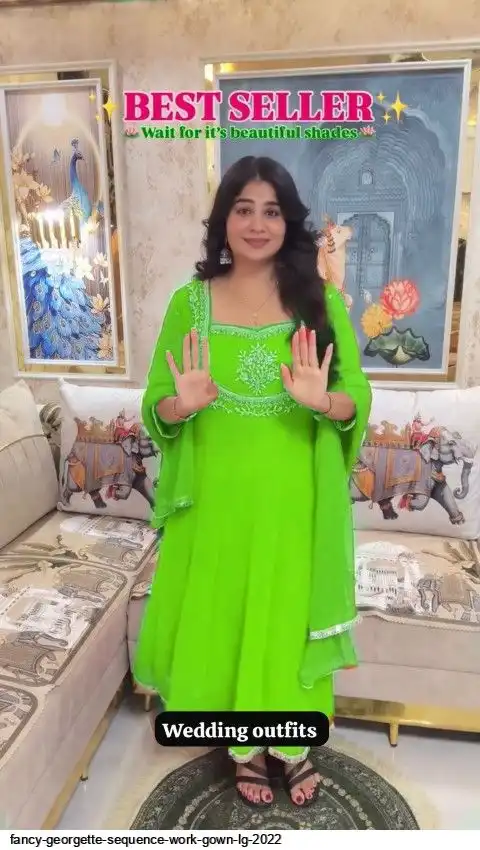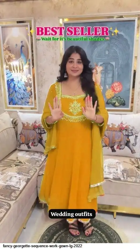 EXCLUSIVE 3 PIECE GOWN-PANT PAIR WITH SEQUENCE EMBROIDERY WORK