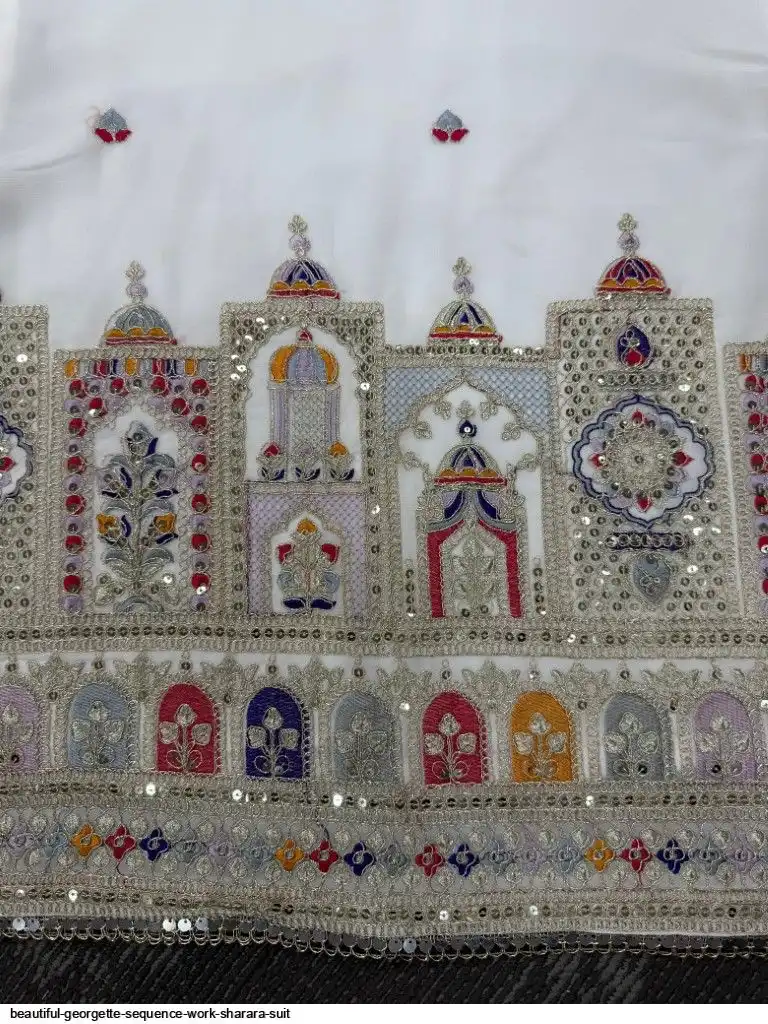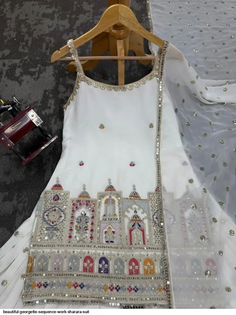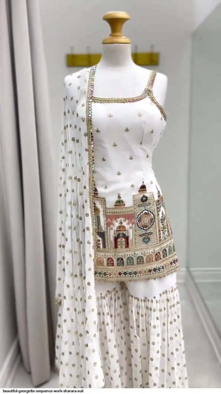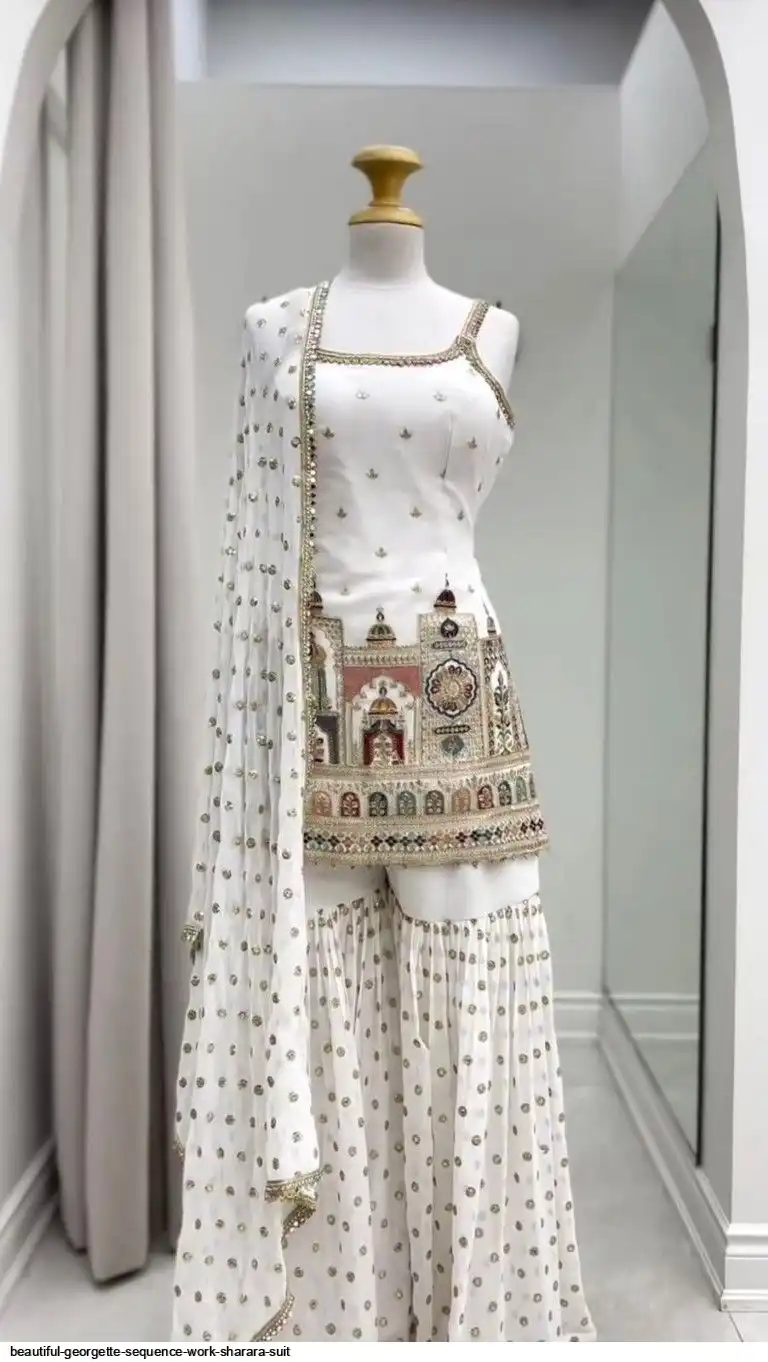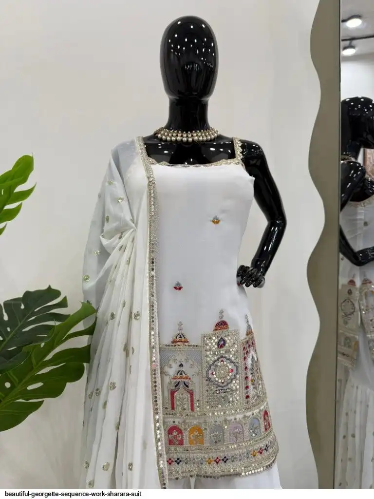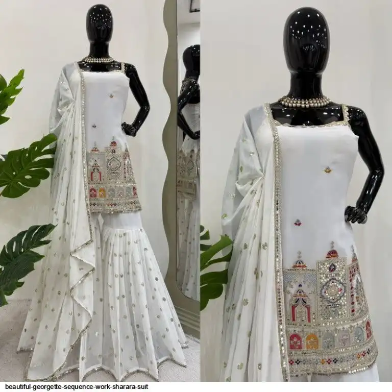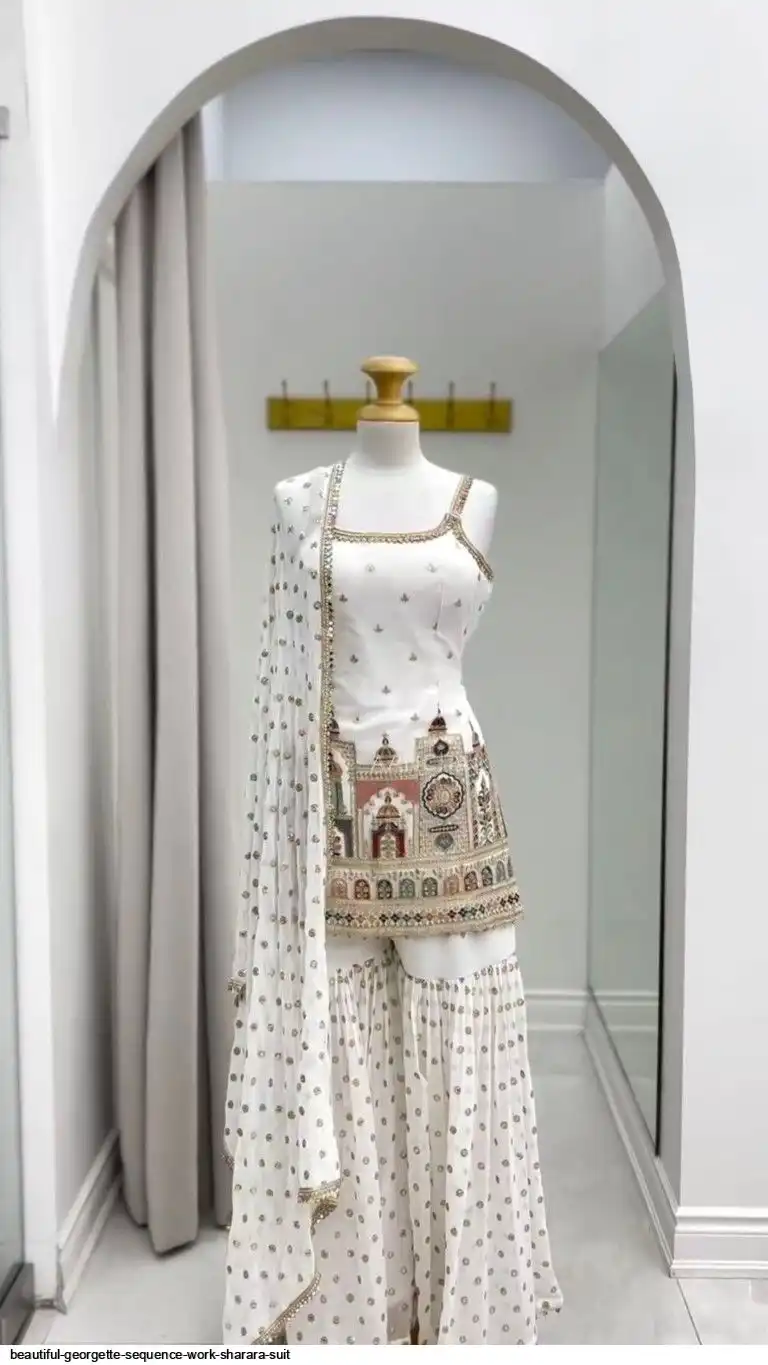 Description Looking for this same colour beautiful Designer Suit on Foux Gorgette fabric With Inner and Thred & Sequnce work shara On foux Gorgette Fabric and Dupatta on Also Foux Gorgette fabric .