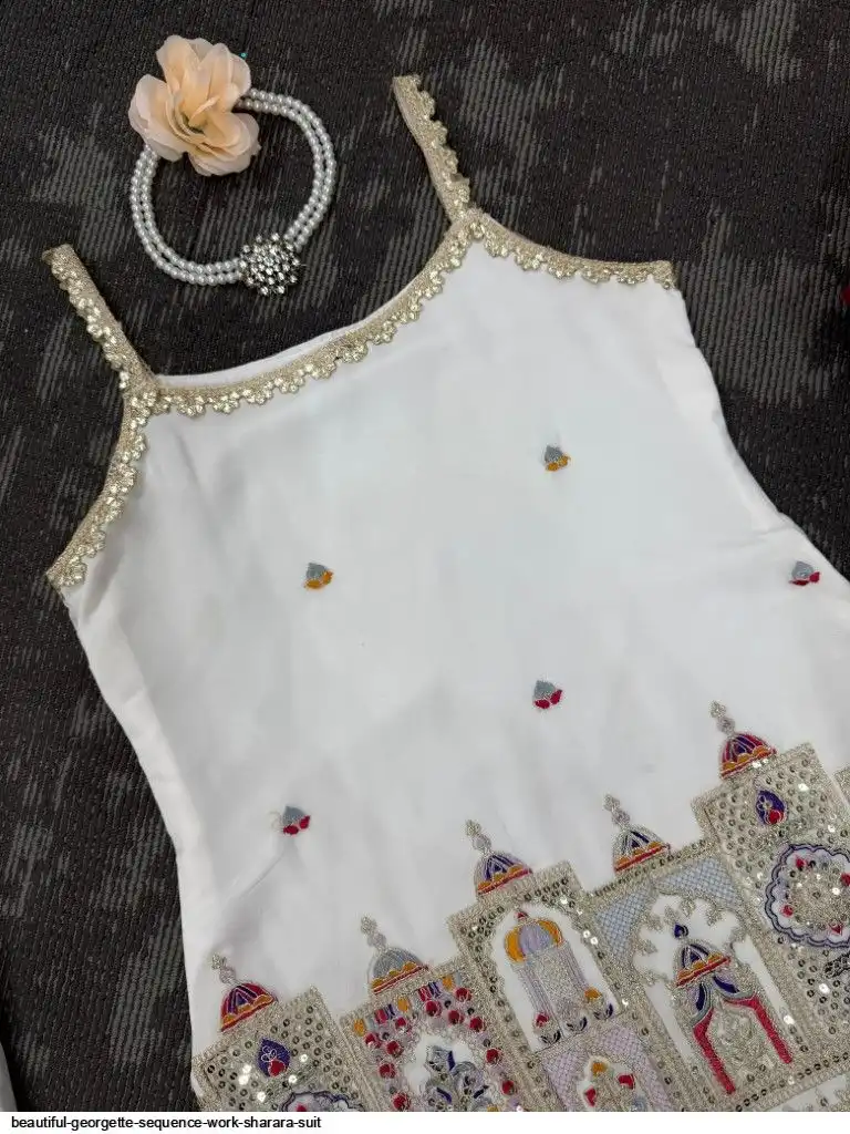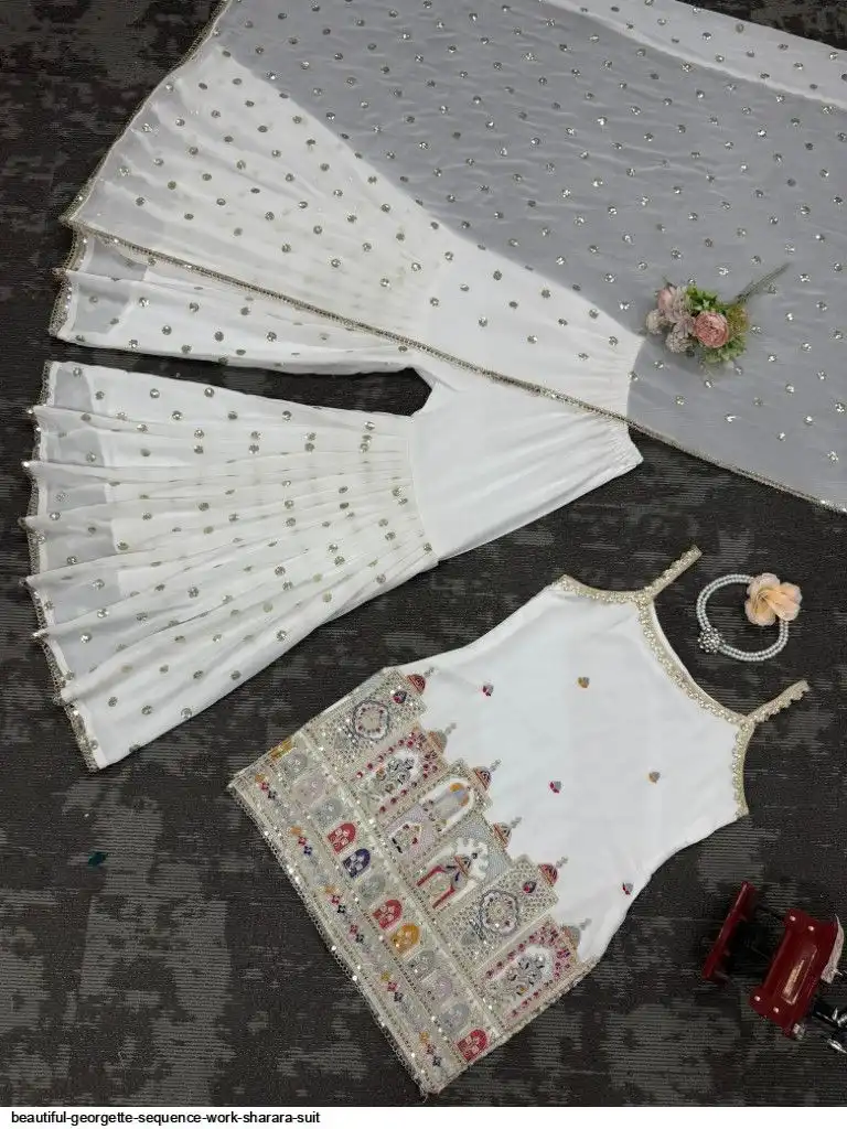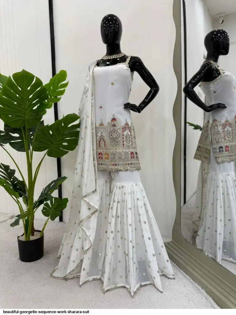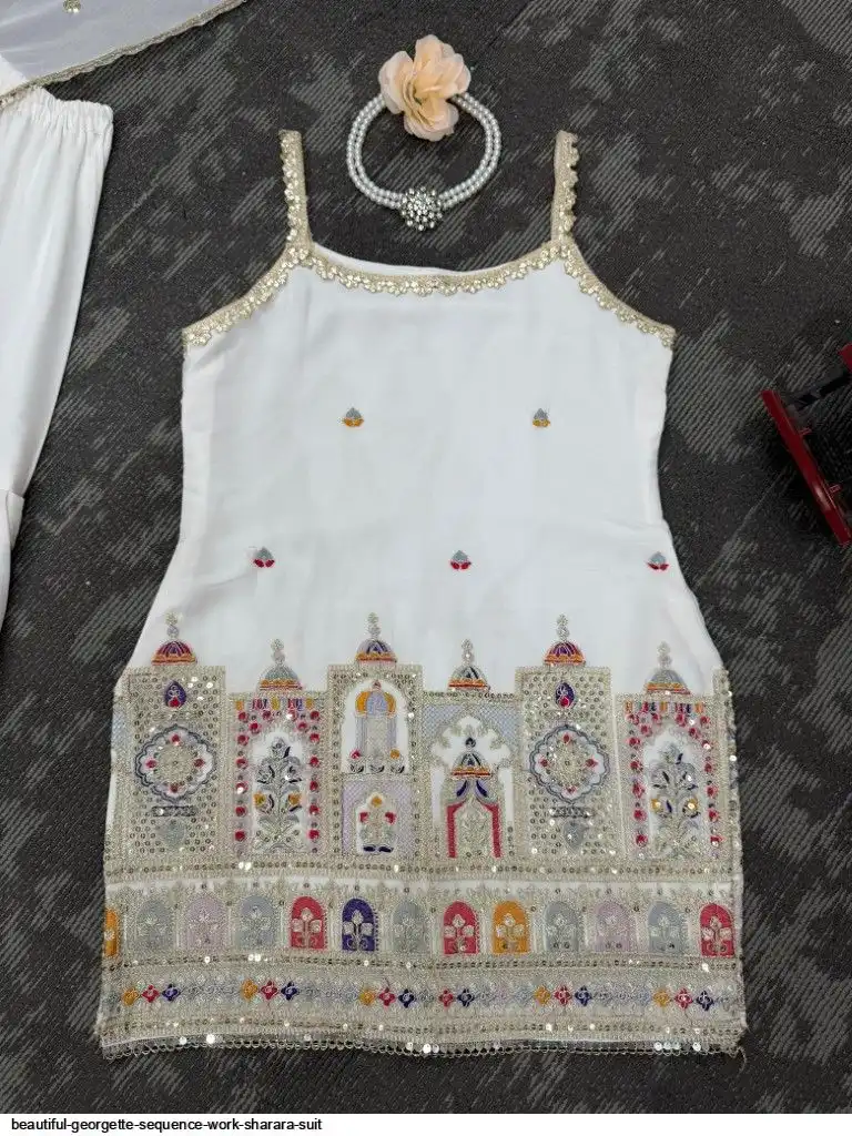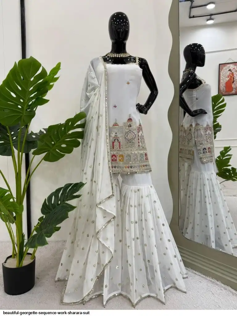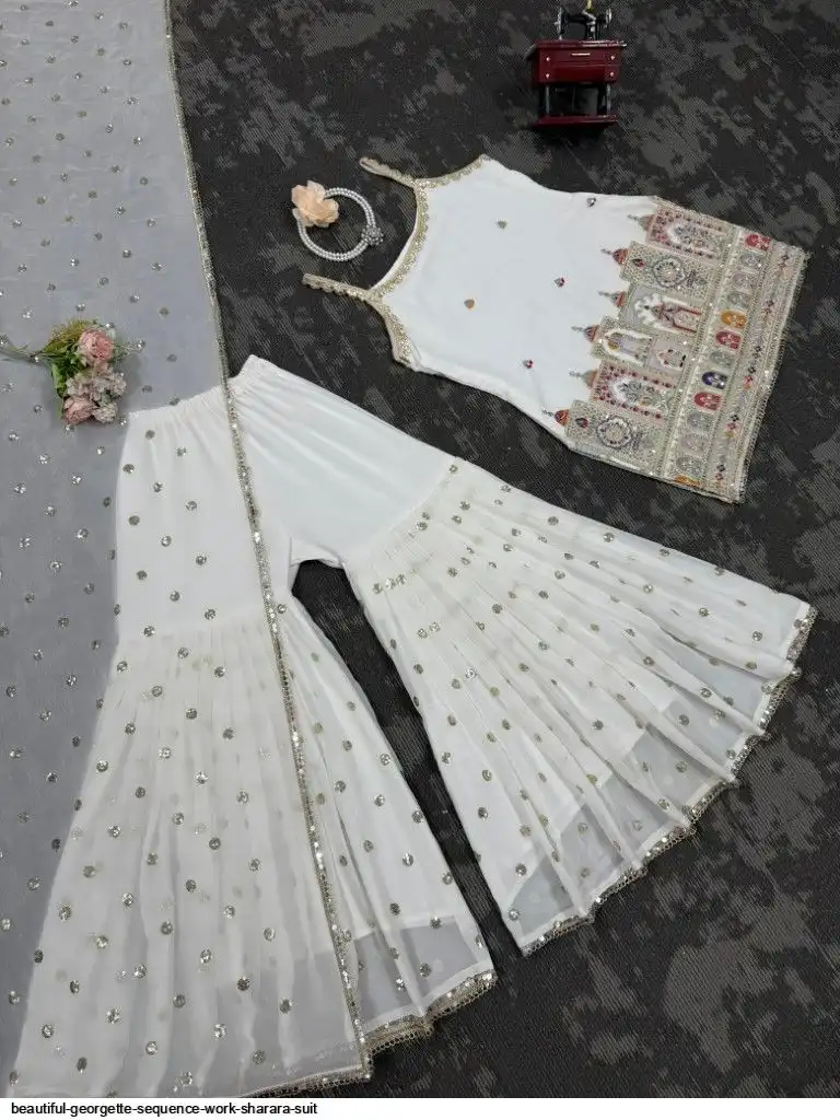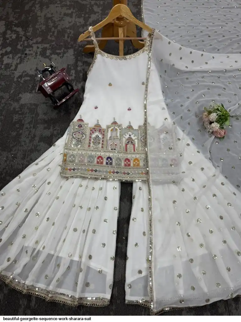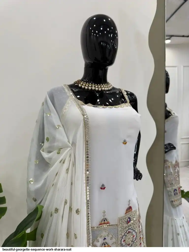 Description Looking for this same colour beautiful Designer Suit on Foux Gorgette fabric With Inner and Thred & Sequnce work shara On foux Gorgette Fabric and Dupatta on Also Foux Gorgette fabric .