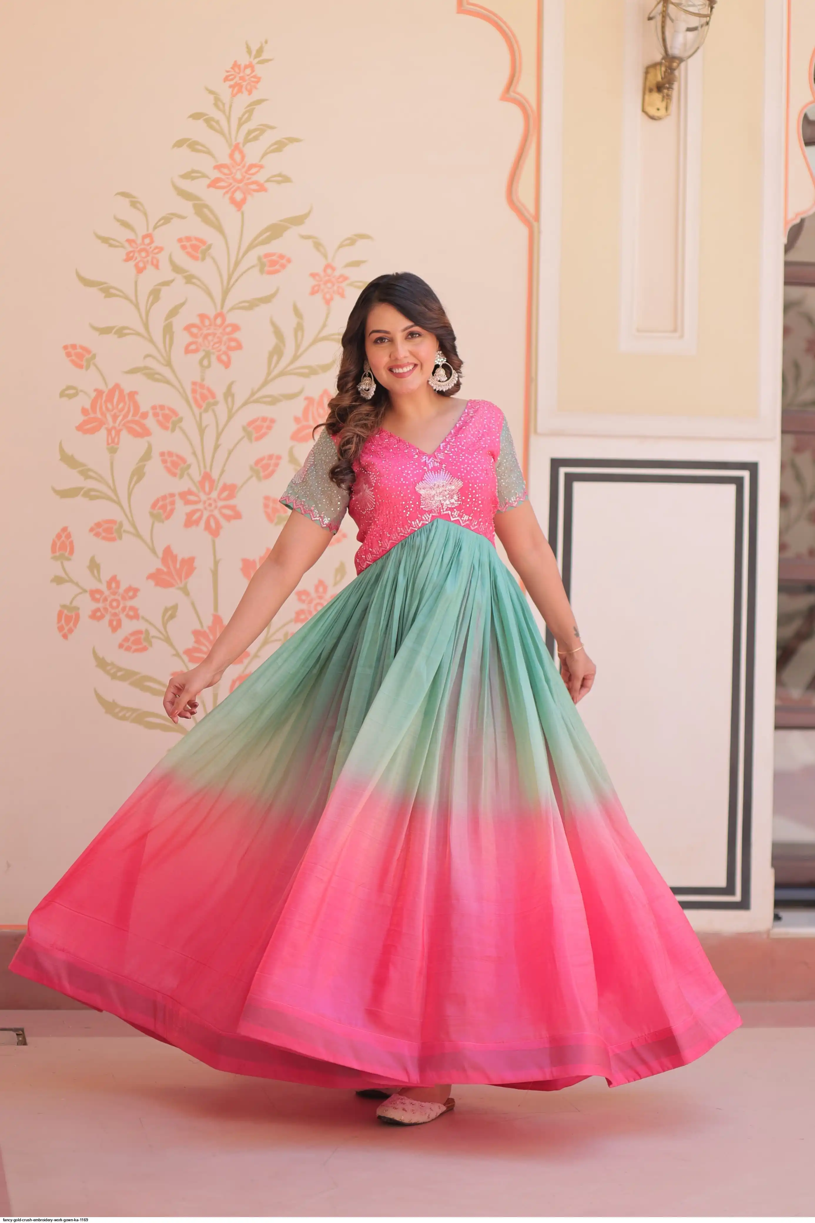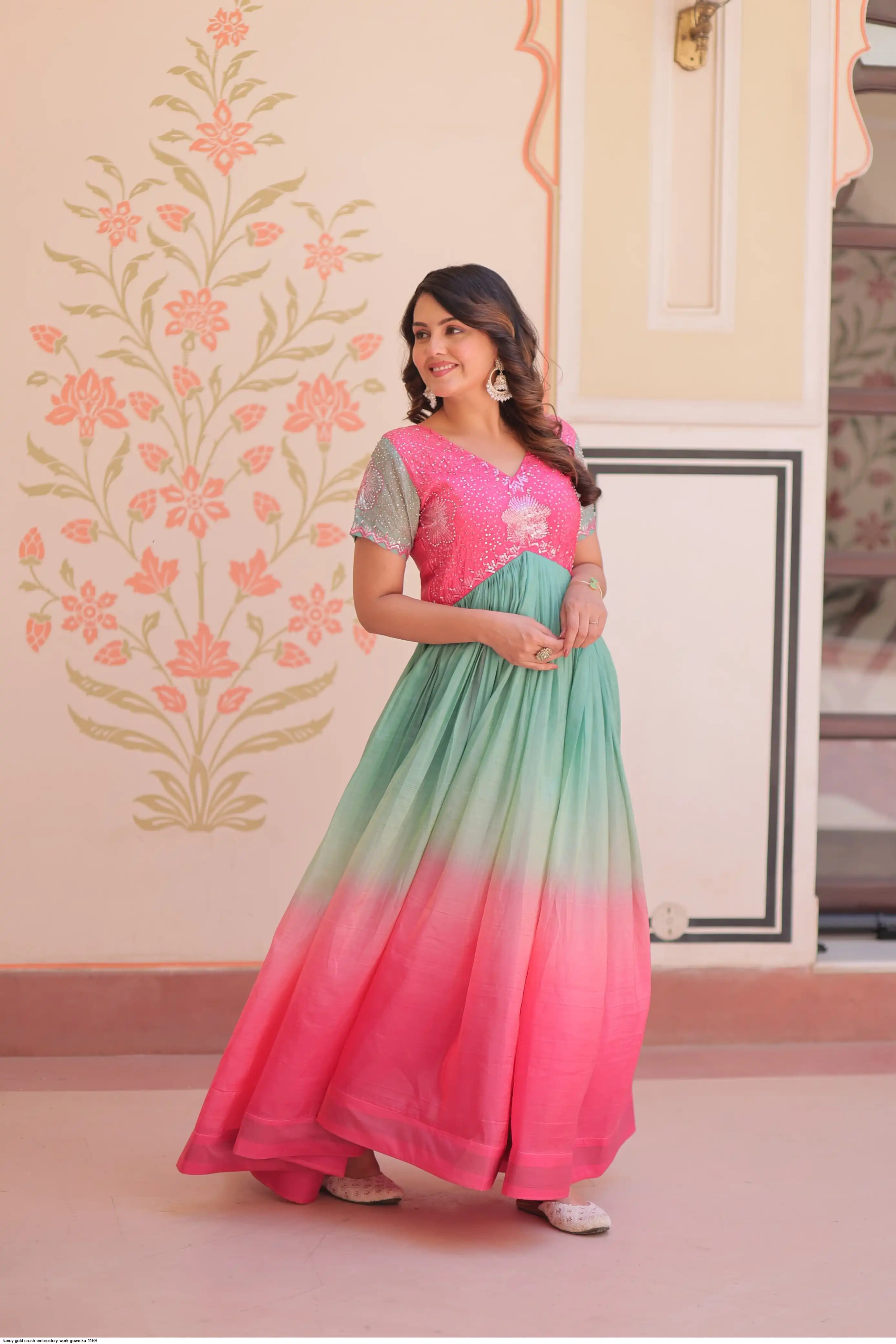 FABRIC & WORK :- Gold Crush Padding With Beads Embroidered Work.
