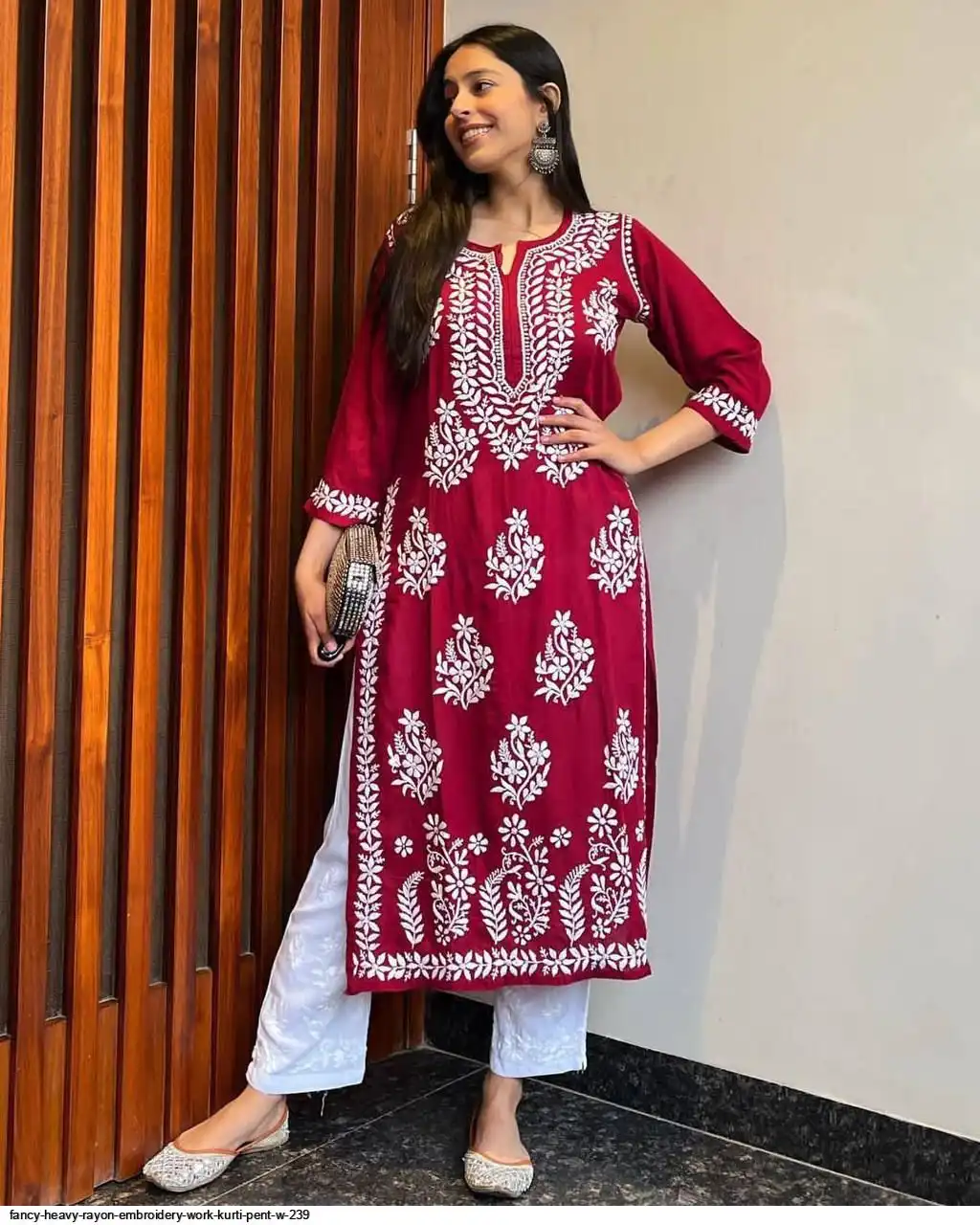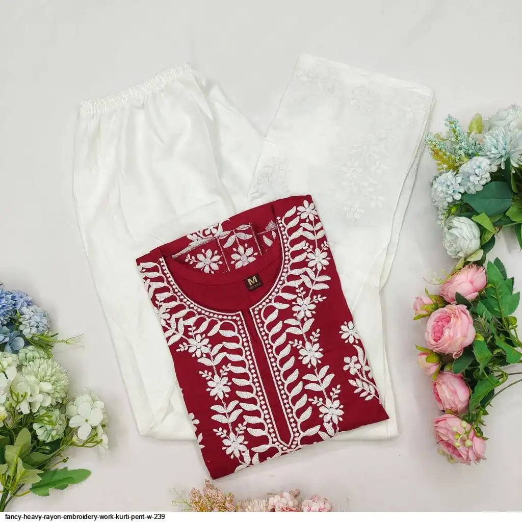 Fabric :- Top And Pent 14_KG Heavy Rayon With Embroidery Work
