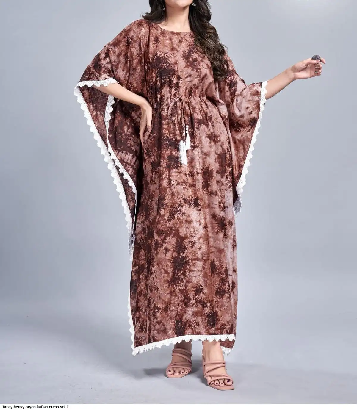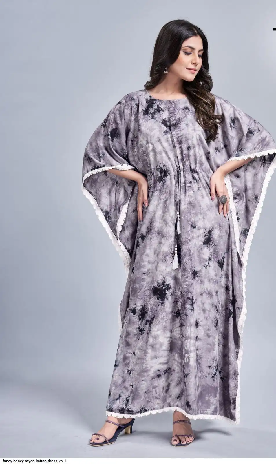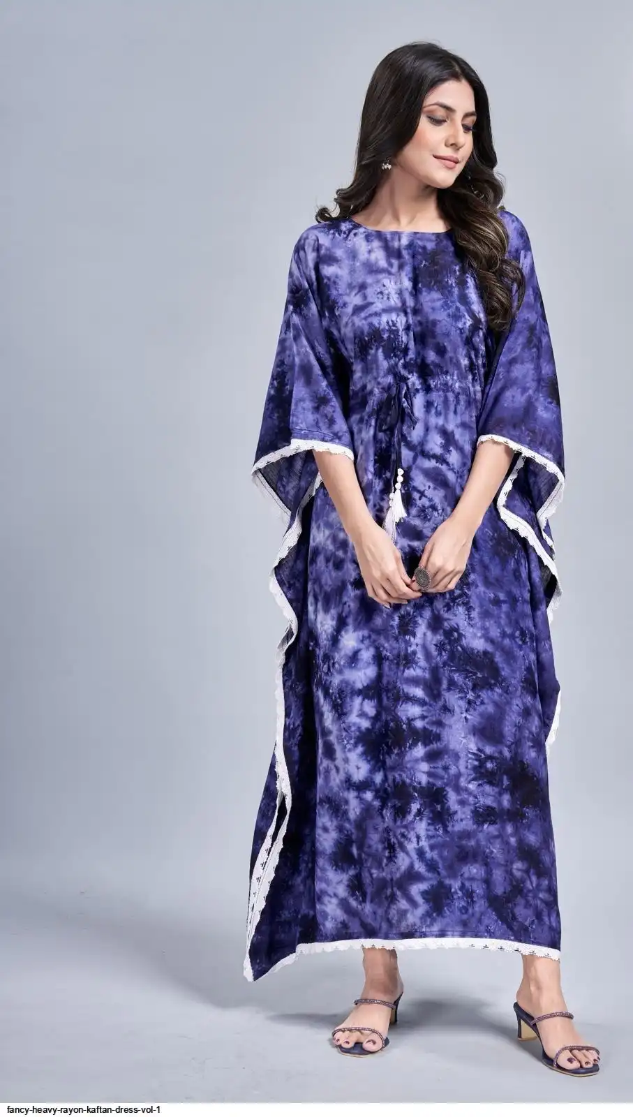 Long Tye dye Print Kaftan dress with lace border