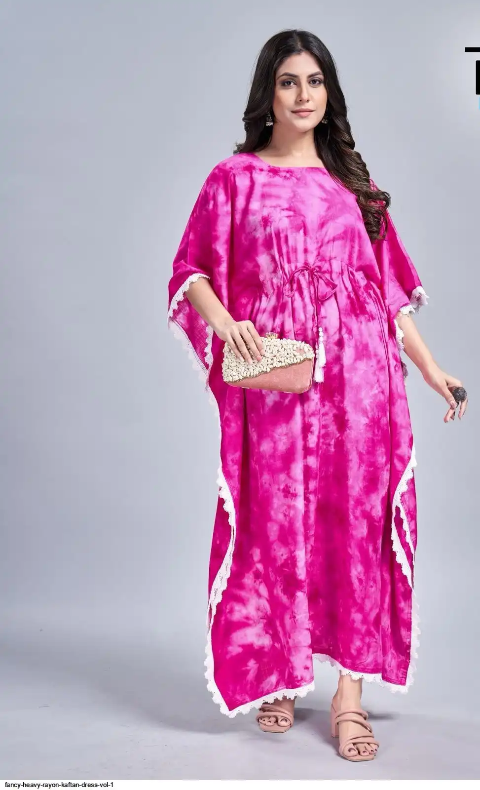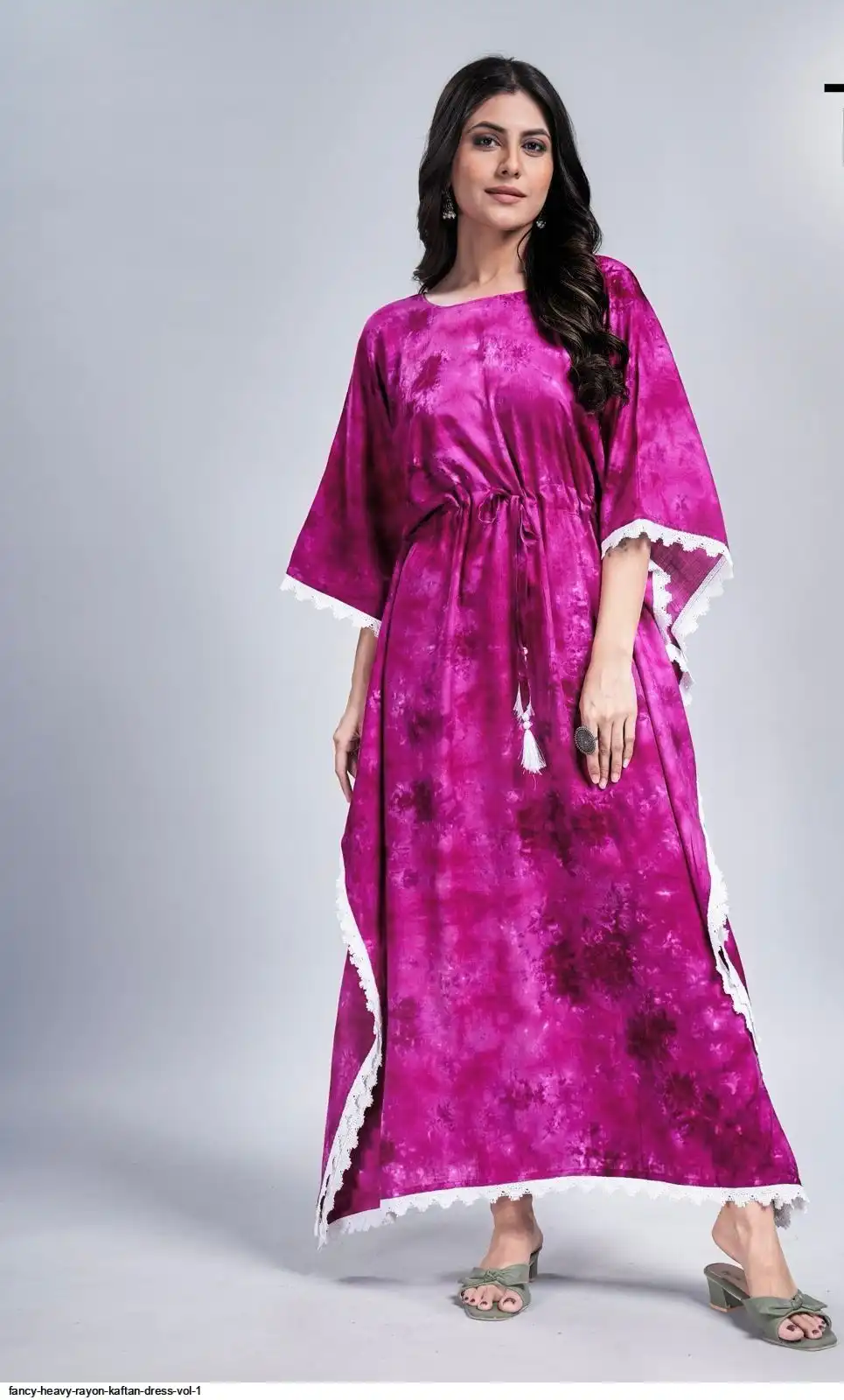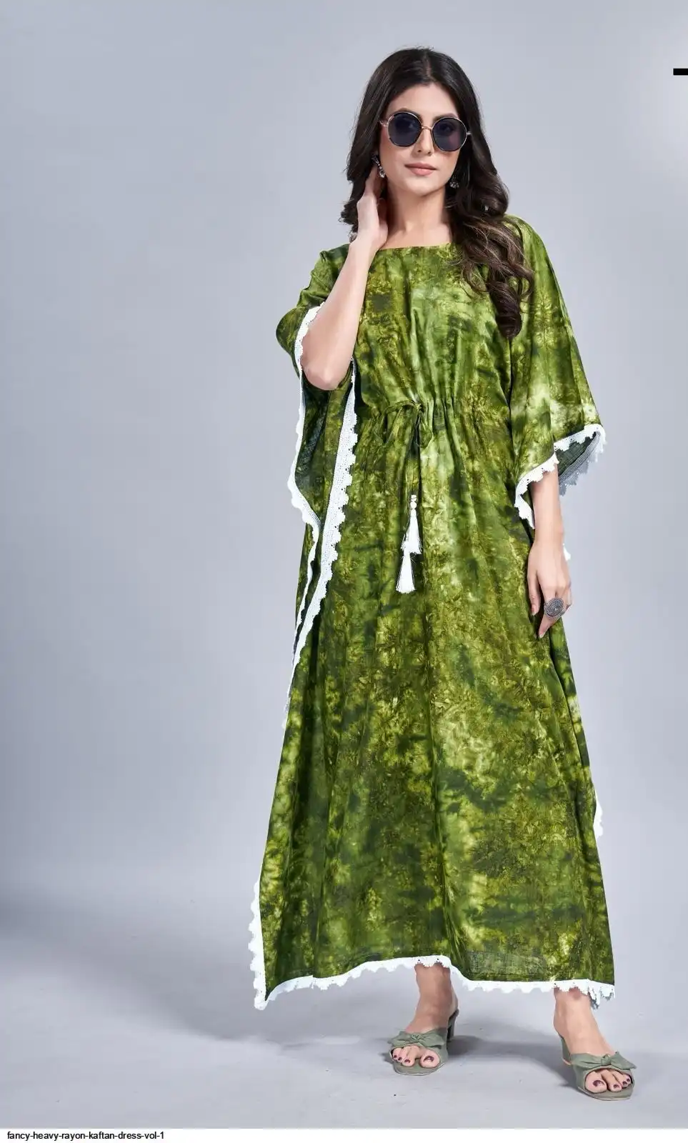 Long Tye dye Print Kaftan dress with lace border