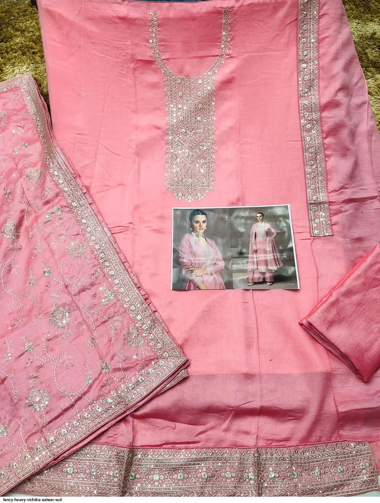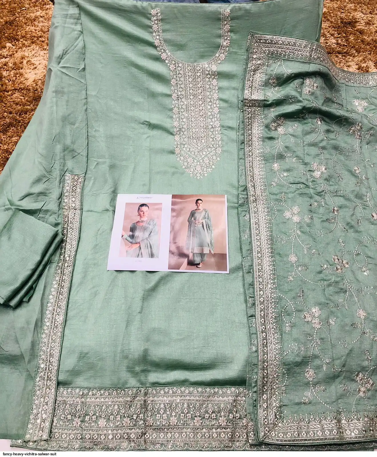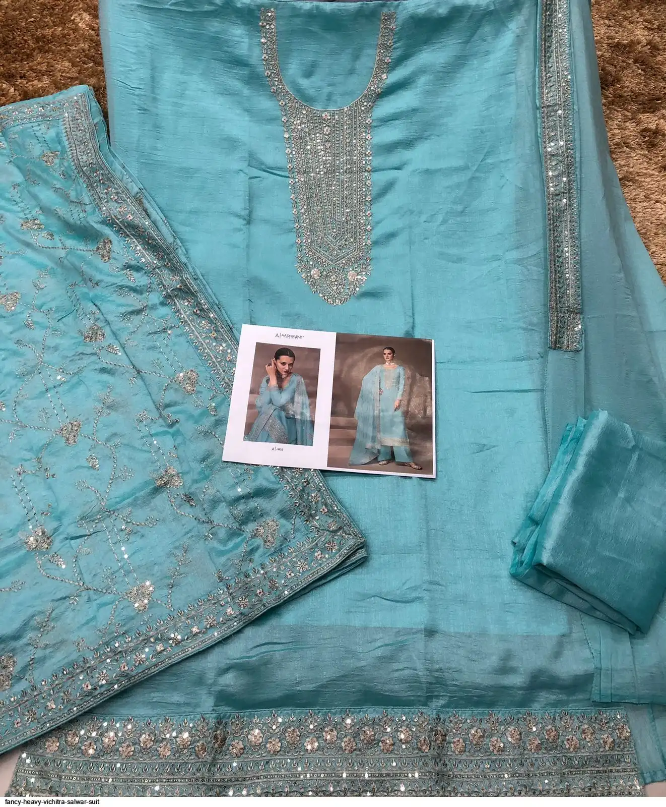 TOP - Heavy vichitra With Siqwans + Embroidery work + Stone