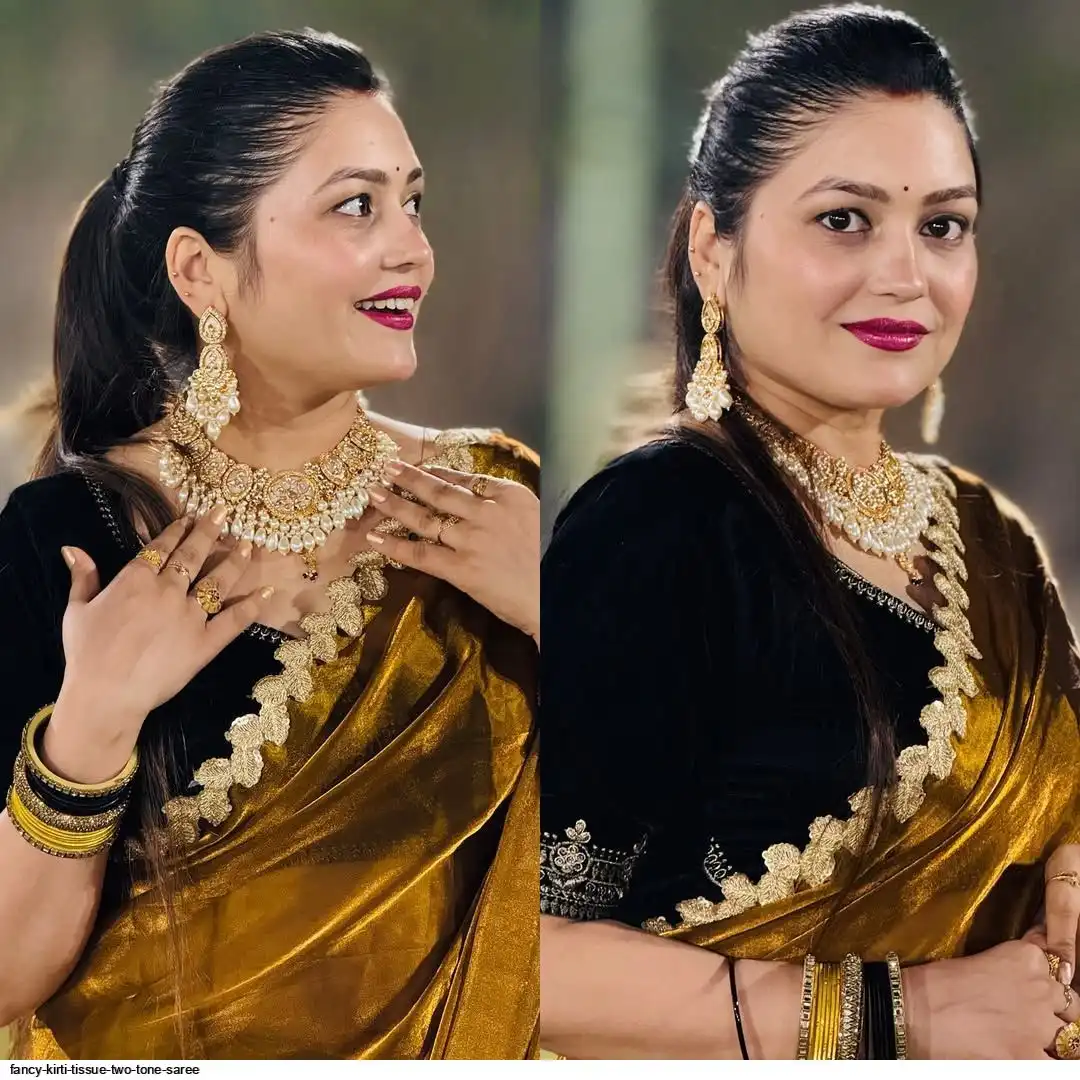 abric:-Soft Tissue Two tone gold Sining Similar Jimichu type Fabric