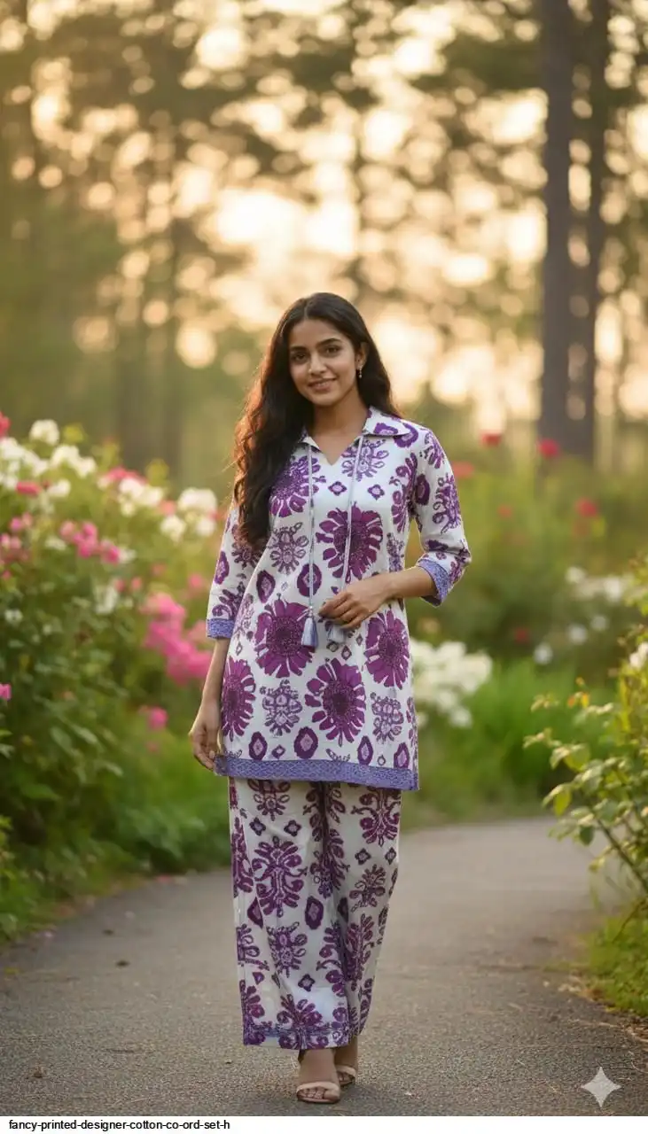 FANCY PRINTED DESIGNER COTTON CO ORD SET H