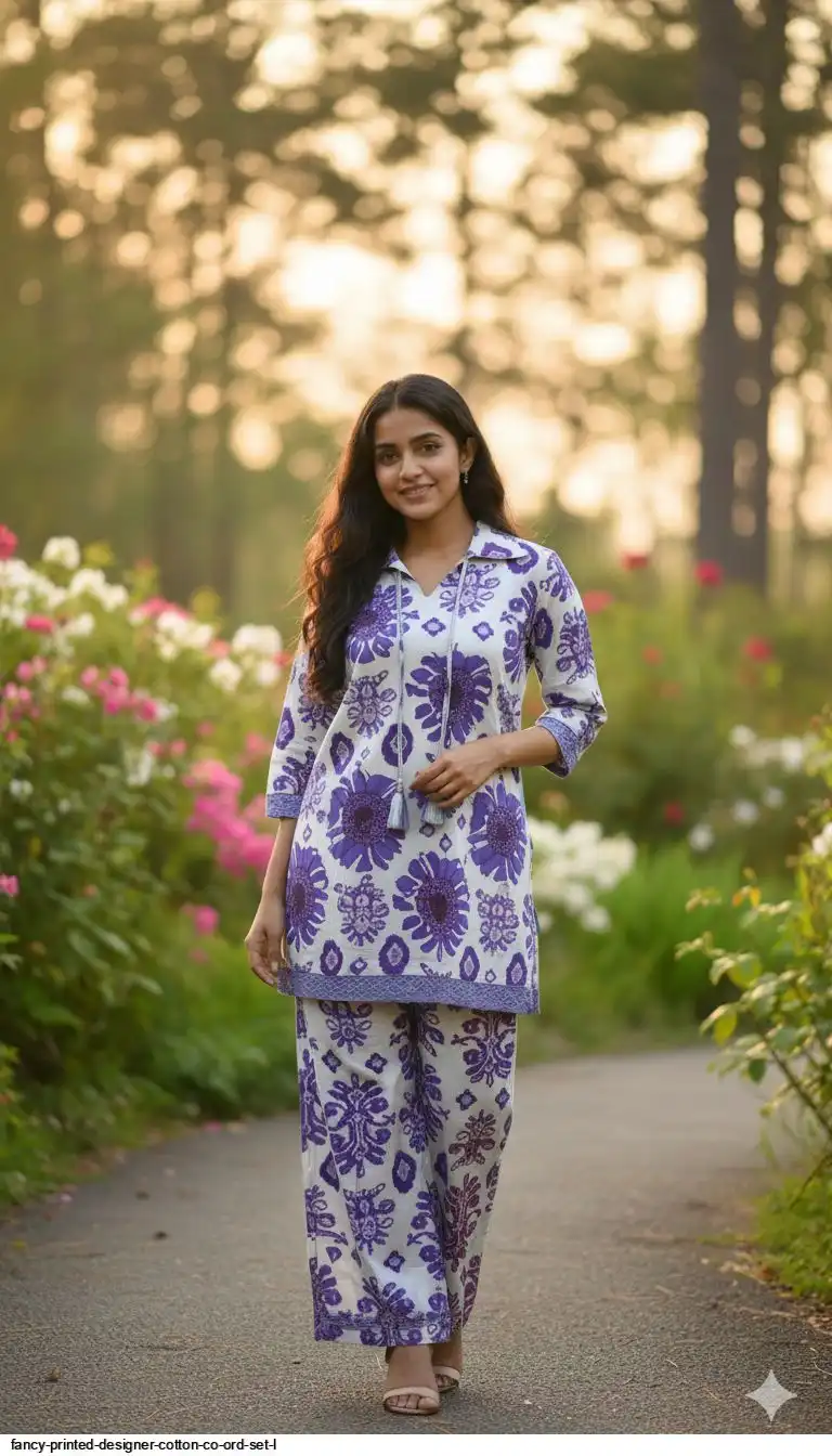 FANCY PRINTED DESIGNER COTTON CO ORD SET L