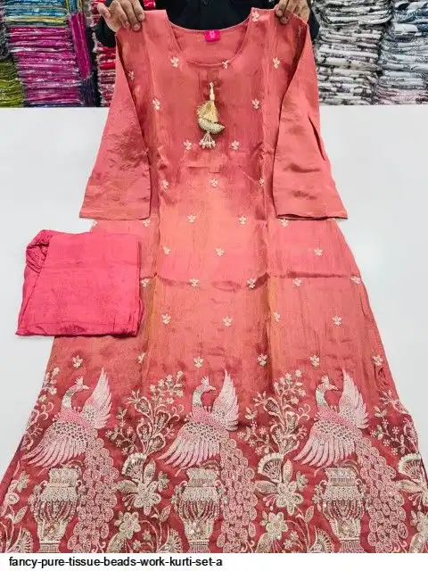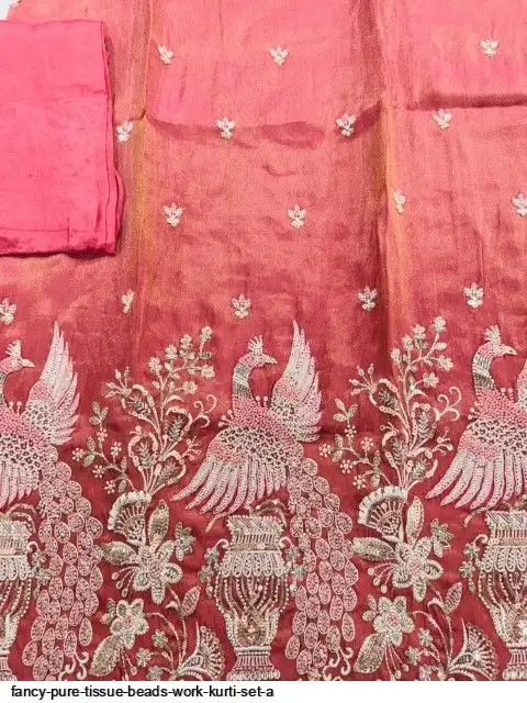 FANCY PURE TISSUE BEADS WORK KURTI SET A