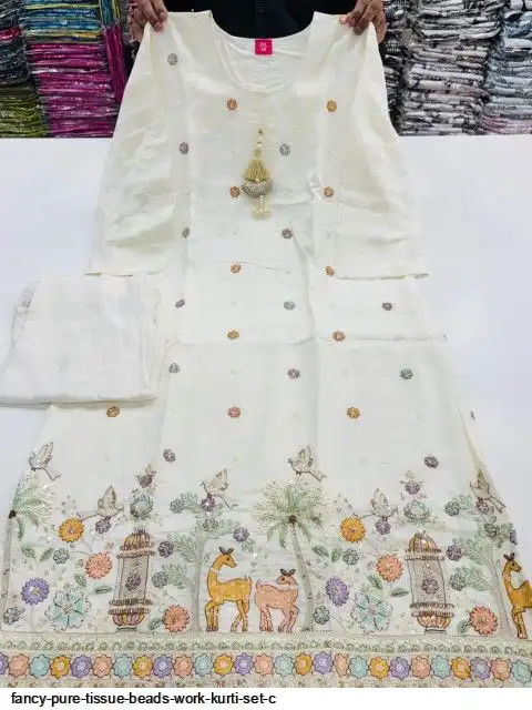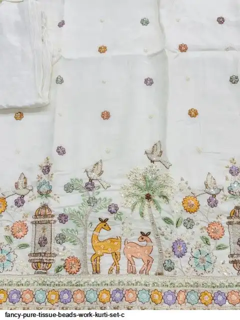 FANCY PURE TISSUE BEADS WORK KURTI SET C