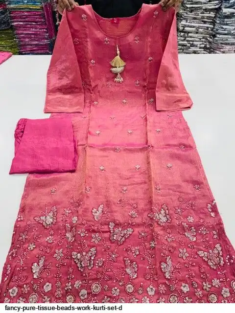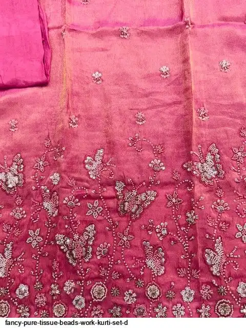 FANCY PURE TISSUE BEADS WORK KURTI SET D