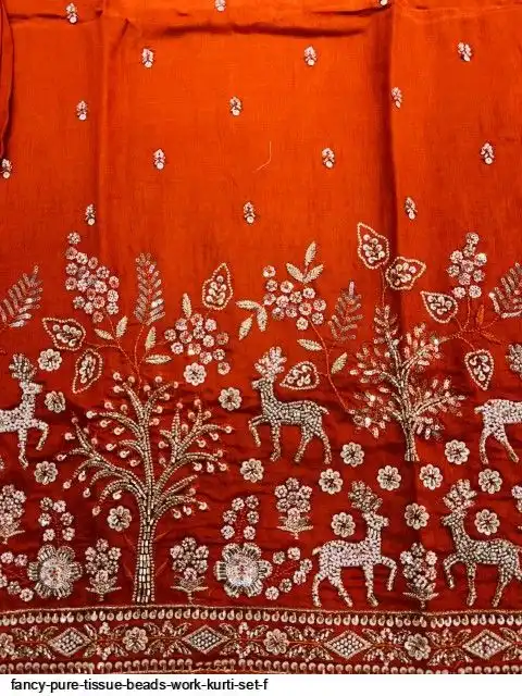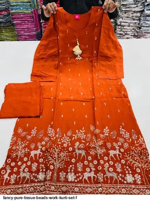 FANCY PURE TISSUE BEADS WORK KURTI SET F