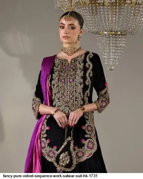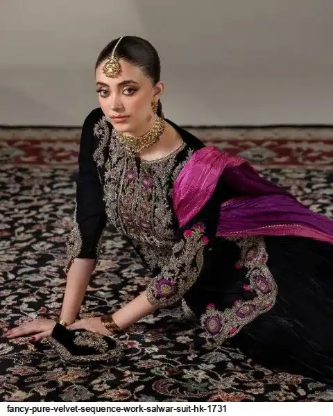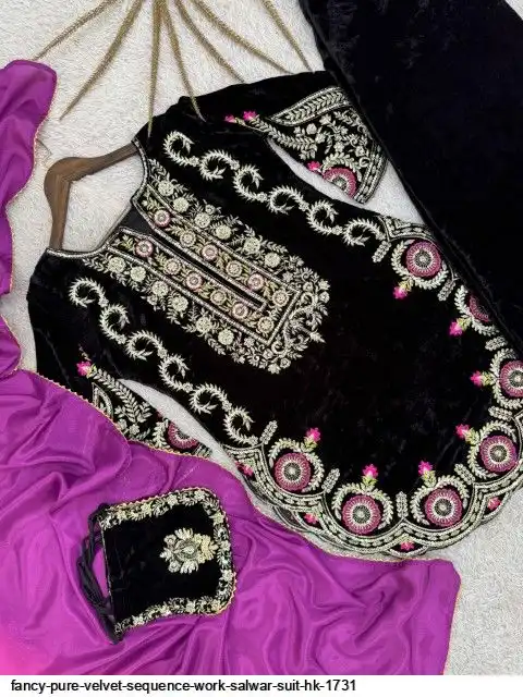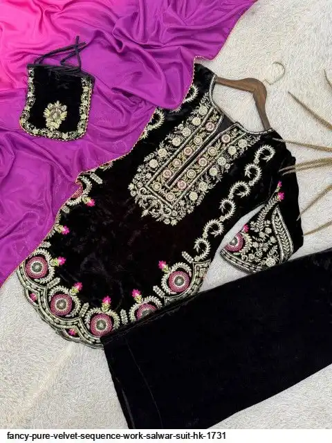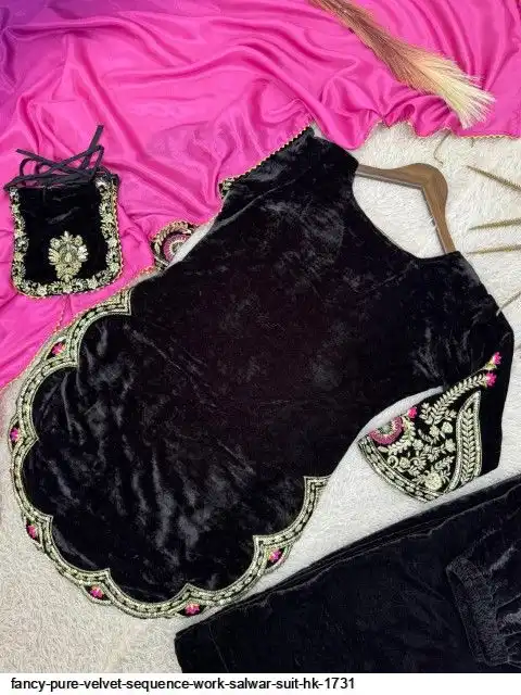 Top Fabric :Pure Viscous Velvet With Embroidery Thread And Sequence Work With Full Sleeve