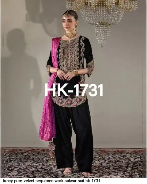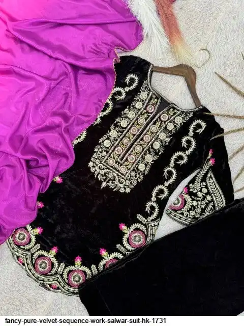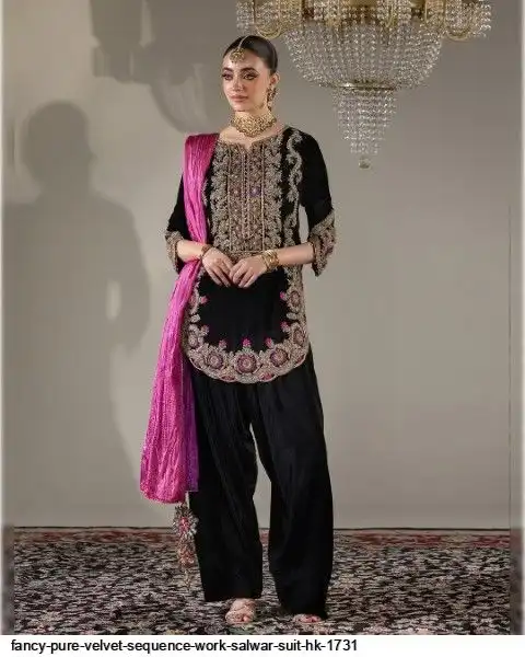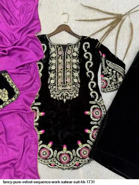 Launching New Winter Collection In Viscous Velvet Top-Farshi Salwar And Dupatta Set Fully Stitched Ready To Wear