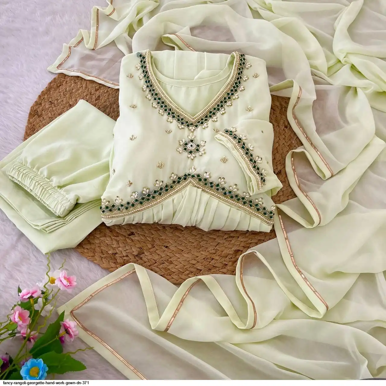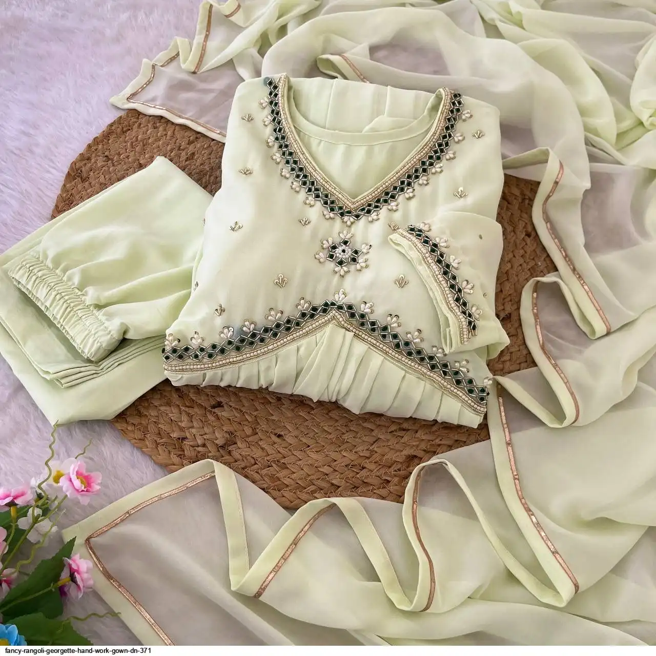 resenting By New Party Wear Look Fox Gerorrget Gown With Dupatta , pant ,