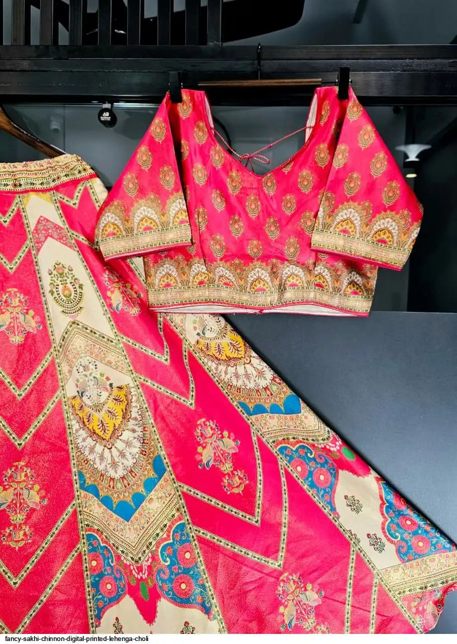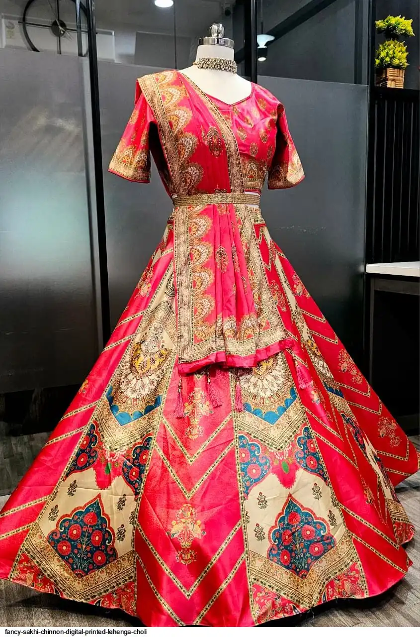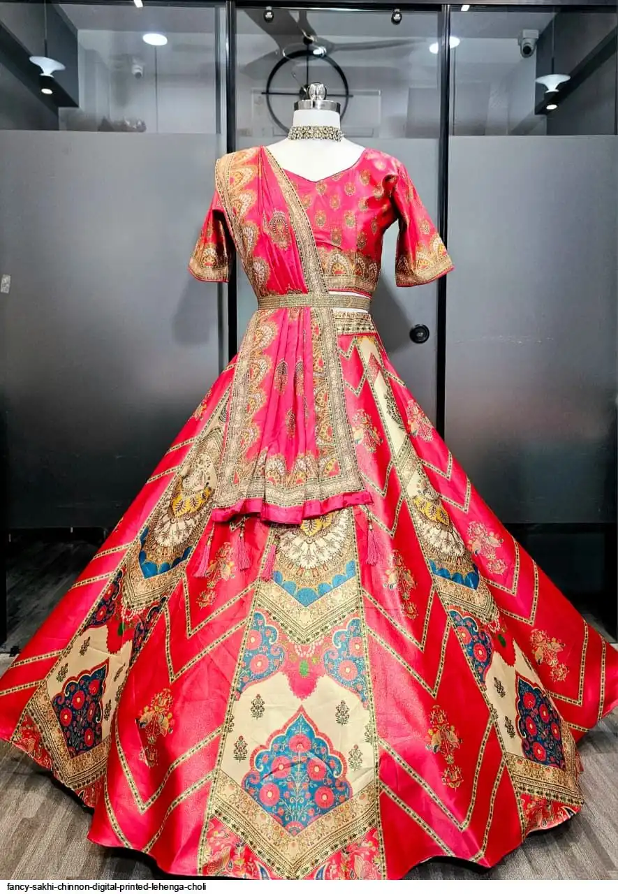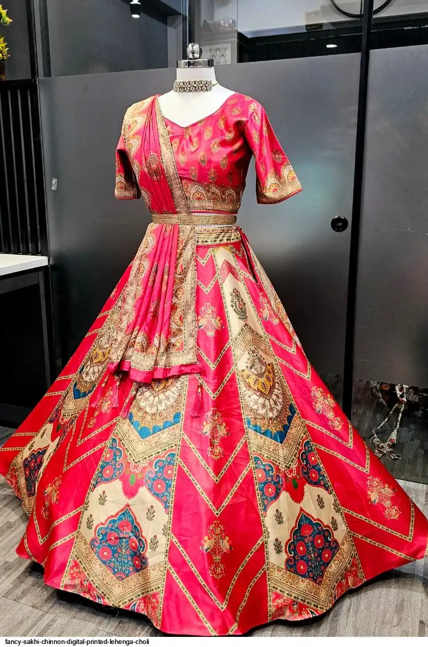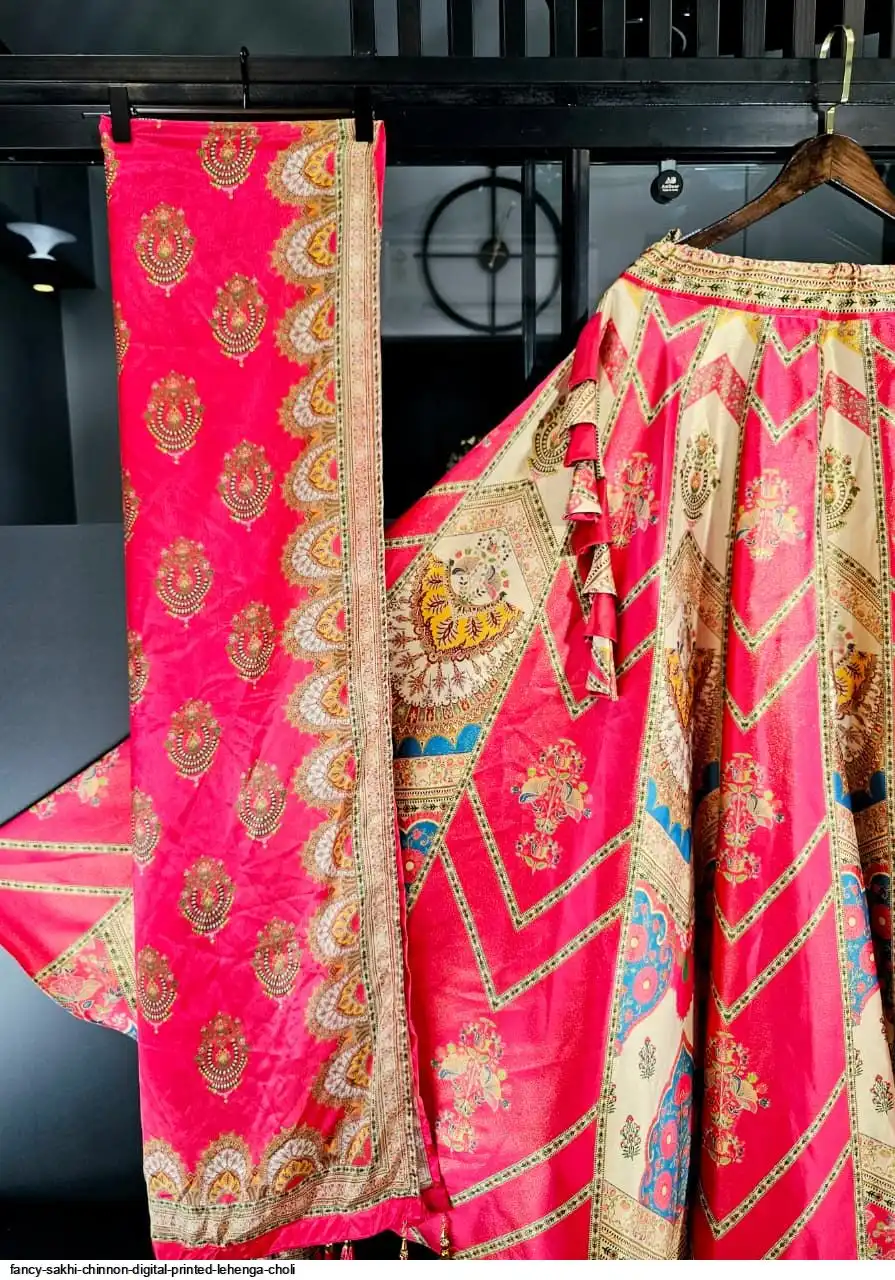 Wedding Special Lehenga Collection Digital Printed Attractive Wedding & Party Wear & Sider Wear Fully Stiched Lehenga choli has a Regular-fit and is Made From High-Grade Imported Zari Fabrics With Canken With Chinon Printed Duptta With Fancy Latkan And Yarn.