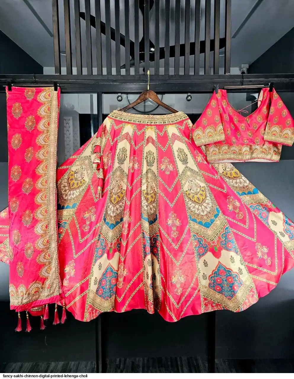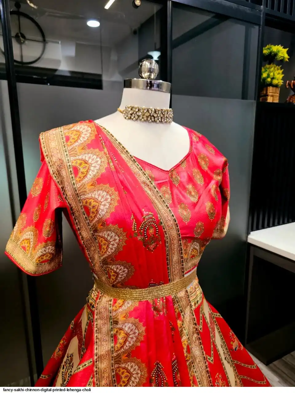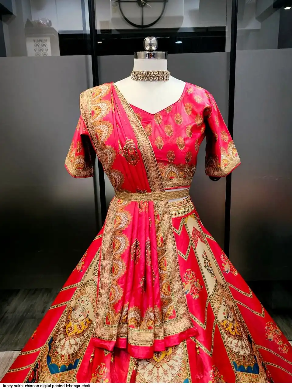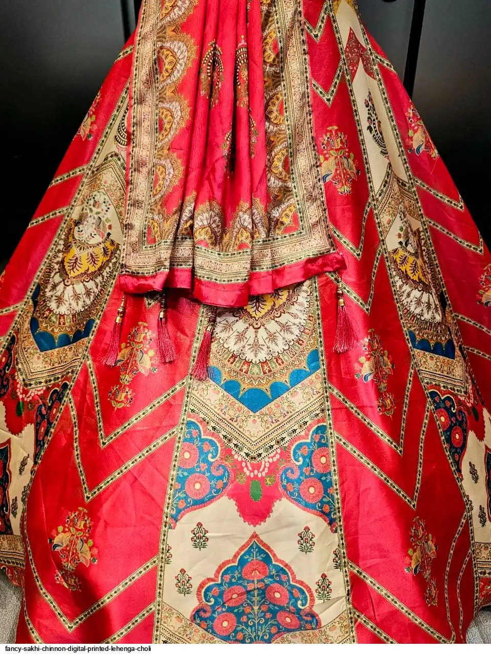 Wedding Special Lehenga Collection Digital Printed Attractive Wedding & Party Wear & Sider Wear Fully Stiched Lehenga choli has a Regular-fit and is Made From High-Grade Imported Zari Fabrics With Canken With Chinon Printed Duptta With Fancy Latkan And Yarn.