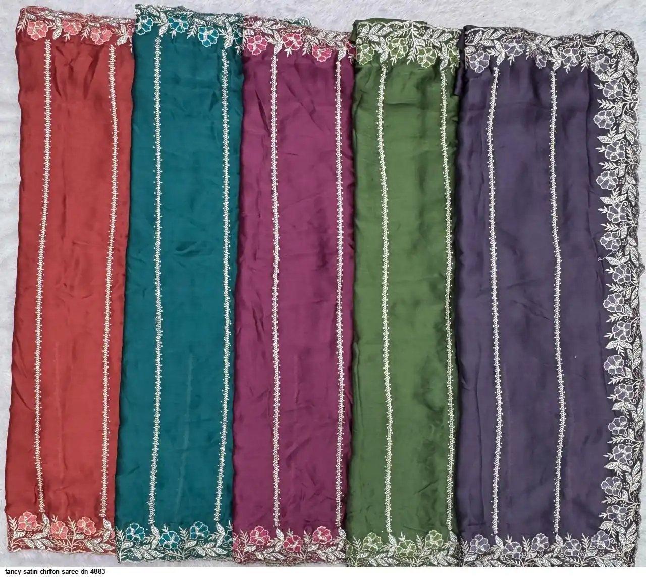 Work : Fancy Multicoloured Thread & Zari Embroidery Work With Cut Work Border.