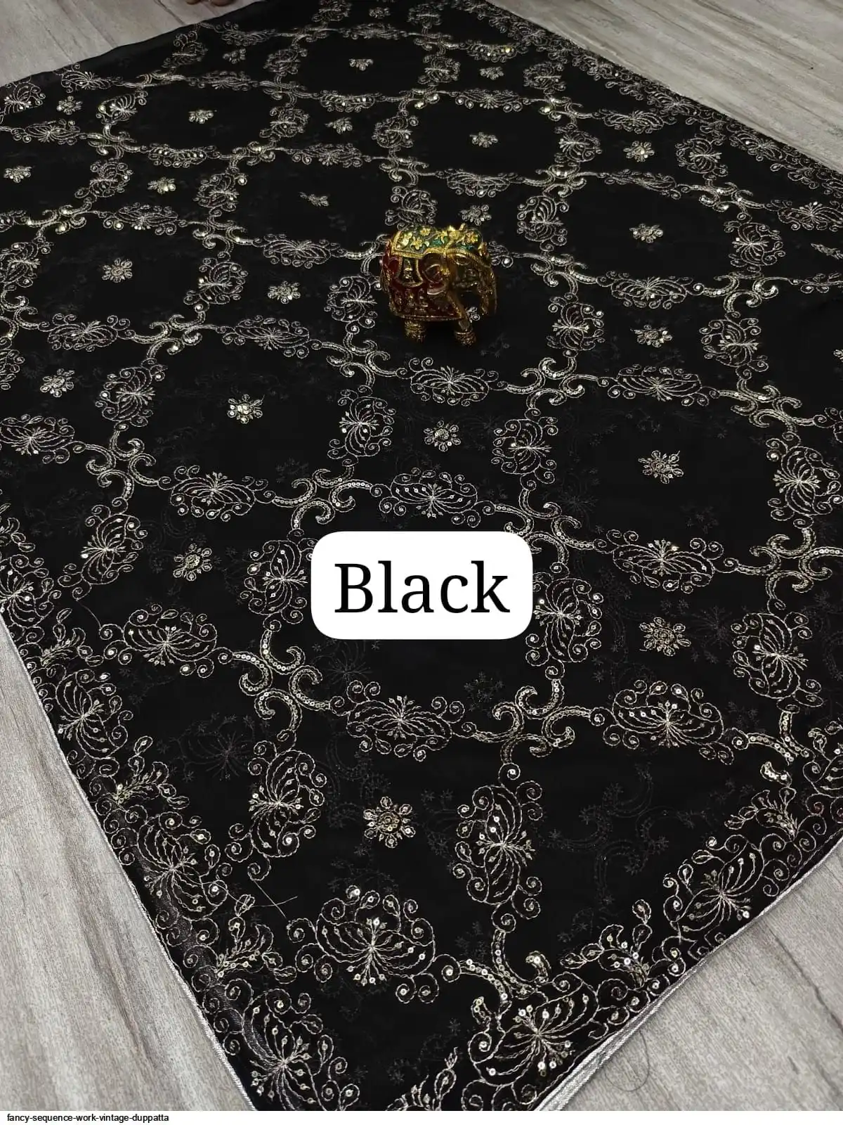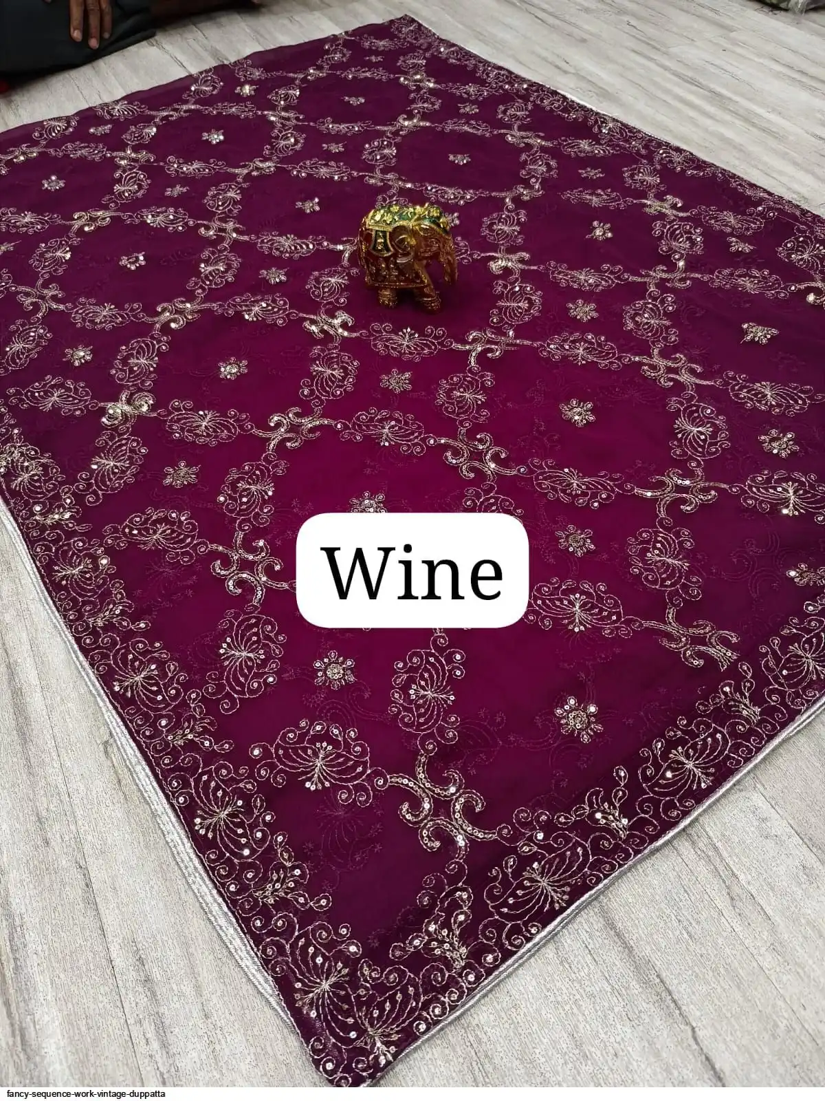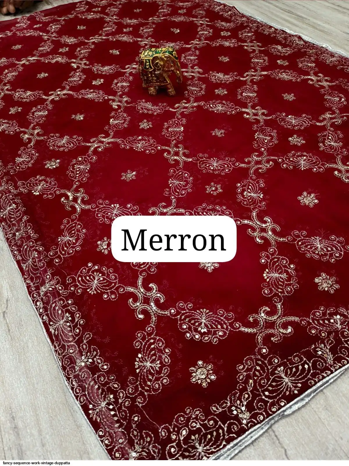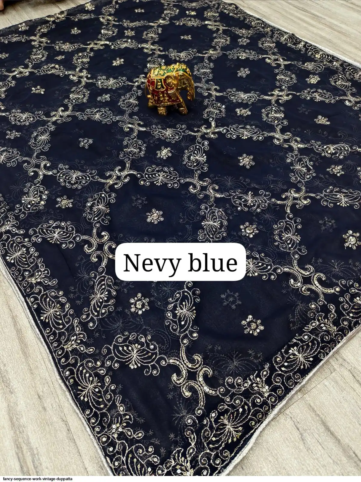 Vintage duppatta with silver jari and sequence work 2.50 mts
